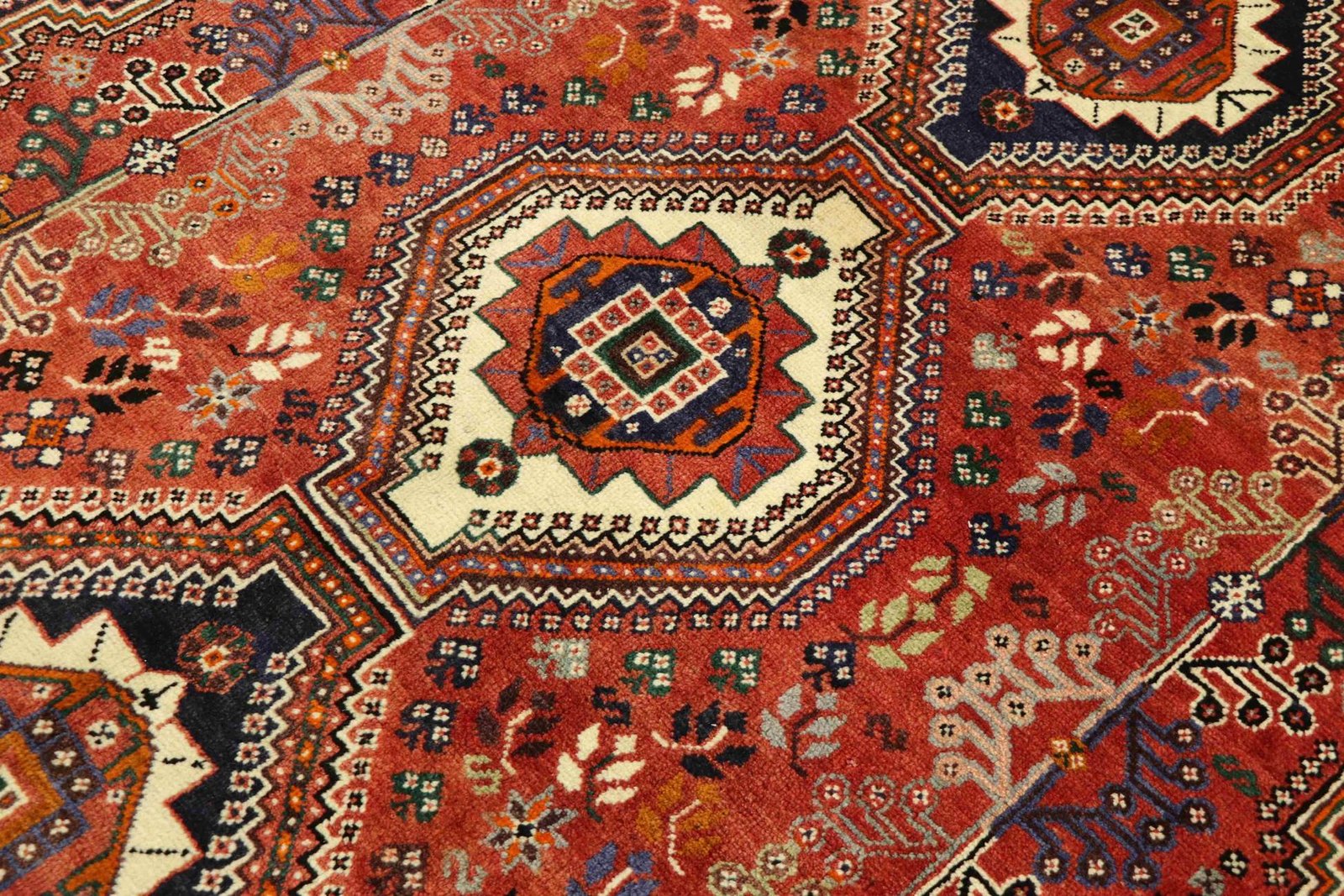 The Ghashghai is one of the finest nomadic carpets of the Orient, known for its beautiful colours and patterns. These carpets are traditionally made in the Orient, often from pure wool and with natural colours (“wool on wool”). They are particularly sought after in the Orient and Europe due to their traditional patterns and high-quality craftsmanship. The simple repairs and vibrant colour accents make them perfect for modern interiors, where they blend harmoniously with various decorative styles. The Ghashghai is not just a carpet, but a symbol of traditional craftsmanship and timeless beauty.