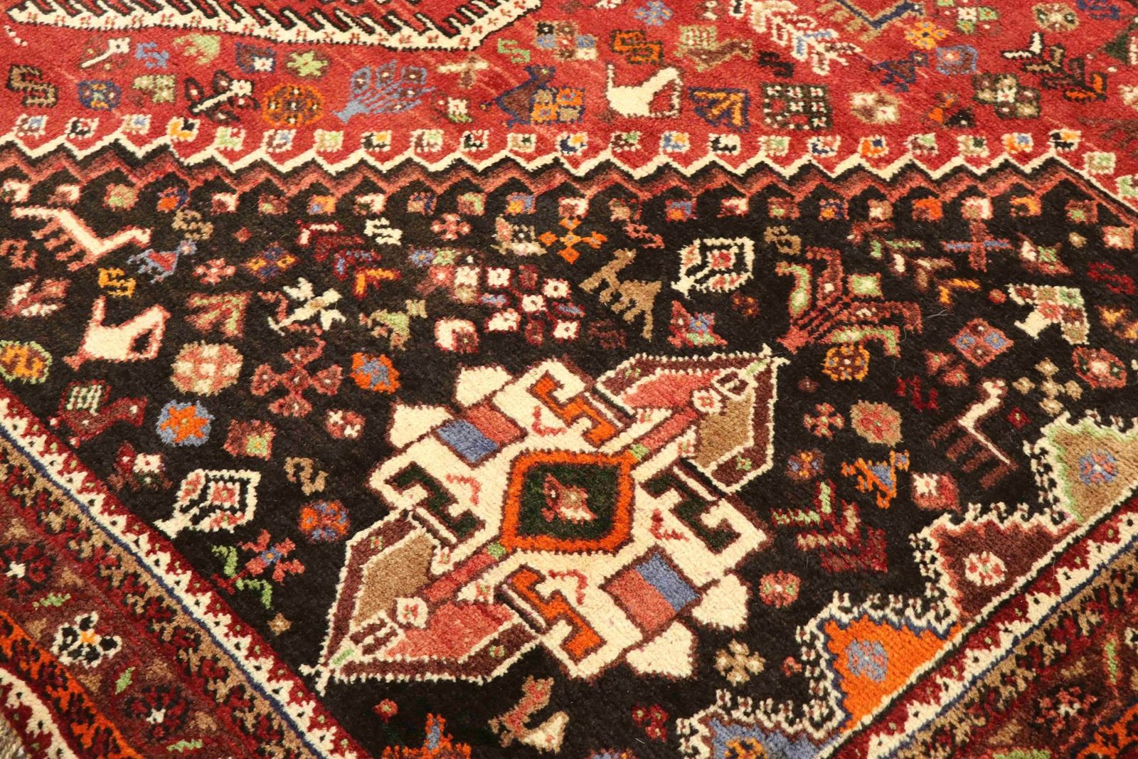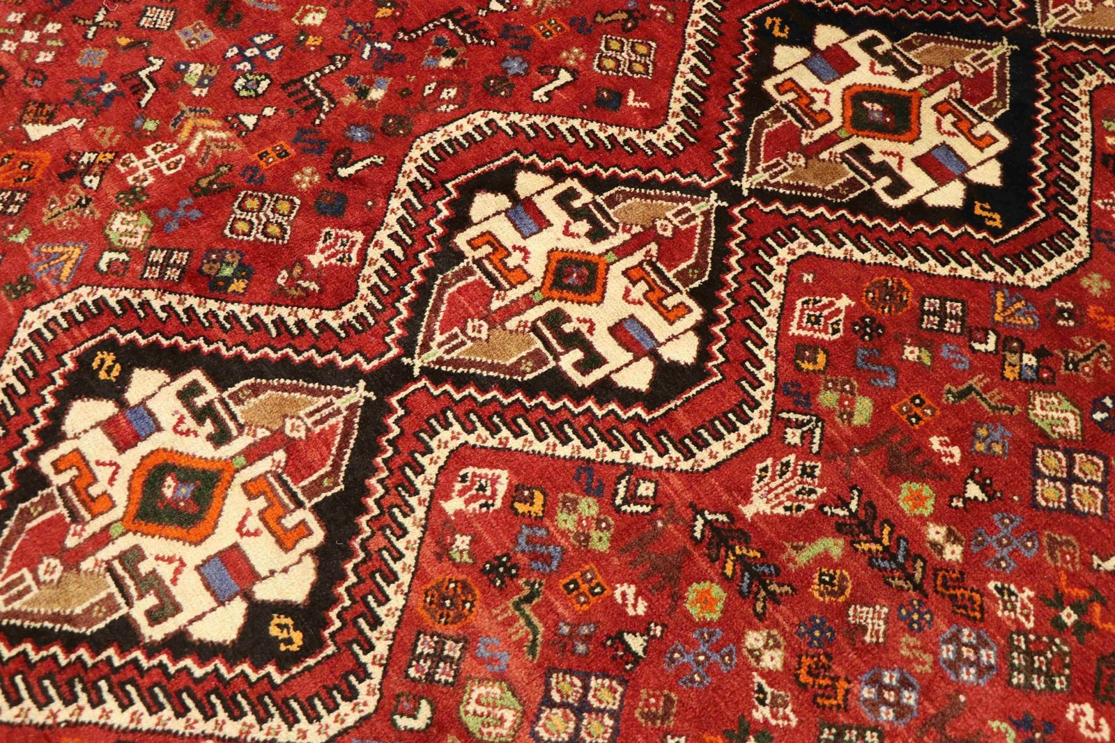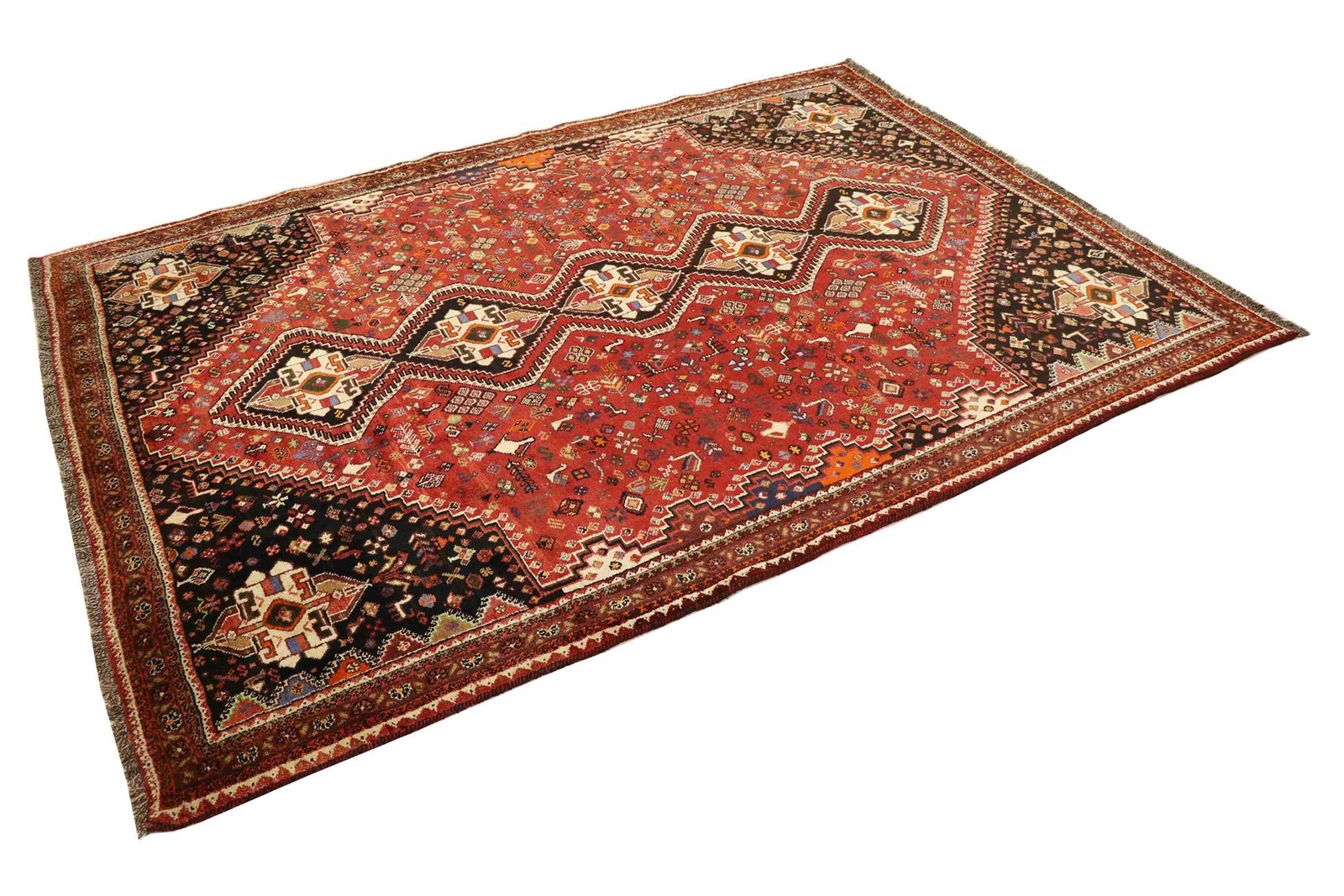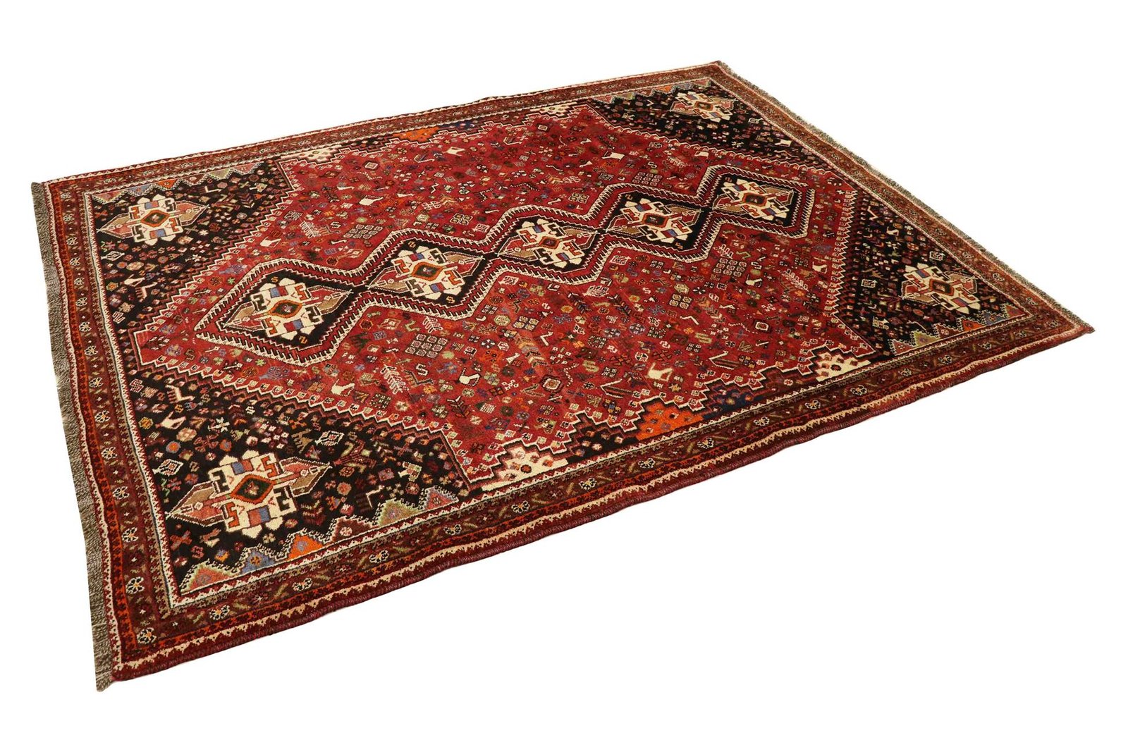 The Ghashghai is one of the finest nomadic carpets in the Orient, famous for its beautiful colours and patterns. These carpets are traditionally made in the Orient, often from pure wool (“wool on wool” – made from and on wool) and with classic patterns. Among Oriental carpets, it is particularly sought after in the Orient and in Europe. The simplicity of the weave and the colour accents used make them perfect for combining with current trends and preferences in interior design. Ghashghai carpets are known for their quality and cultural significance, and they lend every room a touch of traditional charm and timeless elegance.