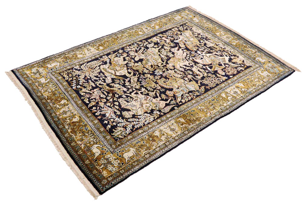 The Ghom Silk, an outstanding hand-knotted Oriental carpet from Iran, impresses with its finest materials, patterns and colours. With a knot density of up to one million knots per square metre, made exclusively from silk on silk, it is one of the finest of its kind. These classic works of art from Ghom are passed down from generation to generation and reflect their origins in their manufacturing methods, choice of materials and motifs. Persian carpets such as the Ghom Silk are characterised by first-class materials, high knot densities, harmonious colour combinations and traditional designs that add cultural and aesthetic enrichment to any room.