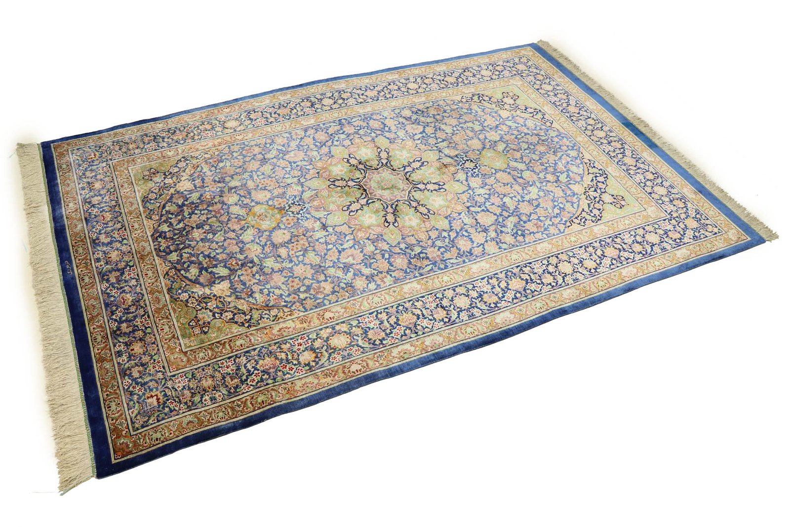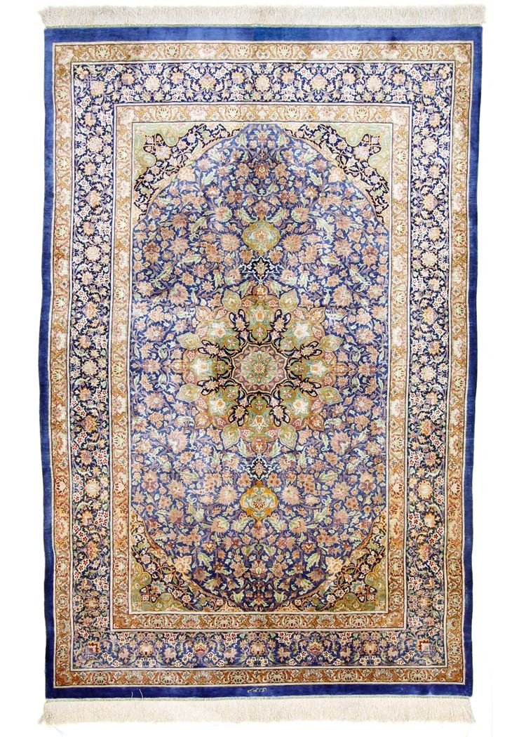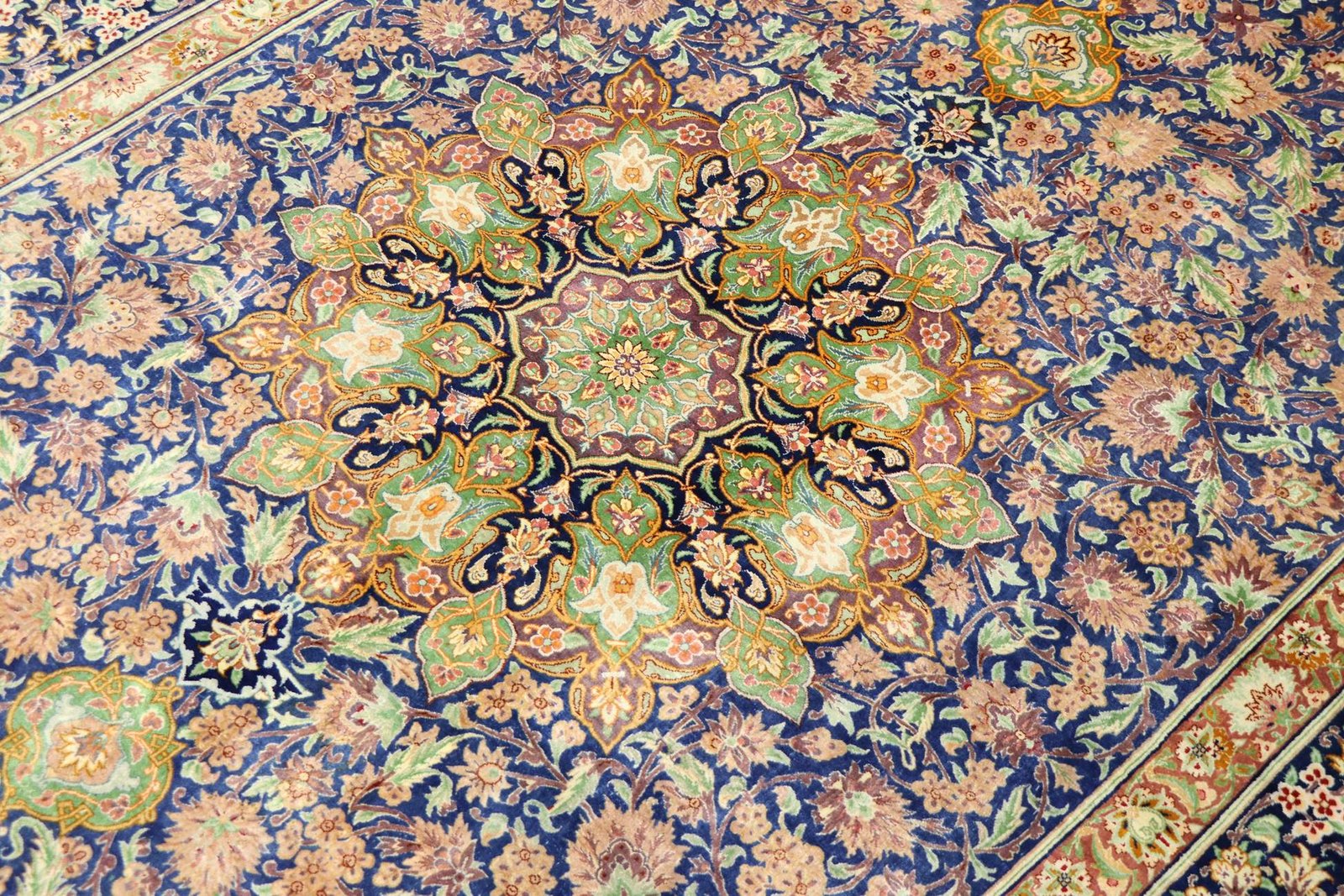 The Ghom Silk is an outstanding hand-knotted Oriental carpet from Iran, famous for its fine materials, patterns and colours. With a knot density of up to one million knots per square metre and made exclusively from silk, it is one of the finest of its kind. These classic works of art are passed down from generation to generation and bear the unique characteristics of their city of origin, Ghom. Persian carpets such as the Ghom Silk impress with their high-quality materials, high knot density, harmonious colour combinations and traditional design. Whether silk or cork wool is used, a Ghom Silk carpet enriches any room with cultural and aesthetic elegance.