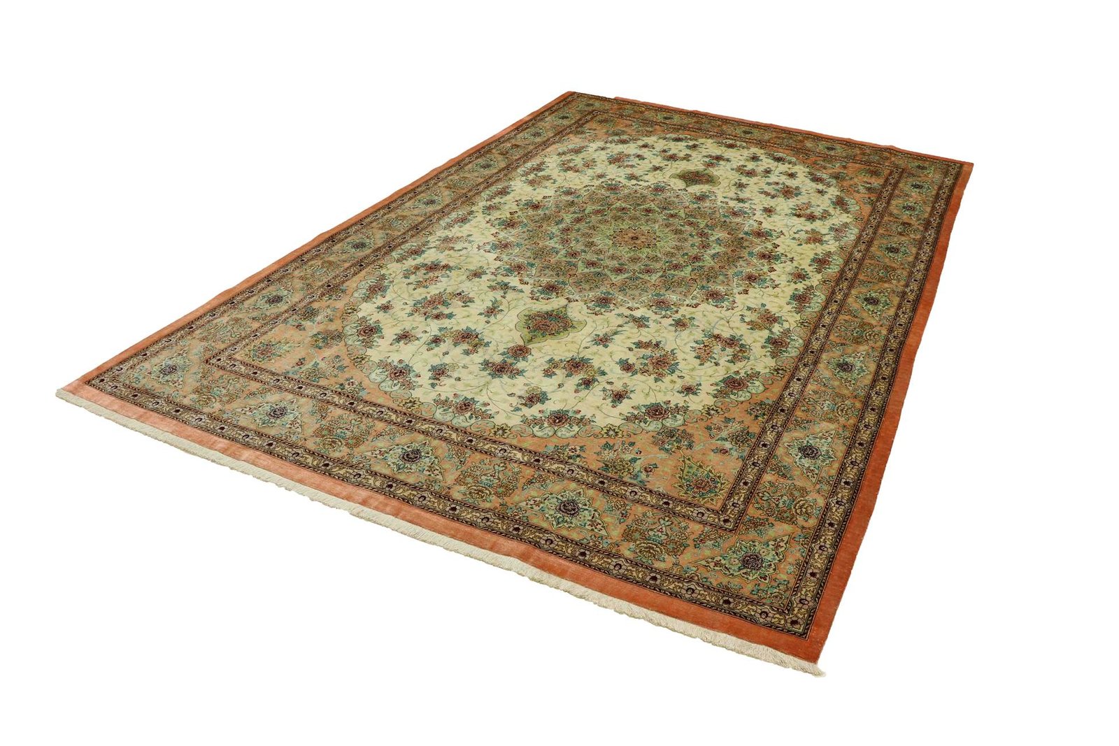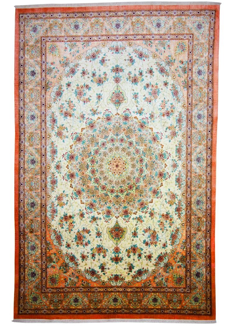 The Ghom Silk is one of the most beautiful and elegant hand-knotted Oriental carpets from Iran, famous for its finest materials, patterns and colours. With up to one million knots per square metre made exclusively from silk on silk, it is one of the finest Oriental carpets. These classic works of art from Ghom are characterised by high-quality materials, high knot density, harmonious colour combinations and traditional designs. They are known for their cultural and aesthetic significance, which enriches any room.
