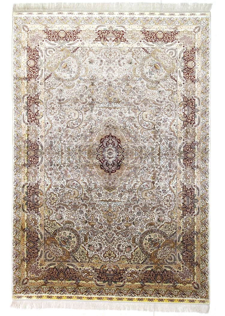 Hereke silk carpets are outstanding hand-knotted Oriental carpets, renowned for their fine materials, patterns and colours. Originally from China, they are considered some of the finest Oriental carpets in existence, with an exceptional knot density of up to one million knots per square metre, always made of silk on silk. These cultural works of art from Hereke are passed down from generation to generation and reflect the tradition of their region of origin. They are characterised by high-quality materials, unique colour harmonies and traditional designs, whether made from precious silk or soft cork wool. A Hereke carpet adds a distinctive touch of elegance and artistic craftsmanship to any room.