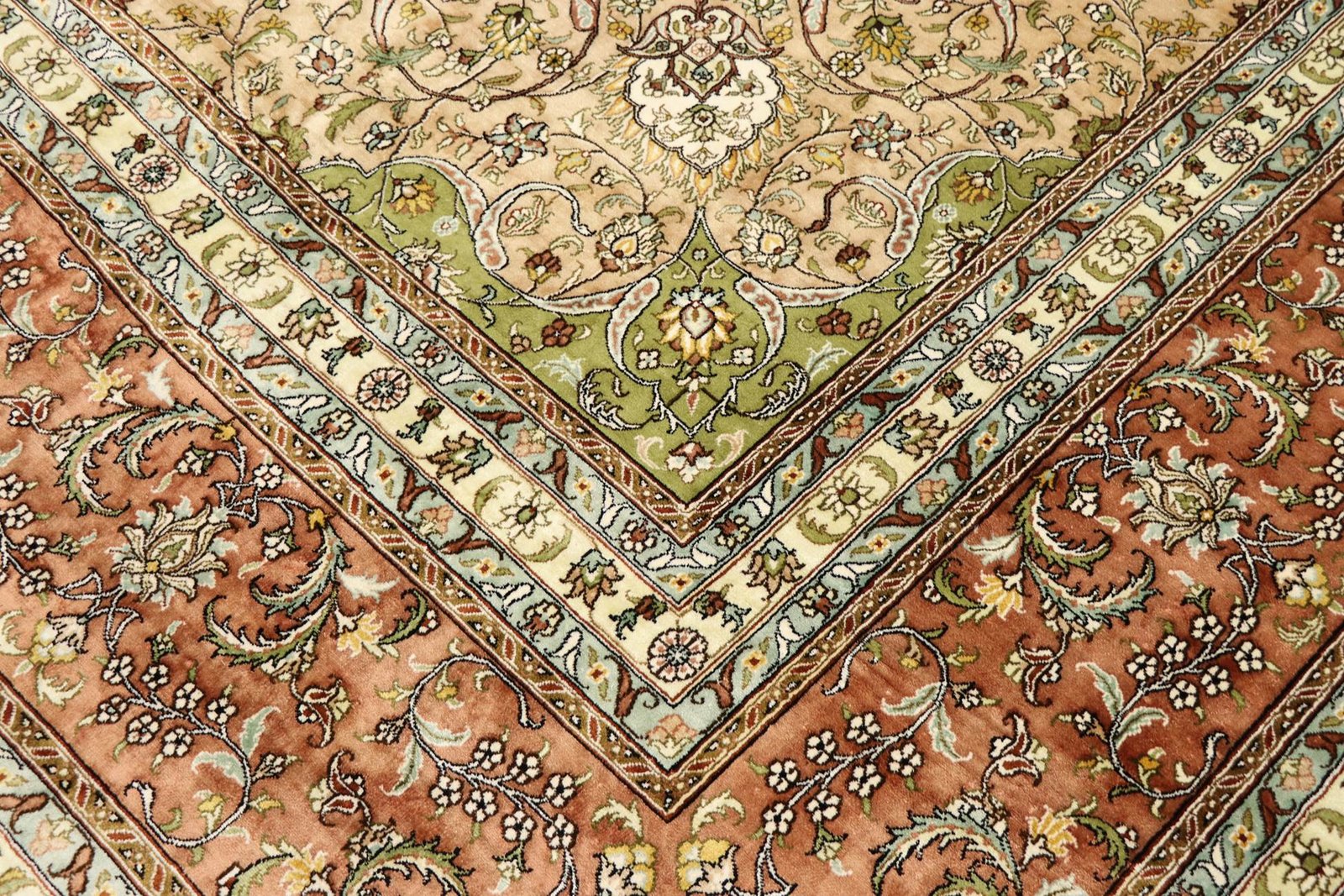 Hereke silk carpets are famous for their fine materials, patterns and colours. Originally from China, they are among the finest oriental carpets with an exceptional knot density of up to one million knots per square metre, made exclusively from silk. These cultural works of art from Hereke are passed down from generation to generation and reflect the tradition of their region of origin. They are characterised by high-quality materials, unique colour harmonies and traditional designs, whether made from precious silk or soft cork wool. A Hereke carpet adds a distinctive touch of elegance and artistic craftsmanship to any room, which its owners will appreciate for decades to come.