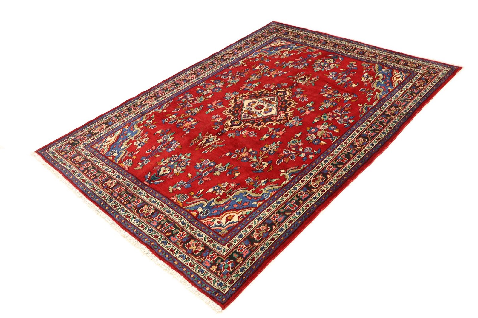Hossien Abad is one of the most beautiful nomadic carpets in the Orient, known for its traditional small “Mahi” (fish) patterns and natural colours. These carpets have been knotted in the Orient for many years and are particularly sought after in the Orient and Europe among all Oriental carpets. The simple patchwork and bold colour accents make them perfect for modern interiors, as they harmonise well with current trends. Hossien Abad carpets are characterised by their robustness and lend every room an authentic Oriental touch that is both traditional and contemporary.