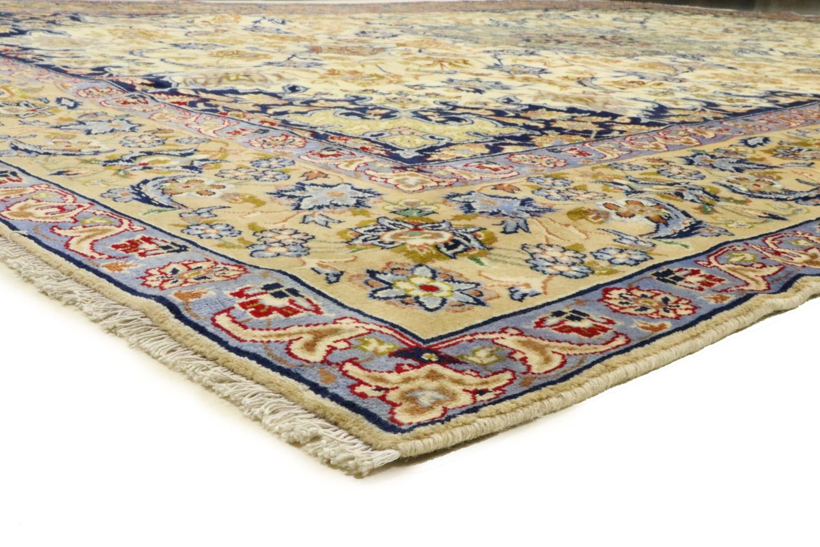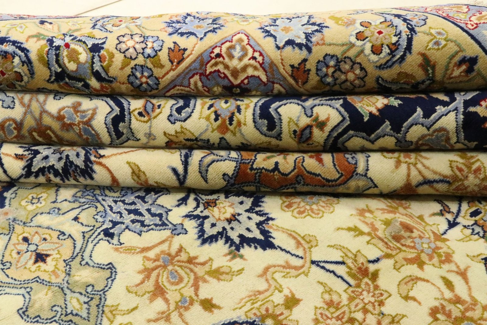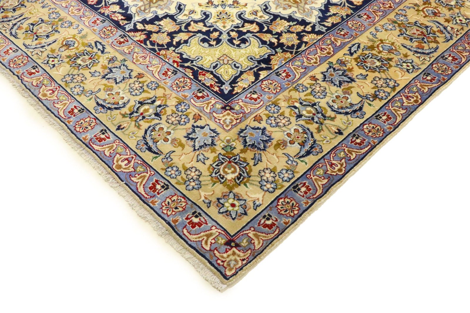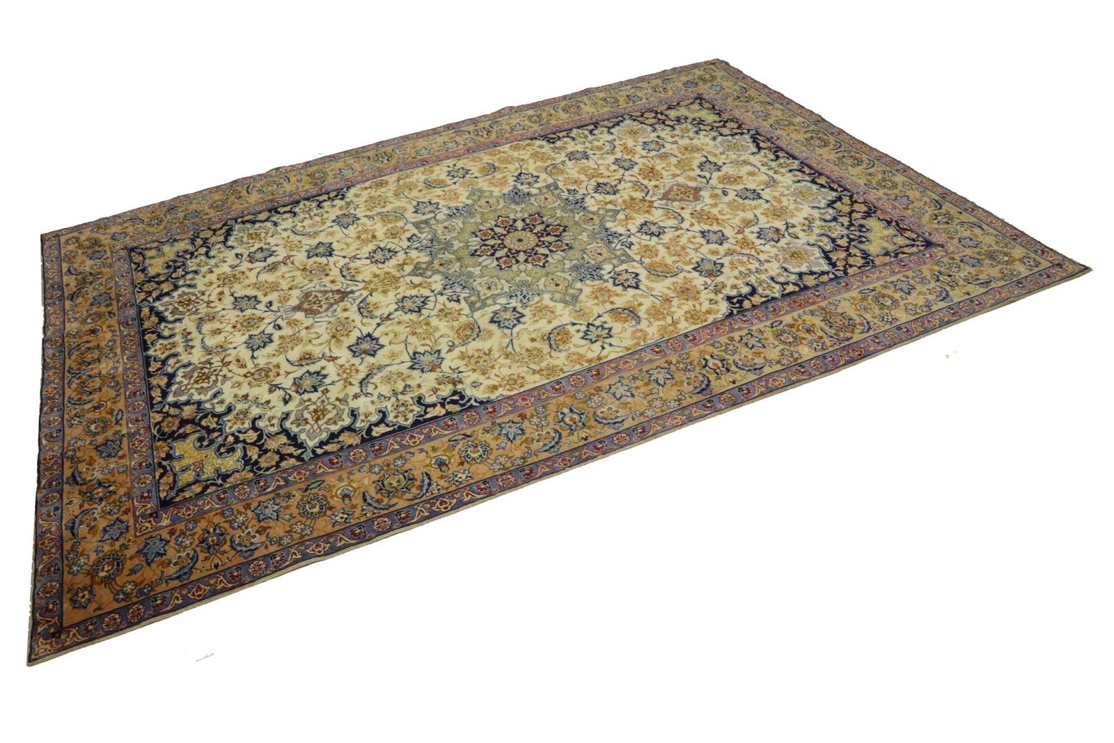 Carpets from Isfahan are among the most valuable hand-knotted Persian carpets in the world. The finest examples are made by renowned master weavers who achieve a knot density of over one million knots per square metre. An Isfahan carpet is a symbol of the highest artistry and tradition in carpet weaving. The designs of these carpets are often inspired by the magnificent mosques and squares of the city of the same name, giving each carpet a unique cultural significance. Owning an Isfahan carpet means owning a Persian carpet of incomparable quality and artistic beauty, which impresses with its fineness and historical connection to Isfahan.