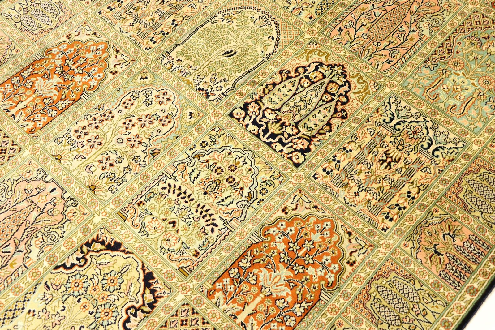 Kashmir silk is one of the most beautiful and elegant hand-knotted oriental carpets with fine materials, patterns and colours.