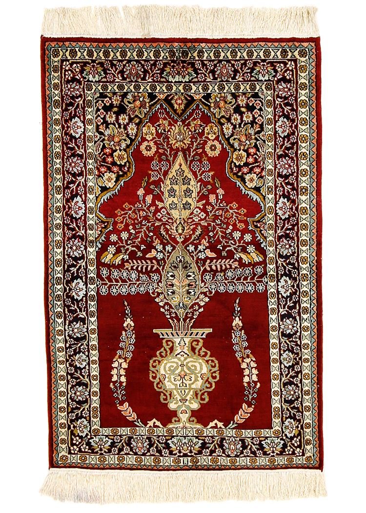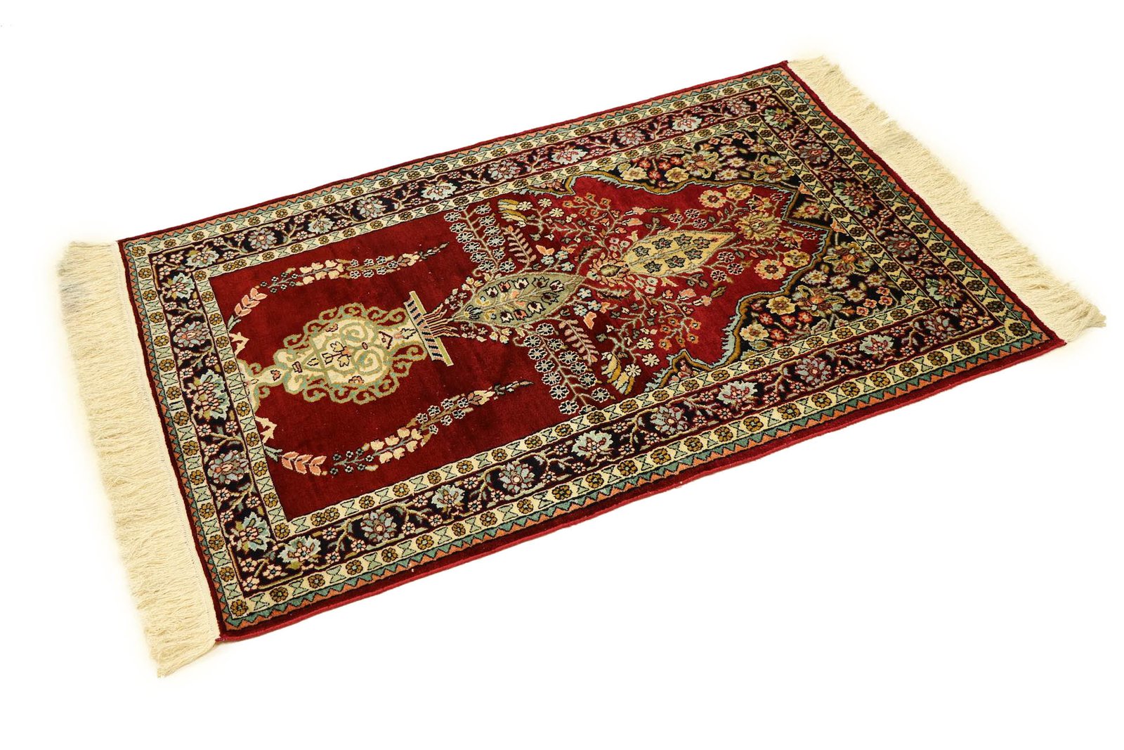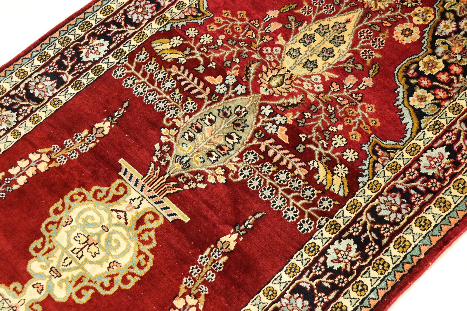 This hand-knotted silk carpet from Kashmir showcases the masterful craftsmanship of Indian carpet weavers. Made from pure silk with an exceptionally fine knot density, it is a work of art that only experienced craftsmen can create. The fine natural silk emphasises its soft feel and brings out the different facets of its colours. Depending on the incidence of light, new details and colour nuances are revealed that remain fascinating even after years. A carpet like this invites you to spend hours looking at it and creates an experience that cannot be captured in photos.