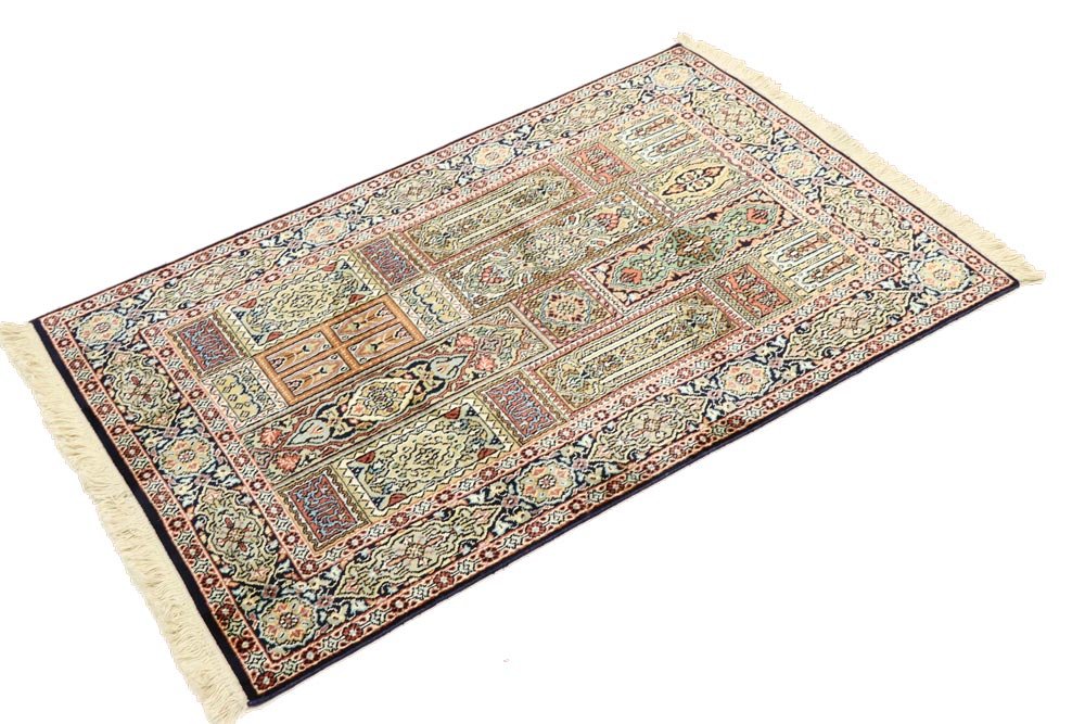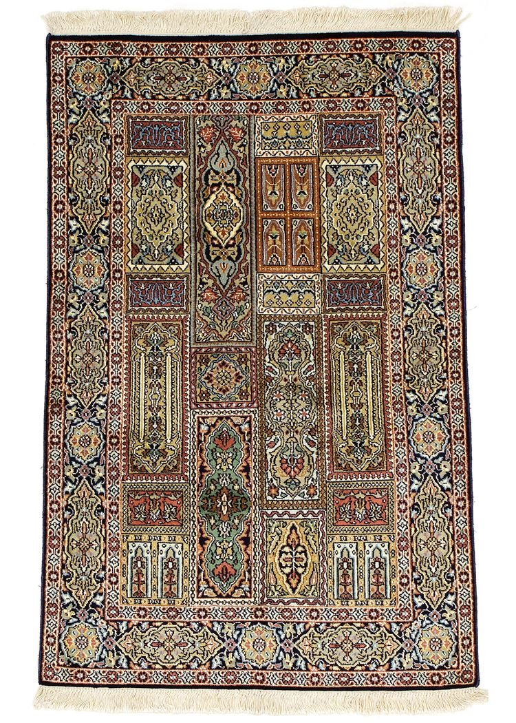 This hand-knotted silk carpet from Kashmir is a masterpiece of Indian carpet weaving. It is made of pure silk and impresses with its fine knot density, which can only be achieved by experienced craftsmen. The natural silk is particularly soft and allows the colours to shine in different facets. Under different lighting conditions, new details and colour tones are revealed that remain fascinating even after years. This carpet invites you to spend hours admiring it and offers an experience that cannot be captured in photos.