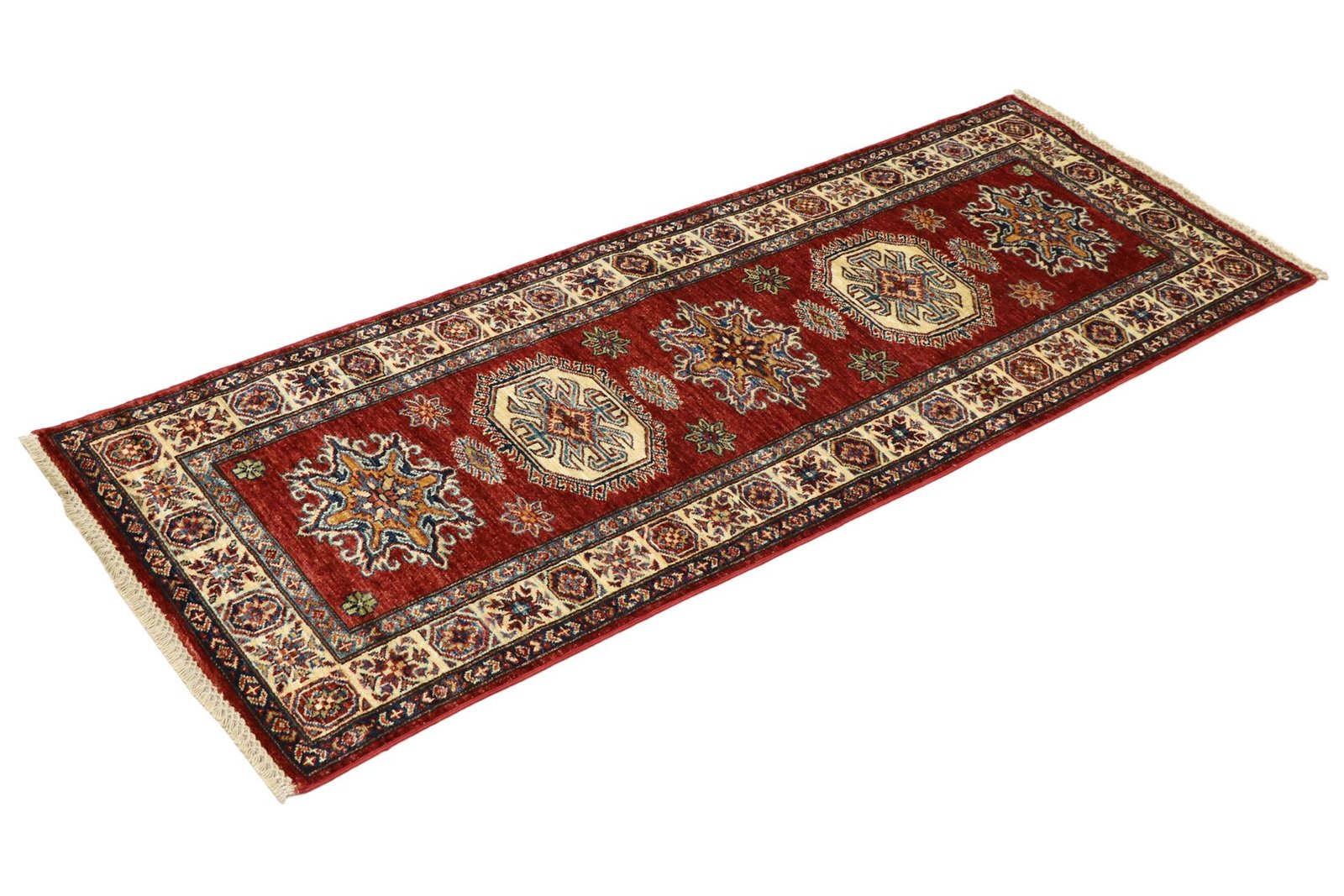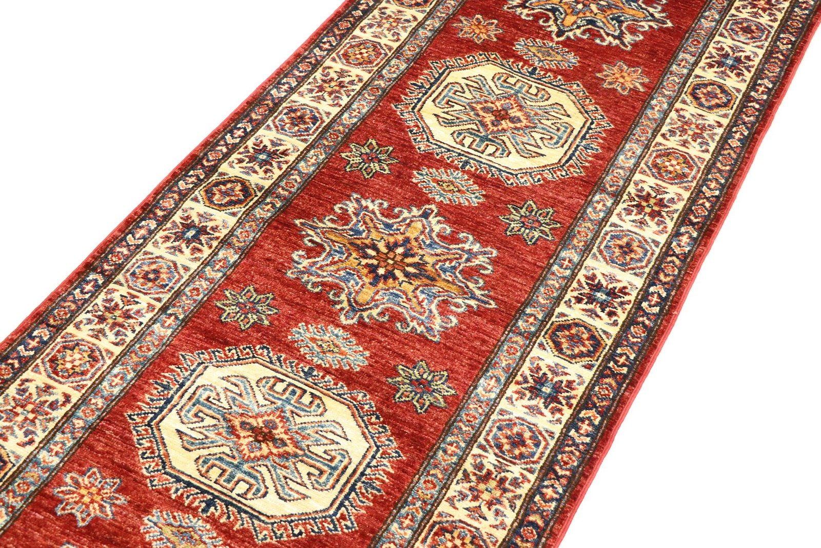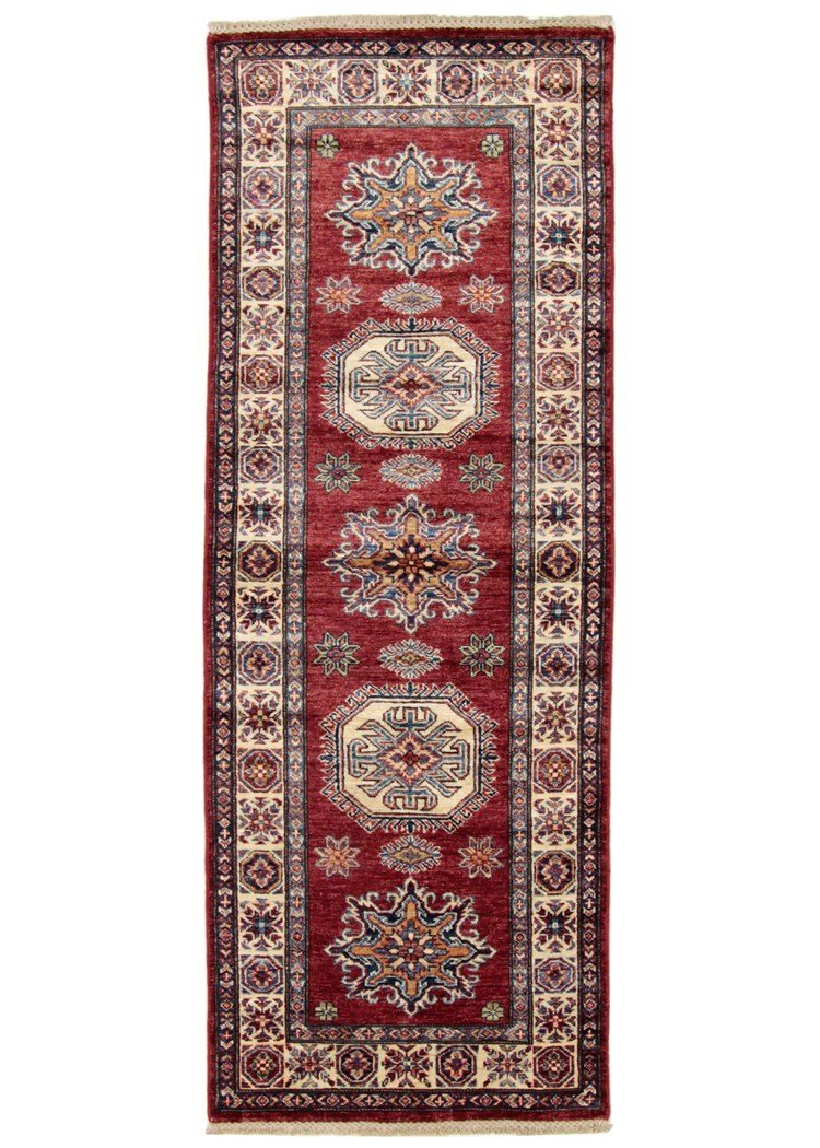 Kazak carpets originate from the Caucasus and are hand-knotted from high-quality wool. Their beauty lies in their geometric patterns and soft colours. Nomadic carpets have been produced in the Orient for many years using traditional patterns and natural colours from pure wool. Among Oriental carpets, Kazak carpets are the most sought-after in the Orient and Europe. The simplicity of repair and the subtle colour accents make them perfect for current trends and modern interiors.