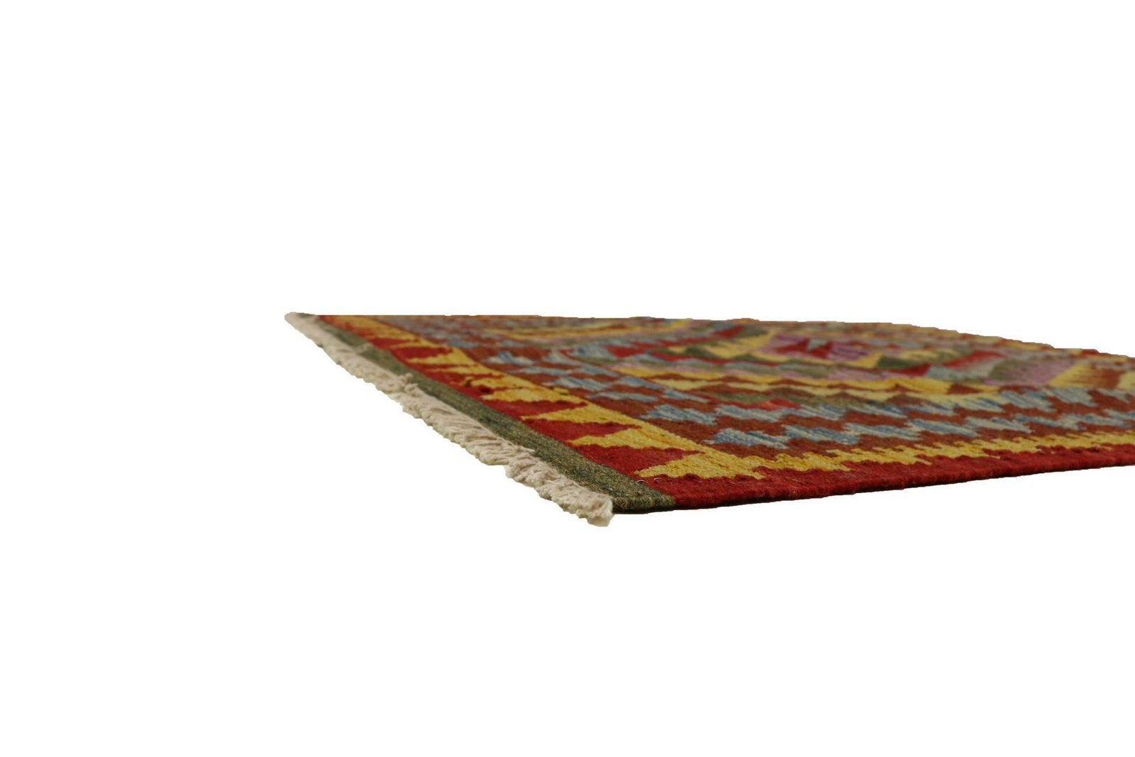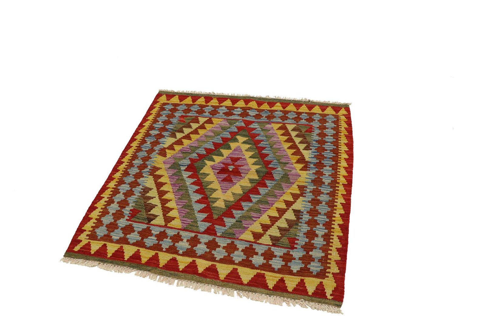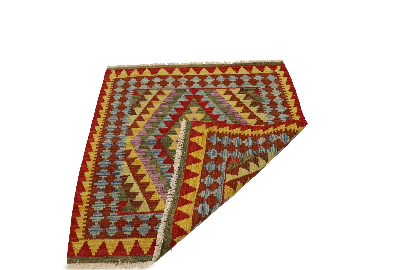These kilim rugs differ significantly from hand-knotted varieties as they are woven by hand. As a result, they do not have a high wool pile and are often flatter and rougher. Their production is less complex, which means they are generally less expensive. One advantage is their lightness and the fact that they can be used on both sides. Originally from Persia, kilims are now also widely produced in Afghanistan. They are characterised by simple, linear patterns created by their weaving technique.