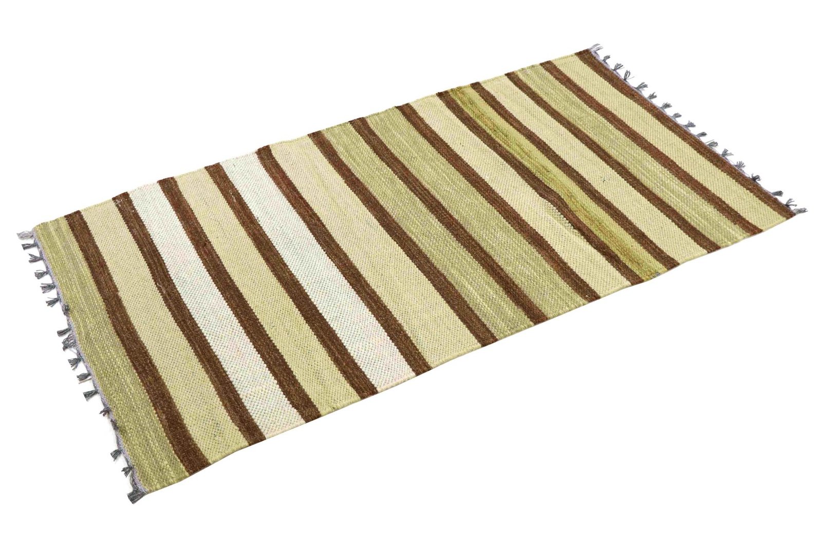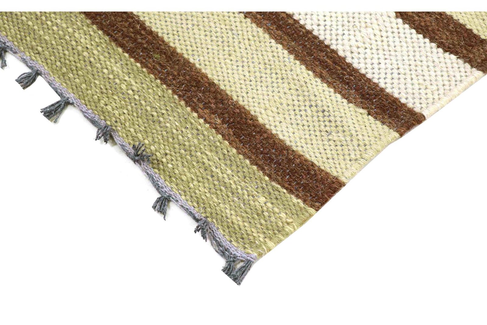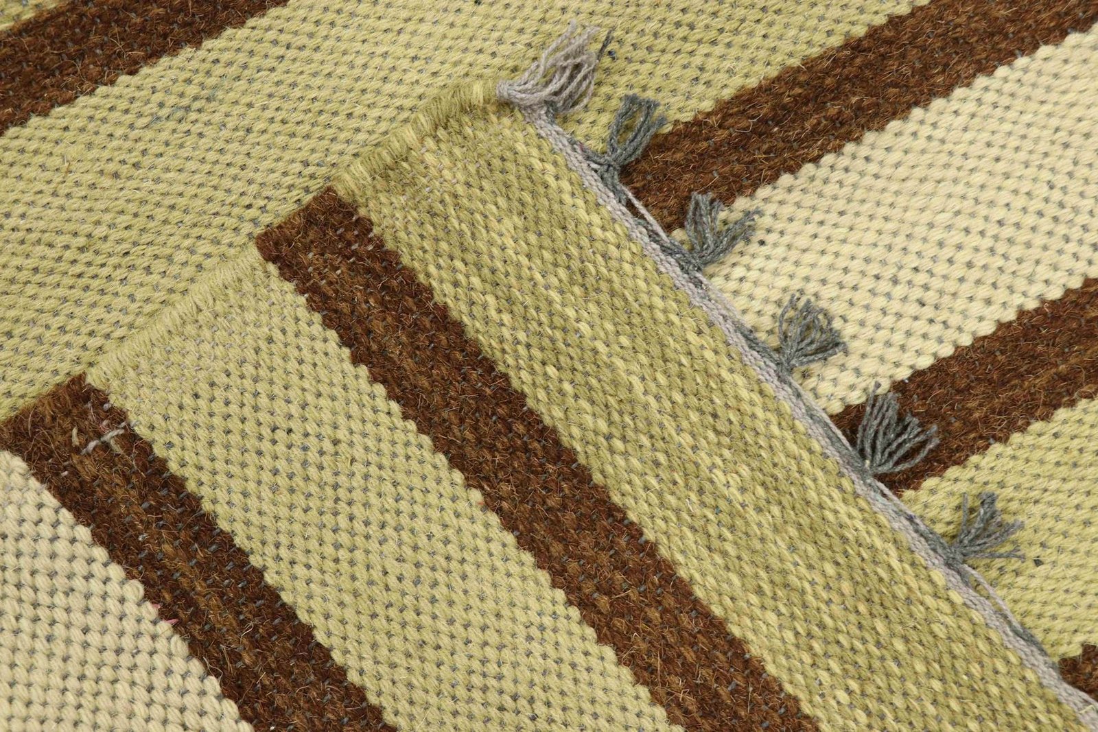 Kilim rugs are woven by hand without a high wool pile, making them flatter and rougher than hand-knotted rugs. This simpler manufacturing process makes them more affordable. They are lighter and can be used on both sides, which means they require less washing. Originally from Persia, they are also produced in India and feature simple, linear patterns due to their weaving technique.