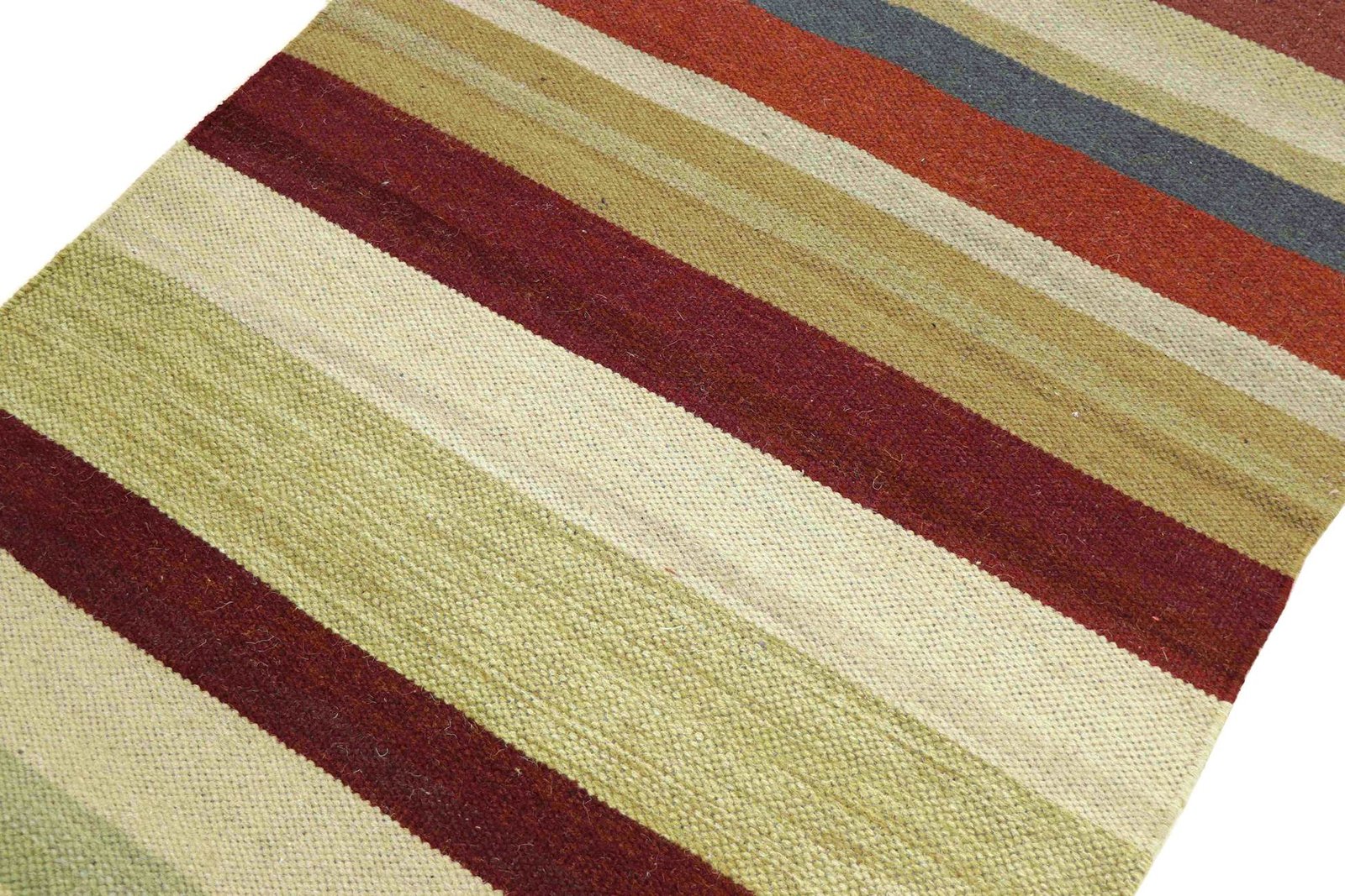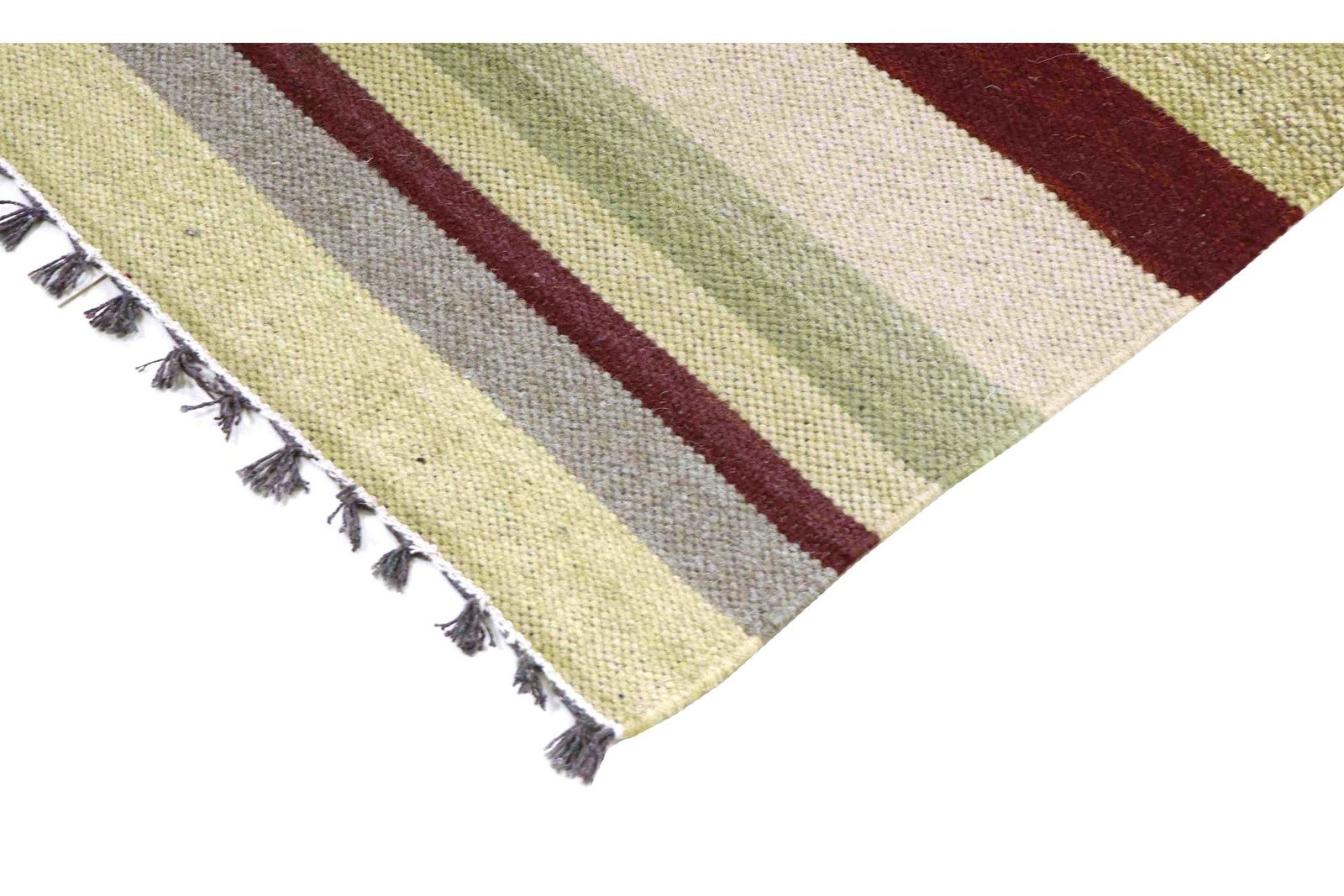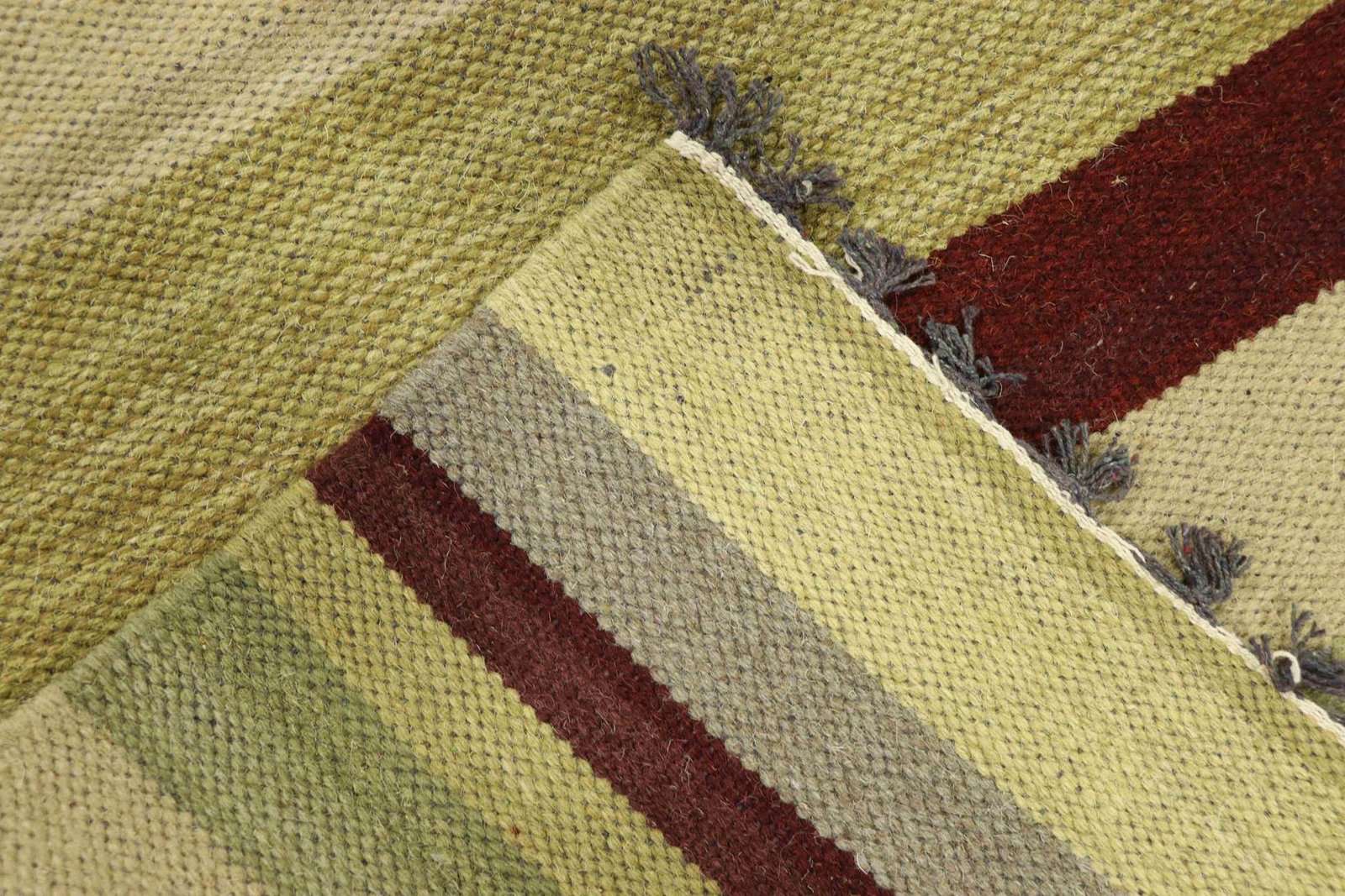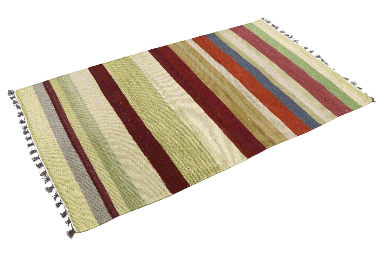 Kilim rugs differ from hand-knotted varieties in their hand-woven design, with a flatter structure and rougher feel, without a high wool pile. This makes them more affordable and lighter, as well as versatile, as they can be used on both sides. Originally from Persia, they are now also manufactured in India. They are characterised by their simple, linear patterns, which are created by the weaving technique.