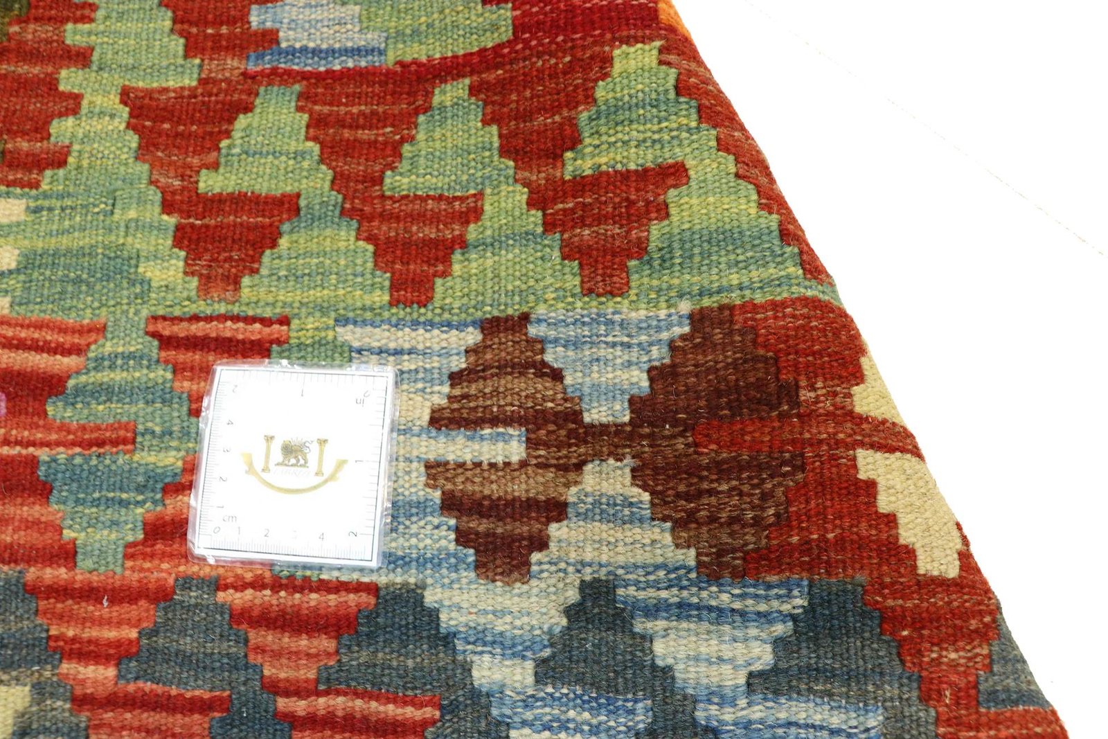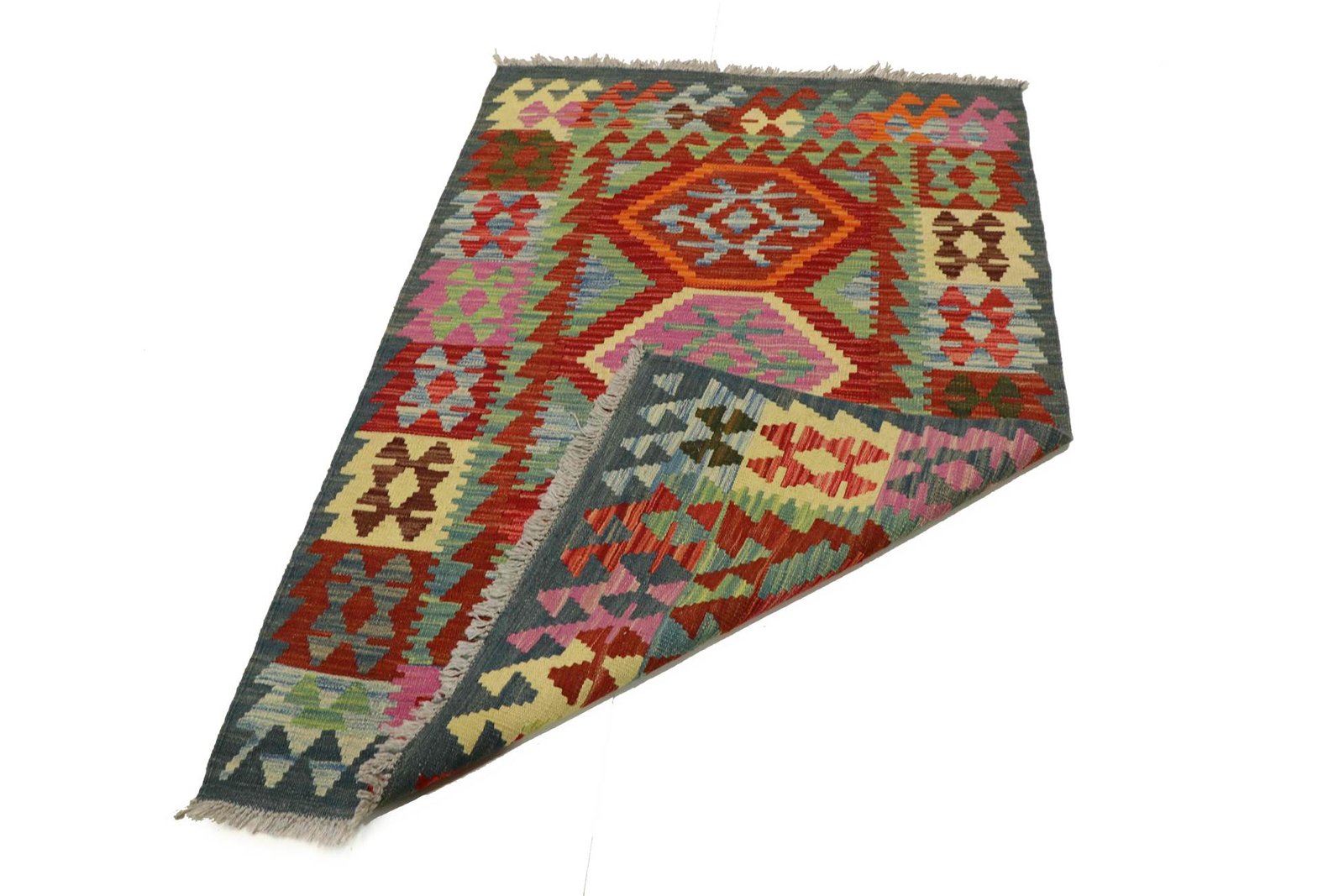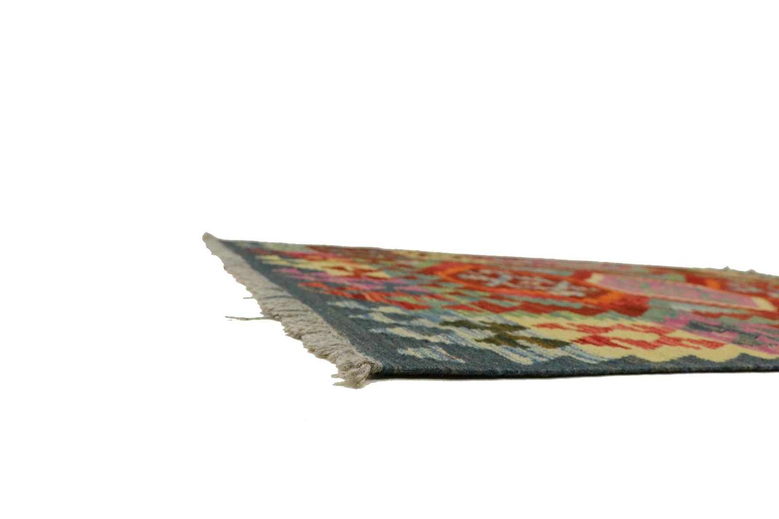 This hand-woven kilim carpet impresses with its multifaceted colours and typical kilim pattern. Pure sheep’s wool was used for the weaving, which is reflected in the quality of the carpet. This makes the carpet significantly more durable than its machine-knotted cousin. All carpets are handmade, unique pieces with their own character, which you will never find again in this form.