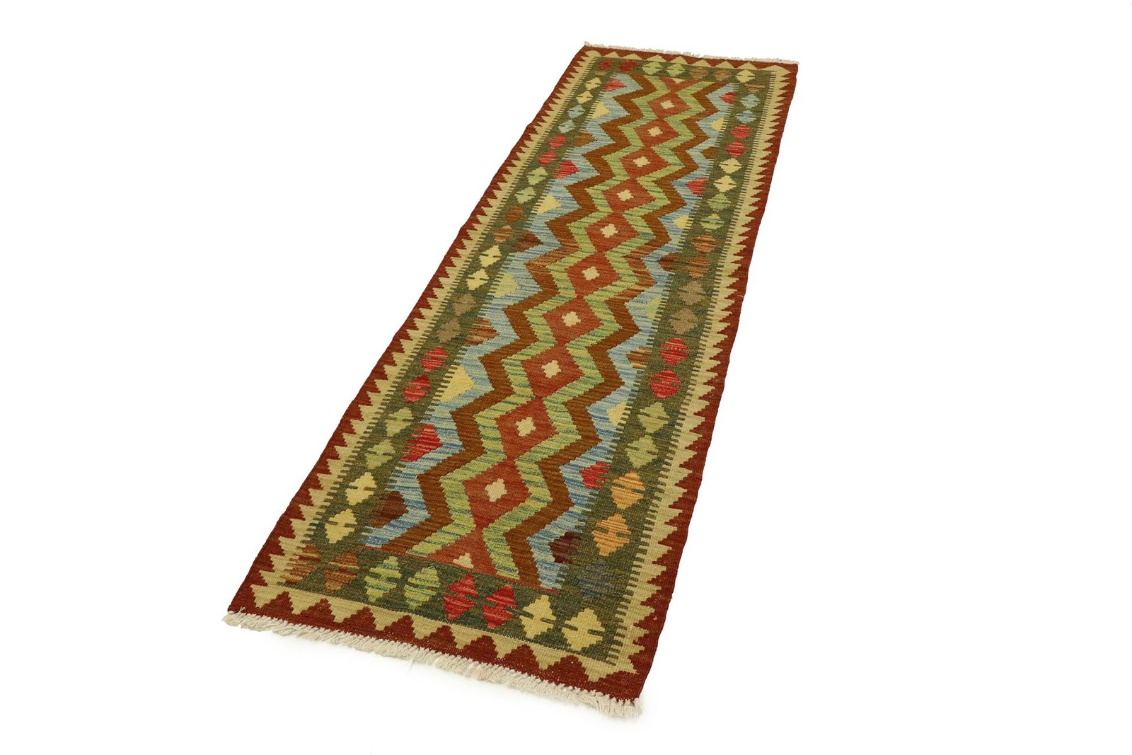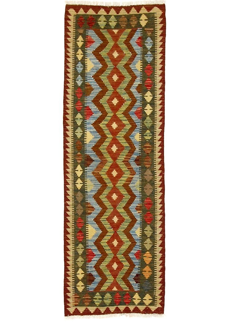 Kilim rugs differ fundamentally from hand-knotted rugs in that they are woven by hand and do not have a high wool pile, which makes them flatter and rougher. This makes them cheaper to produce. Another advantage is their lower weight and the fact that they can be used on both sides. Originally from Persia, they are now also widely produced in Afghanistan. Their patterns are usually simple and straightforward due to the special weaving technique.