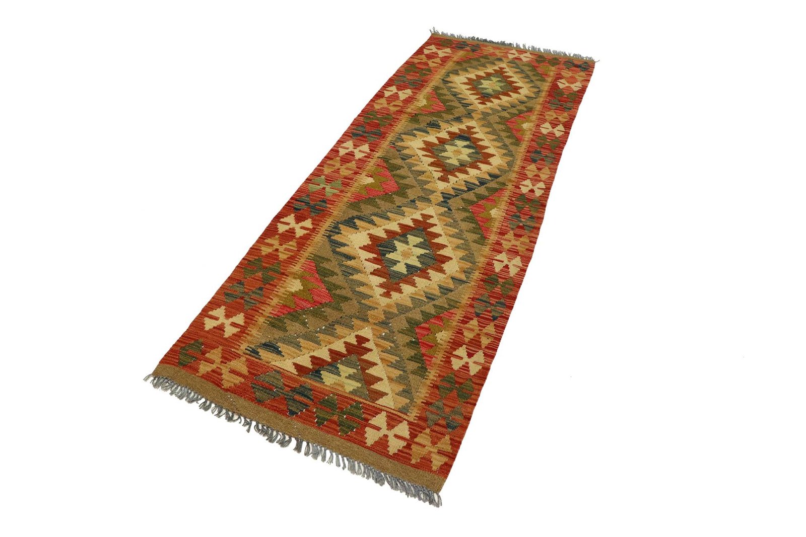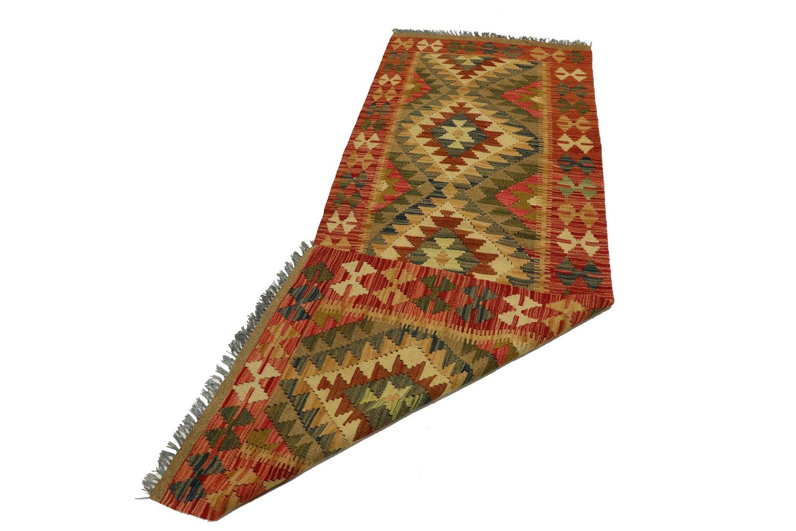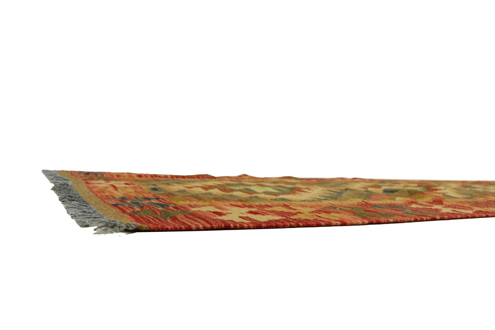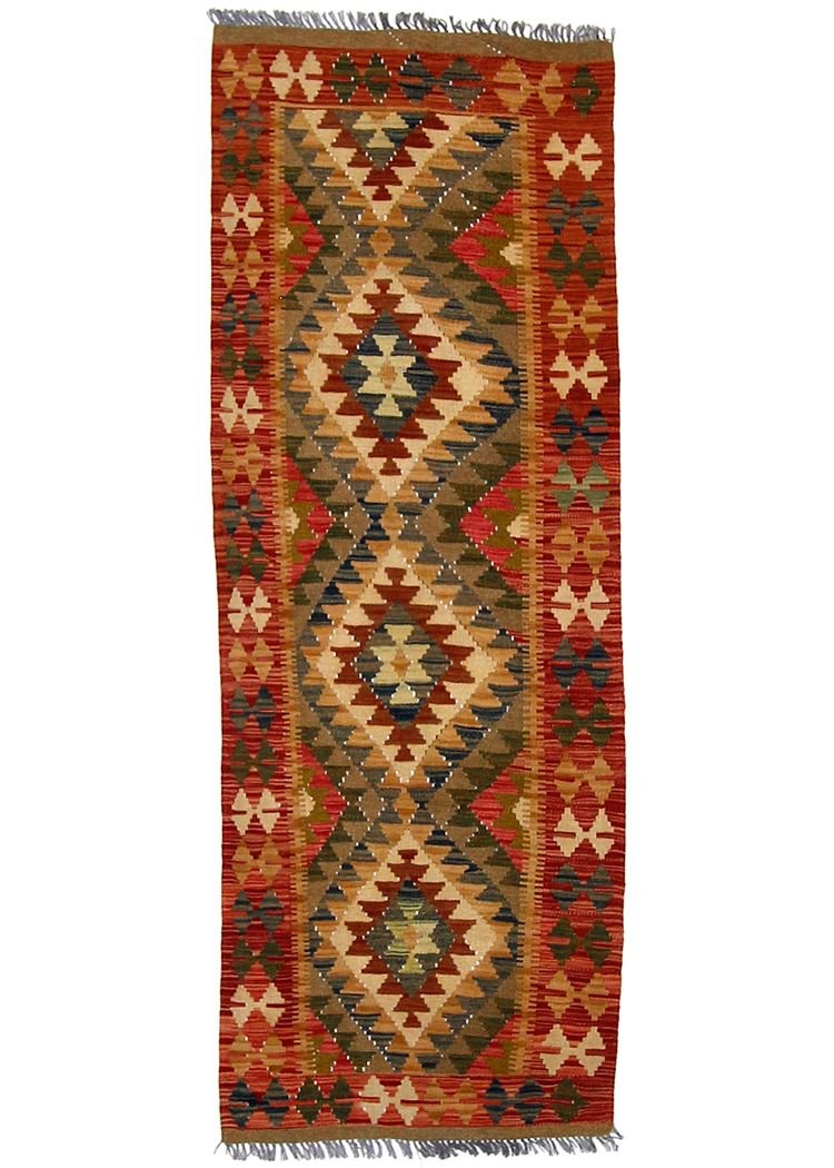 Kilim rugs are characterised by their hand weaving, in contrast to hand-knotted rugs with high wool pile. They are flatter, rougher and cheaper to manufacture. Due to their lower weight, they can be used flexibly on both sides. Originally from Persia, they are now also frequently manufactured in Afghanistan. Their designs are typically simple and straightforward, due to the special weaving technique.