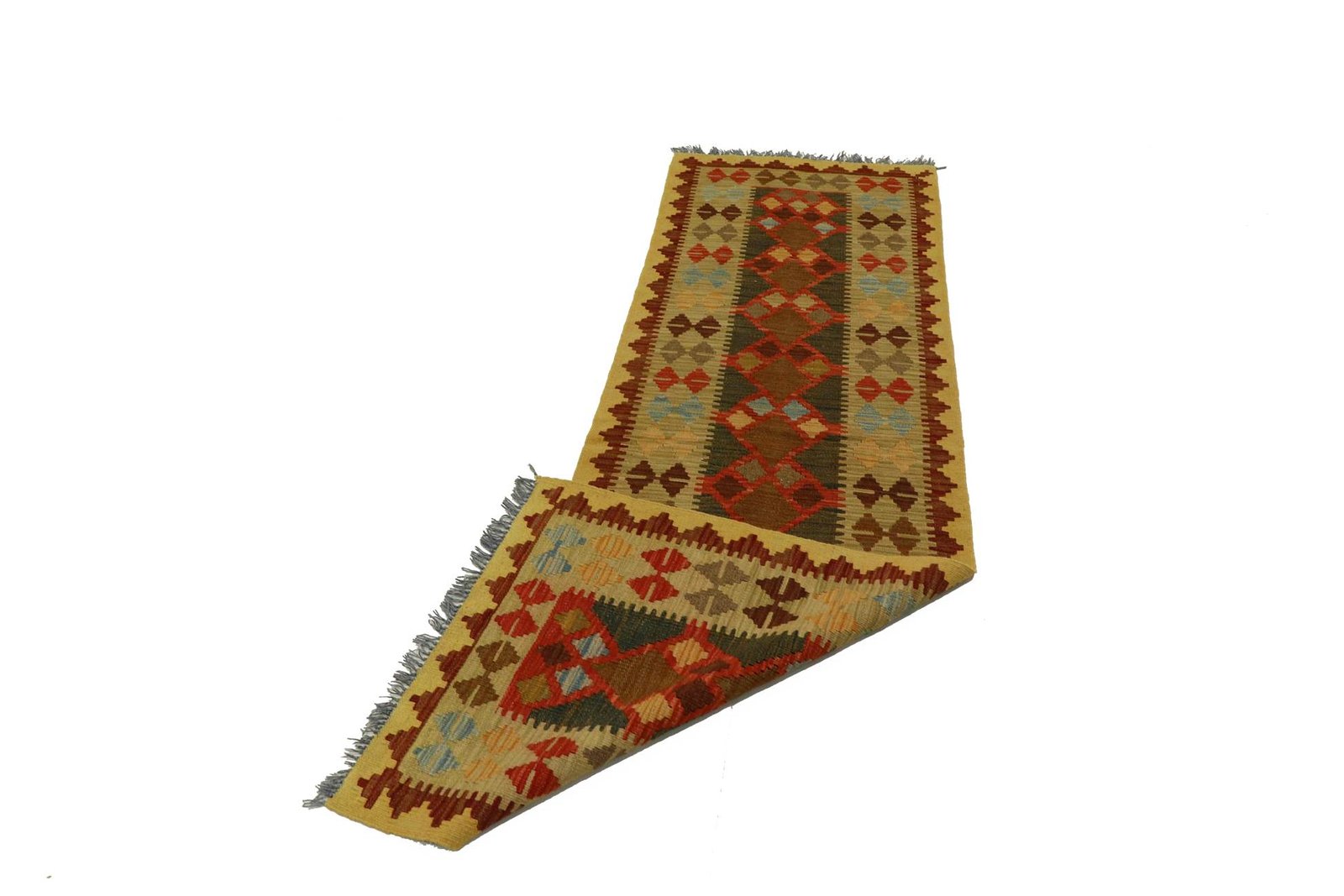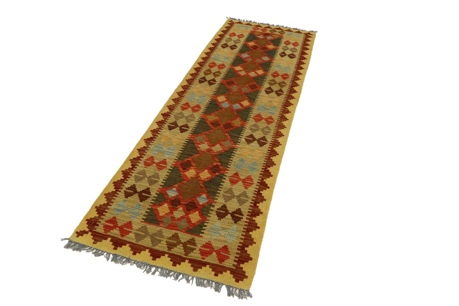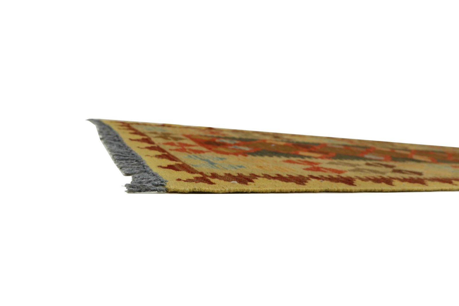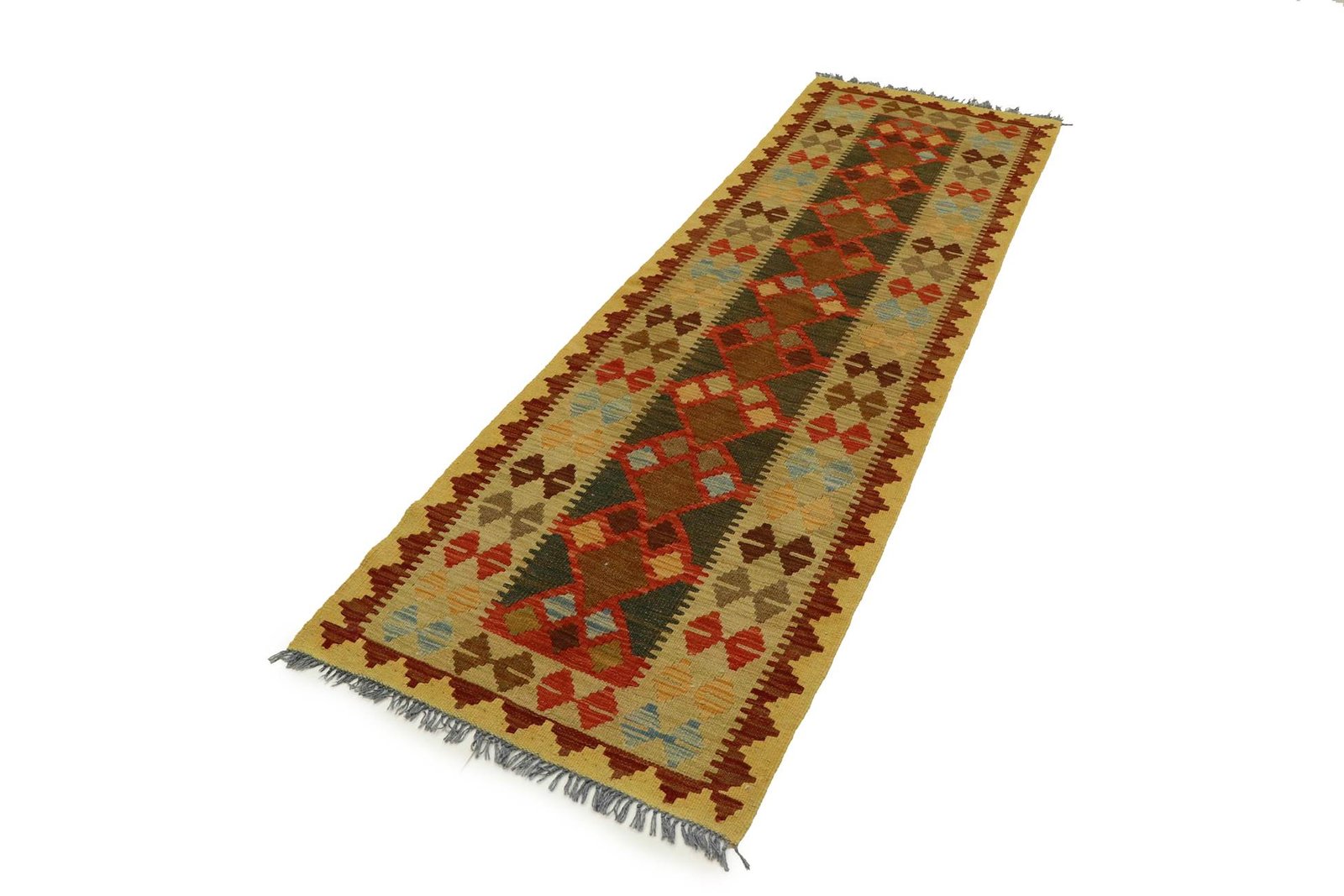 Kilim rugs are characterised by their hand-woven production, in contrast to hand-knotted rugs with raised wool pile. They are flatter and rougher, which makes them more cost-effective. Their versatility allows them to be used on both sides and they are lighter compared to other types of rugs. Originally from Persia, they are now also frequently produced in Afghanistan. Their characteristic, linear patterns are created by a special weaving technique.