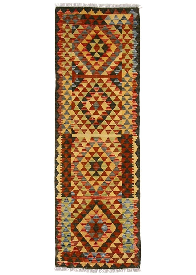 Unlike hand-knotted rugs, kilim rugs are woven by hand and do not have a raised wool pile, which makes them flatter and rougher. This simpler manufacturing process often makes them more affordable. They are lighter and can be used on both sides. Originally from Persia, they are also produced in Afghanistan. They are characterised by their simple, linear patterns, which are created by the weaving technique.