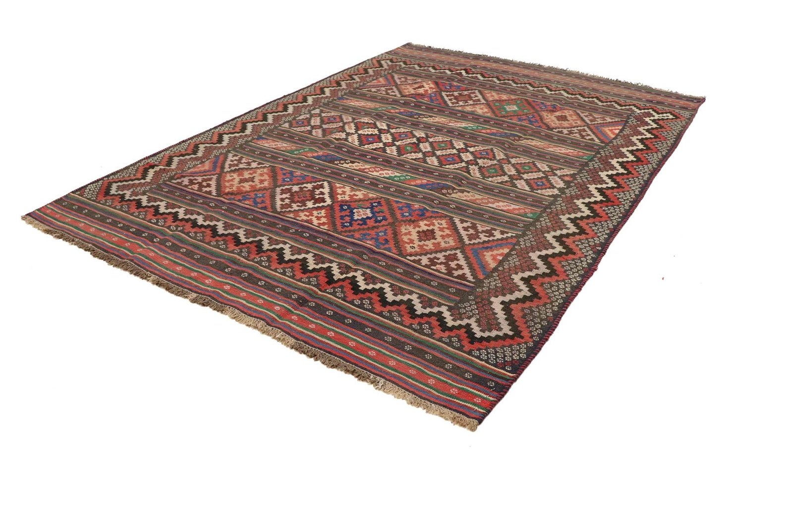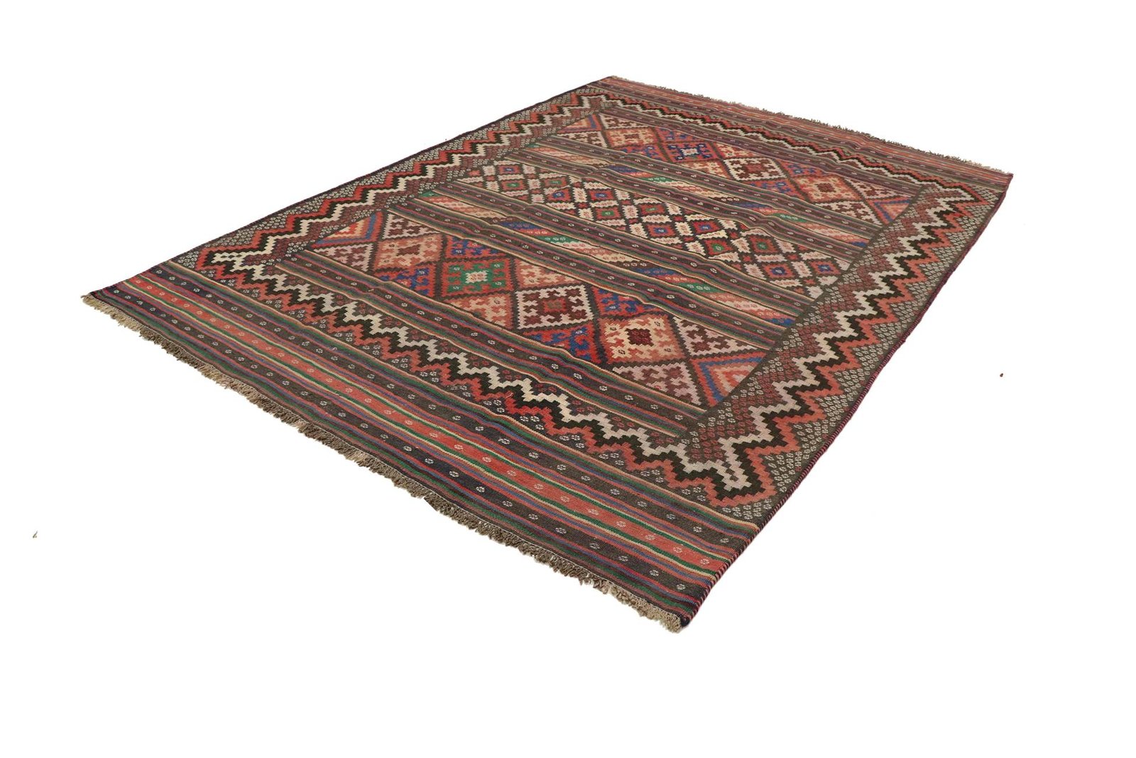 Unlike hand-knotted carpets, kilim carpets are woven by hand, making them flatter and rougher without a high wool pile. This type of production makes them more affordable and lighter, ideal for use on both sides. Originally from Persia, kilims are now also produced in Afghanistan. They are characterised by simple, linear patterns created by the special weaving technique. Due to their simplicity and robustness, they are popular for various interior styles and environments.