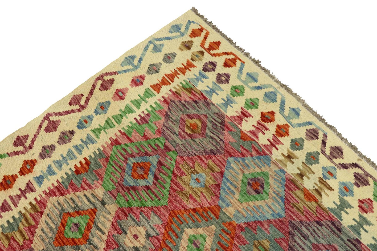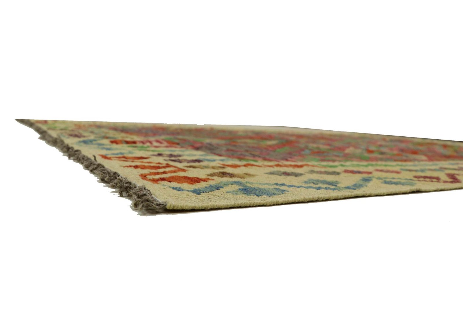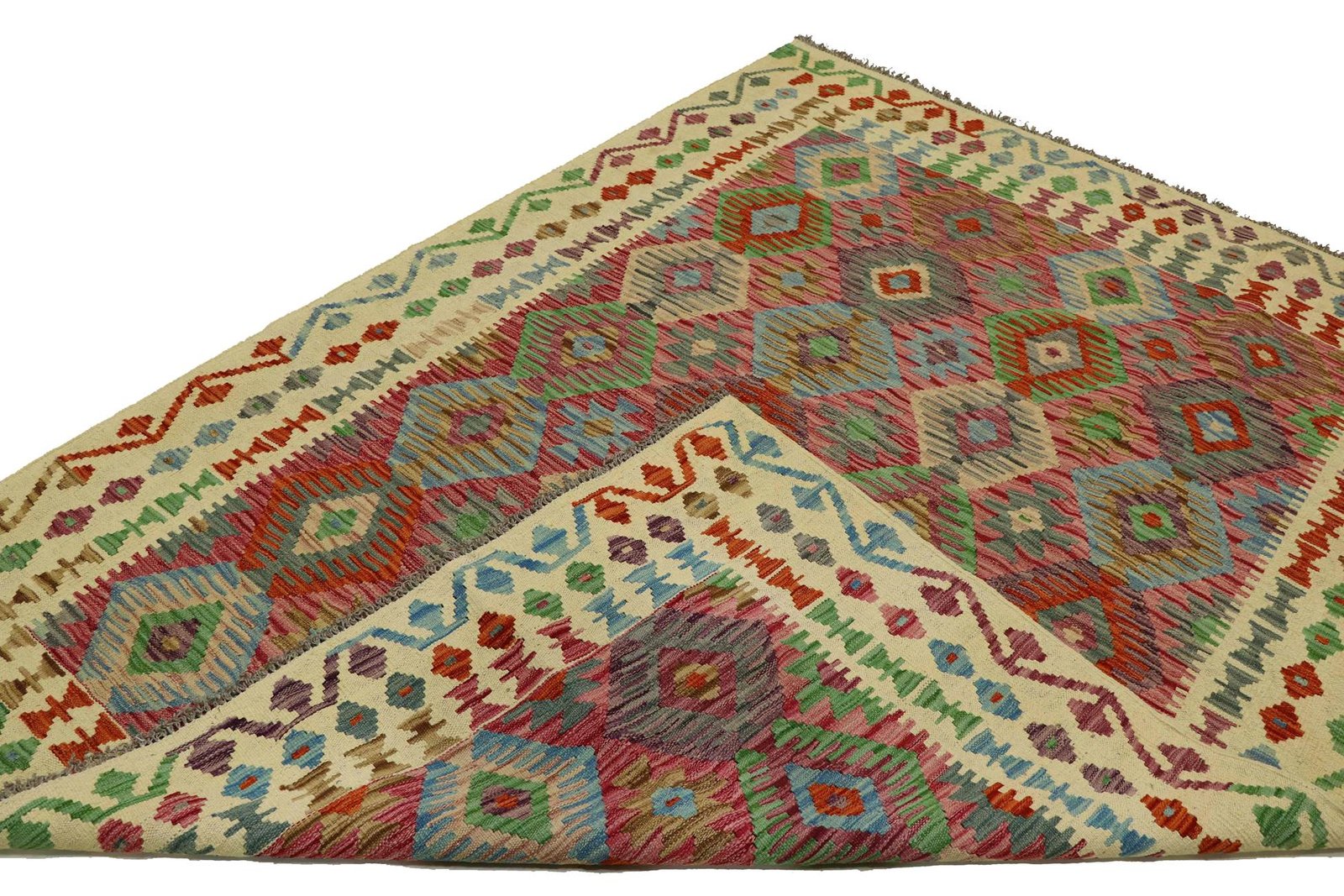 Kilim rugs differ significantly from hand-knotted varieties in that they are hand-woven without a thick wool pile. This makes them flatter and coarser, which in turn makes them more affordable. These rugs are lighter and can be used on both sides. Originally from Persia, they are now also produced in Afghanistan and are characterised by simple, linear patterns determined by their weaving technique.