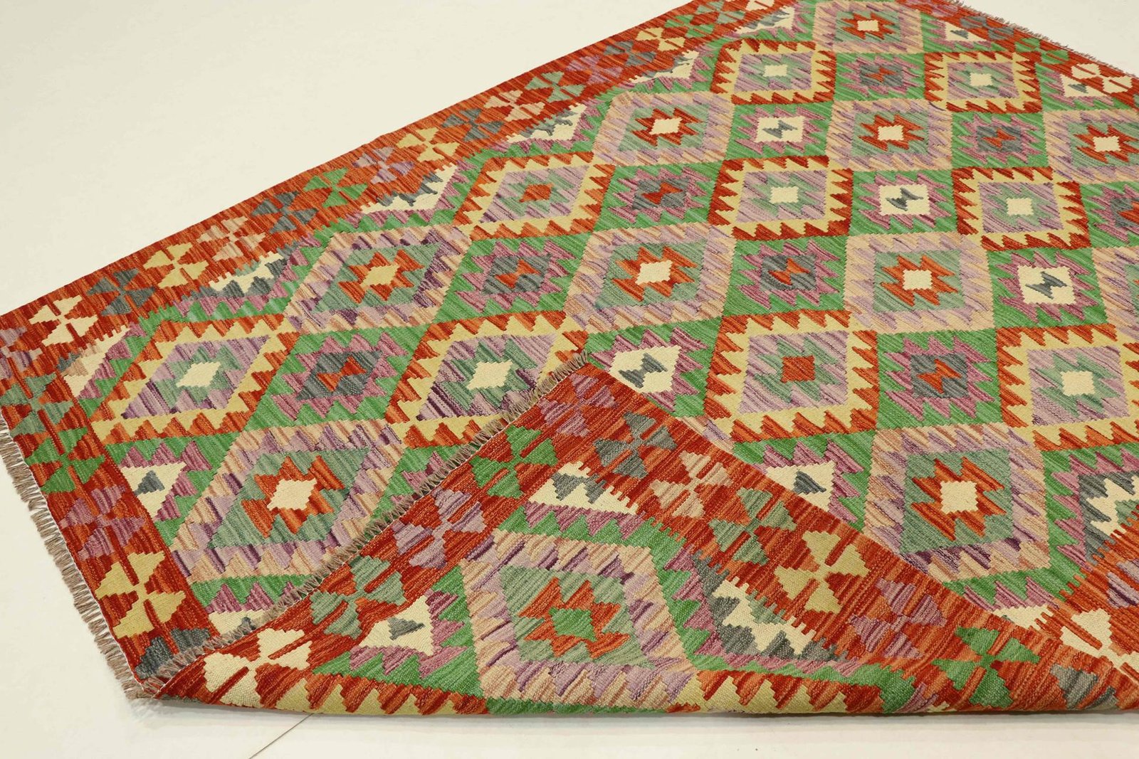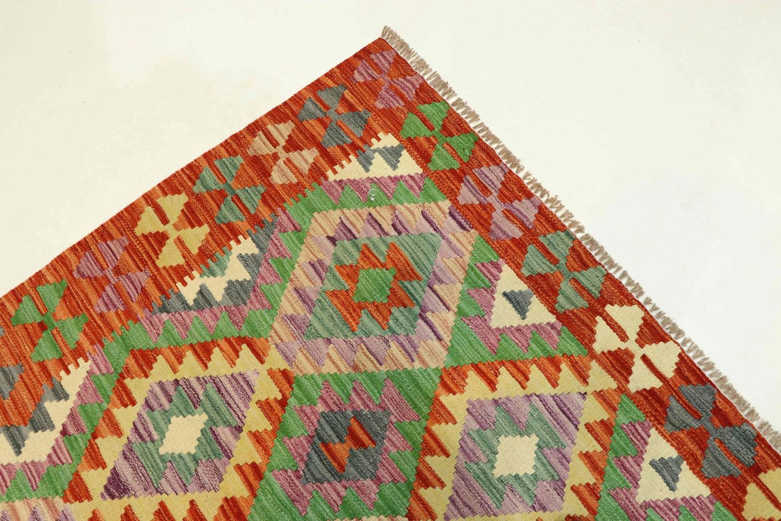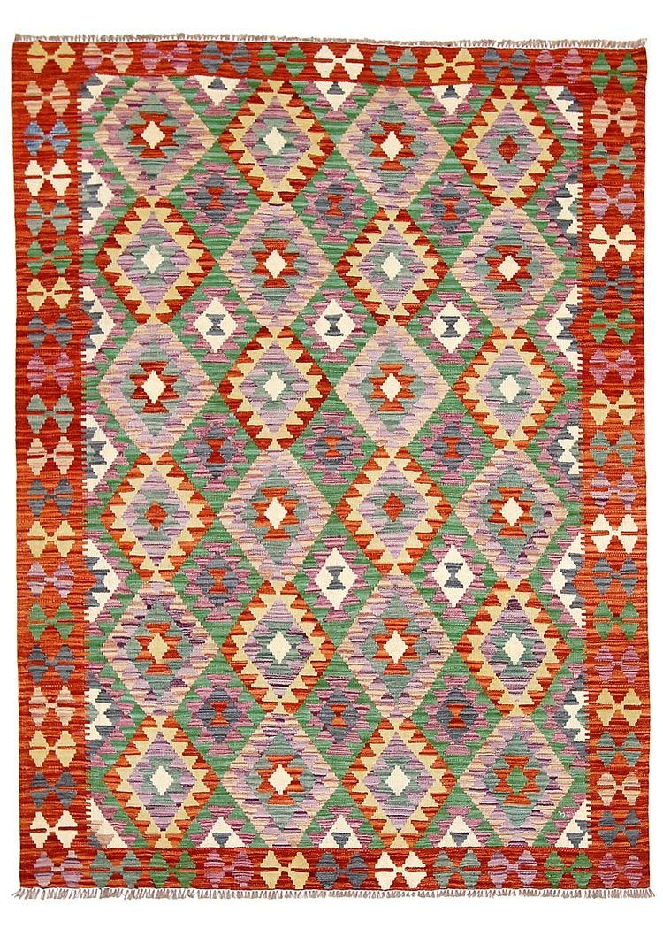 Kilim rugs differ significantly from hand-knotted varieties as they are woven by hand. As a result, they do not have a high wool pile and are generally flatter and coarser. This manufacturing method is less complex, making them more cost-effective. Another advantage is their lower weight and the fact that they can be used on both sides. Originally from Persia, kilims are now also widely produced in Afghanistan. They are typically characterised by simple, linear patterns created by their special weaving technique.