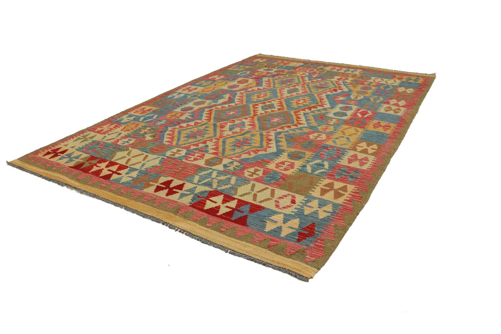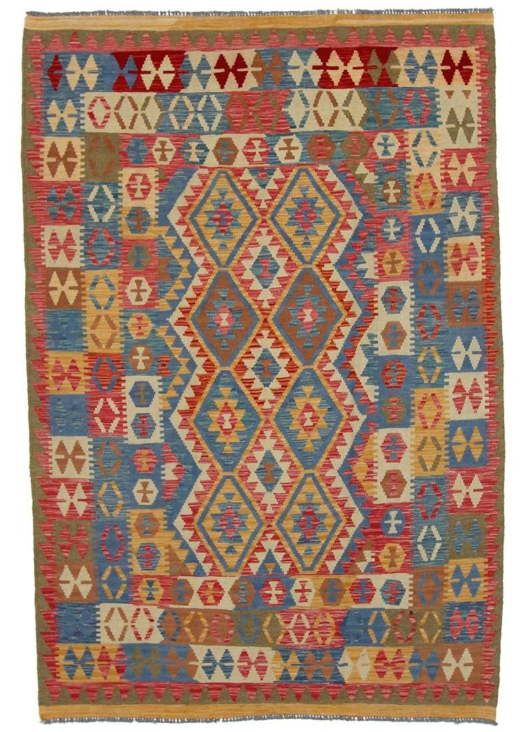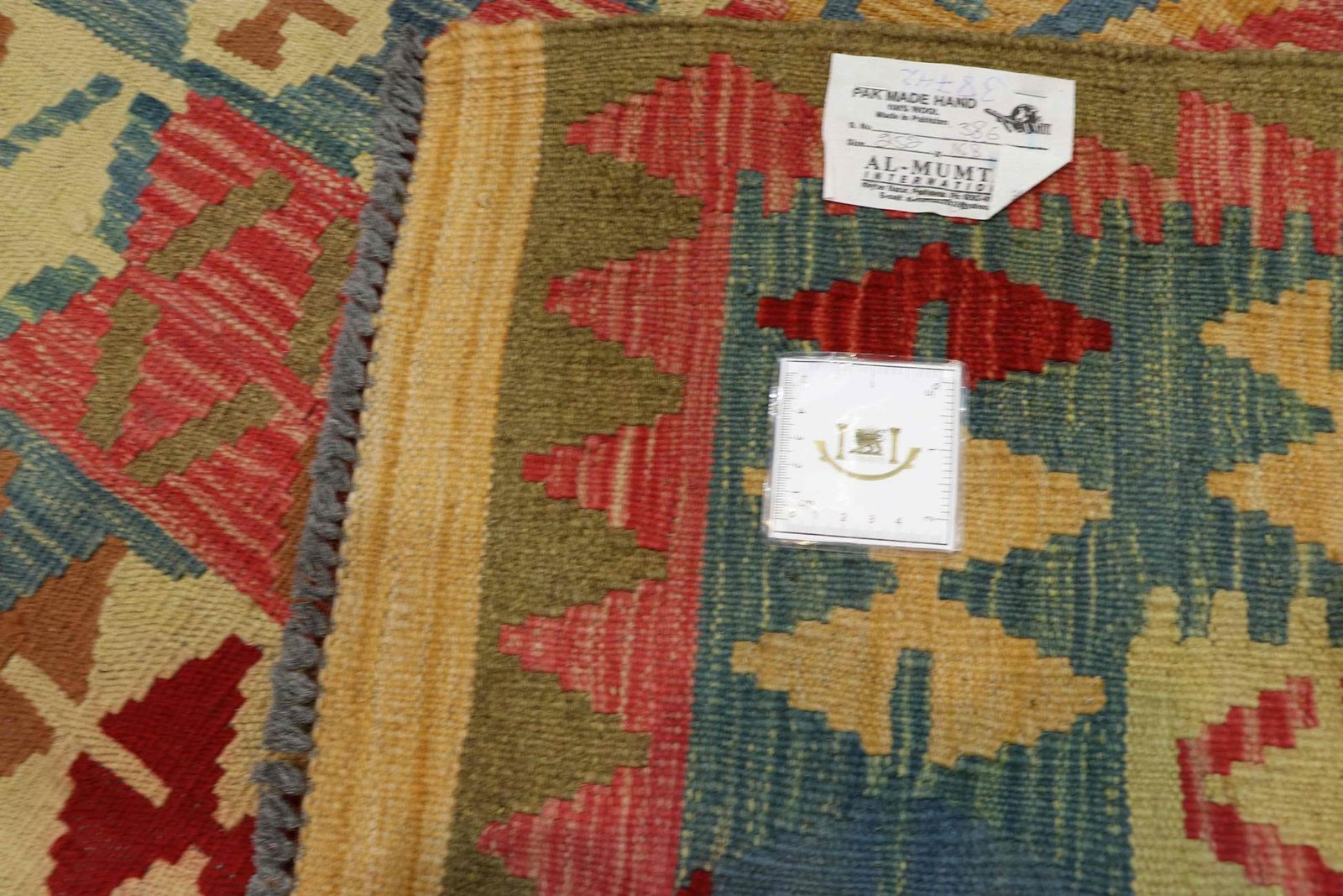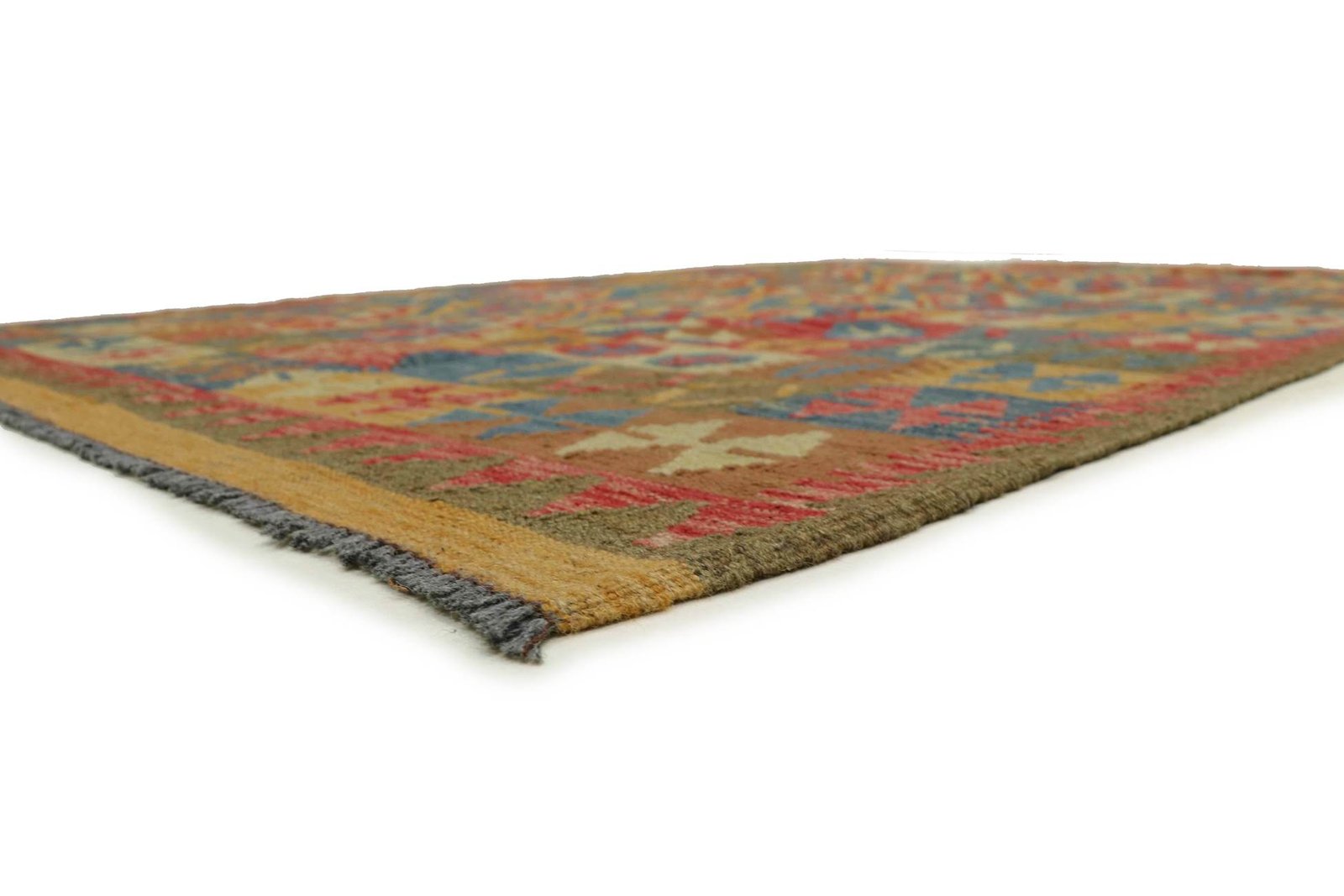 Kilim rugs differ significantly from hand-knotted rugs in that they are woven by hand. They do not have a high wool pile, are flatter and rougher, which makes them more affordable. Due to their lower weight, they can be used on both sides. Originally from Persia, kilim rugs are now also widely produced in Afghanistan. They are characterised by their simple, linear patterns, which are created by the weaving technique.