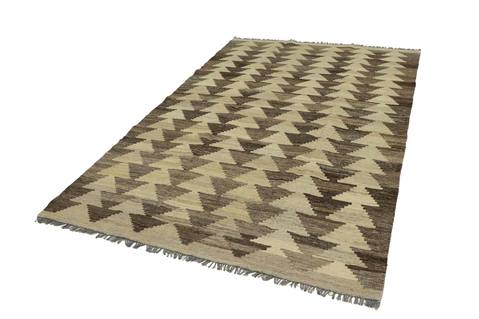 Kilim rugs differ from hand-knotted varieties in their hand-weaving technique. They do not have a high wool pile, are flatter and rougher, which explains their lower production costs. Lighter and usable on both sides, they originate from former Persia and are now also widespread in Afghanistan. Their simple, linear patterns result from the special weaving technique.