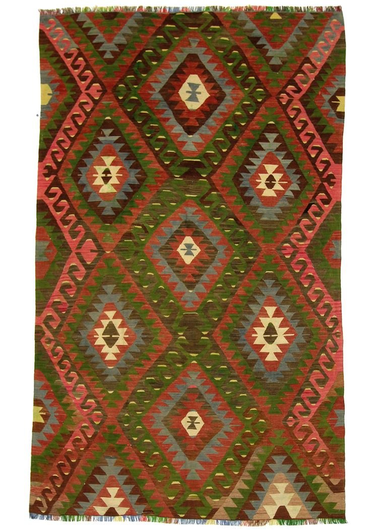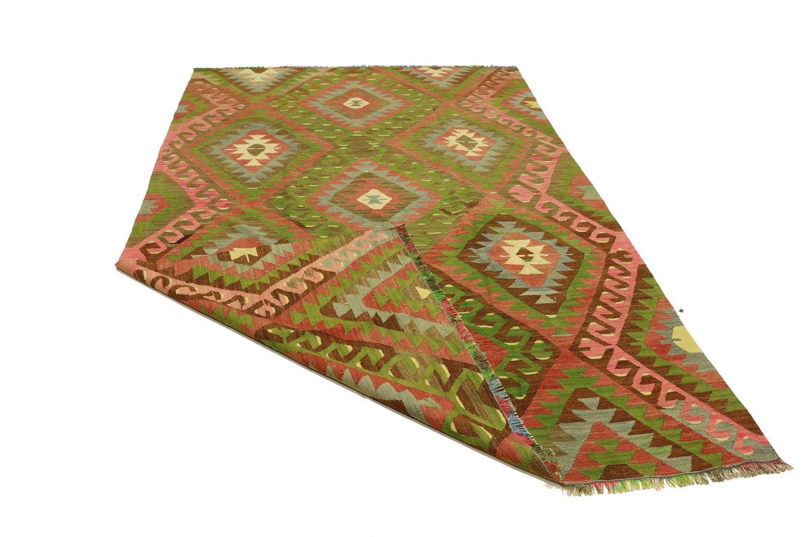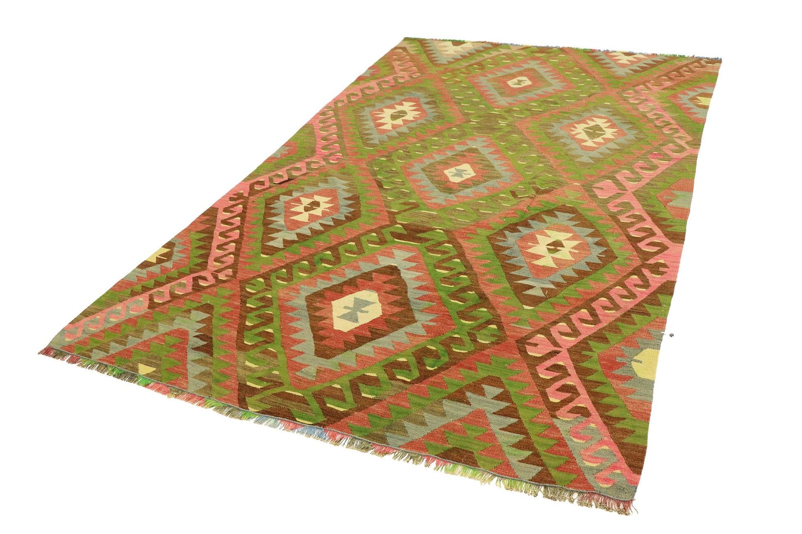 Kilim carpets differ significantly from hand-knotted carpets in that they are hand-woven, without a high wool pile, flatter and rougher, and therefore less expensive. They are lighter, can be used on both sides, originate from Persia and are manufactured in Afghanistan. Their simple, linear patterns are created using a special weaving technique.