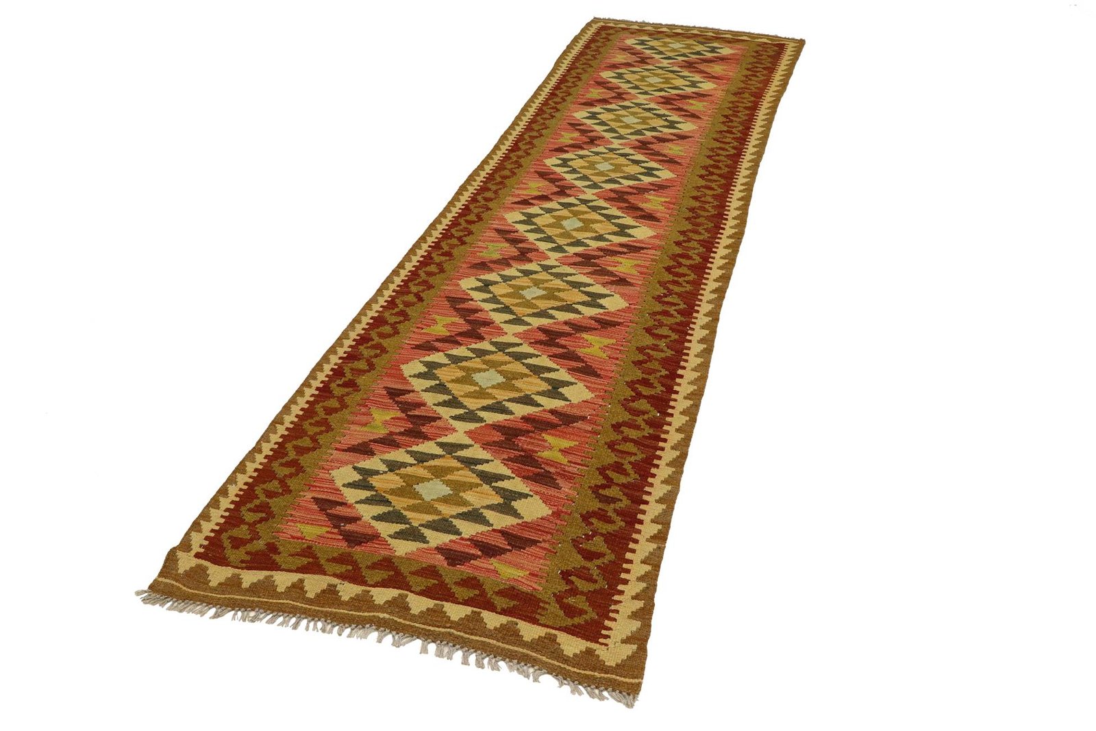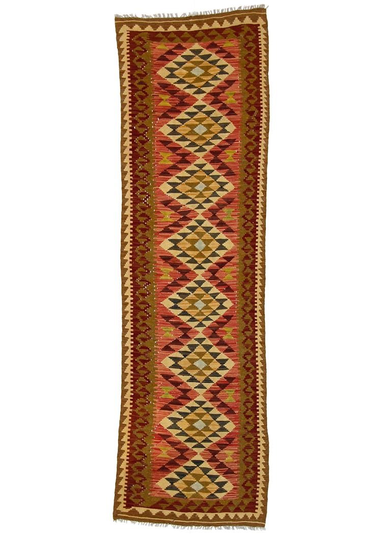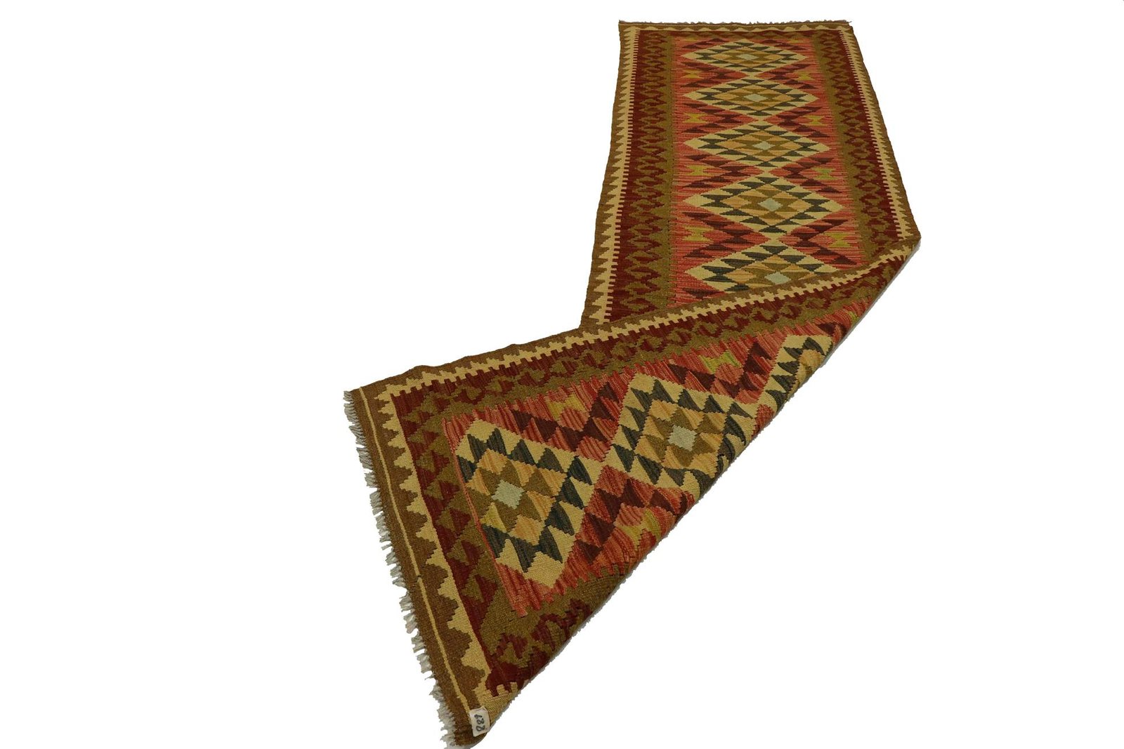 Unlike hand-knotted carpets, kilim carpets are woven by hand and do not have a high wool pile, making them flatter and rougher. This less complex manufacturing method generally makes them more affordable. Another advantage is their lower weight and the fact that they can be used on both sides. Originally from Persia, they are now also widely produced in Afghanistan. They are characterised by their simple, linear patterns, which are created by the weaving technique.