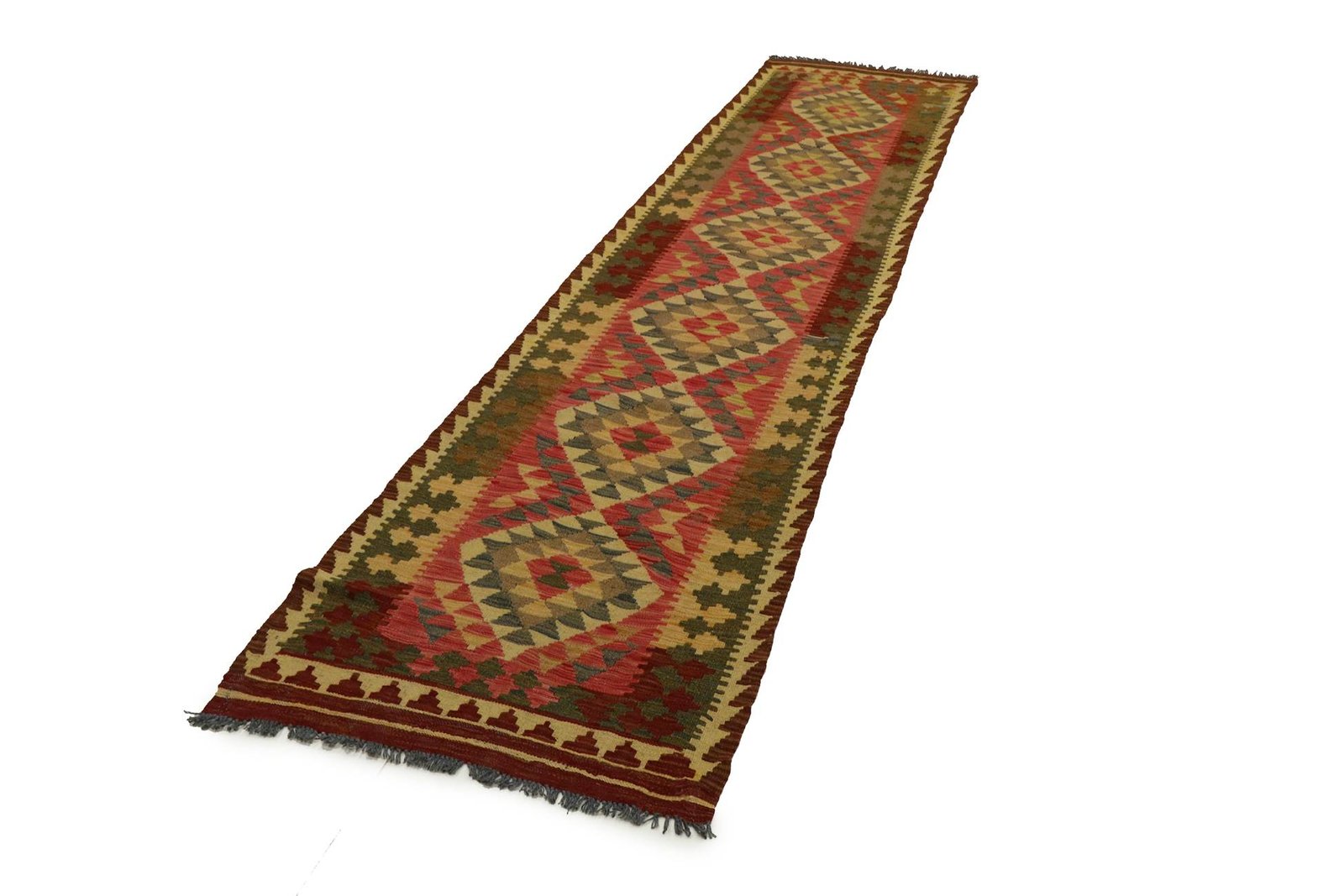 Kilim rugs differ fundamentally from hand-knotted varieties in that they are hand-woven and do not have a high wool pile, which makes them flatter and rougher. This simpler manufacturing process results in lower production costs. An additional advantage is their lower weight and the fact that they can be used on both sides. Originally from Persia, kilims are now also widely produced in Afghanistan. They are characterised by their simple, linear patterns, which are created by the special weaving technique.