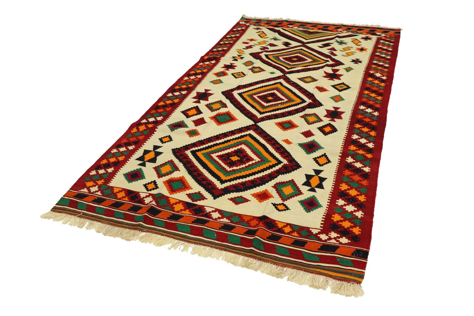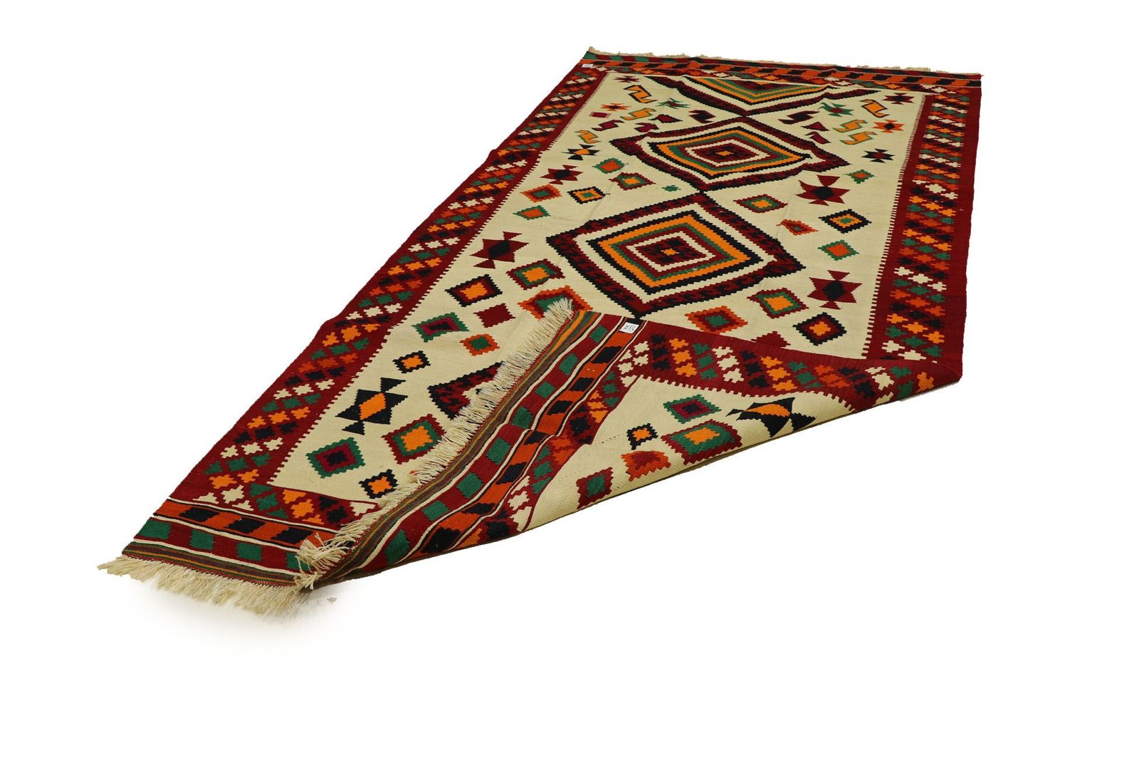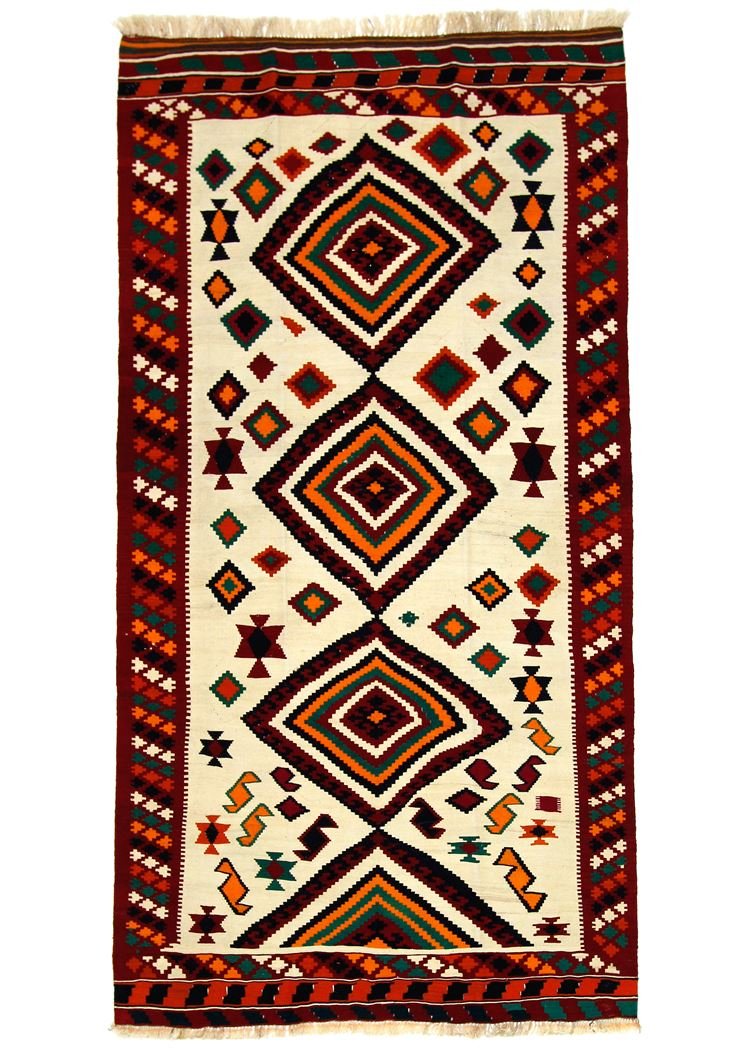 Kilim rugs differ fundamentally from hand-knotted varieties in that they are woven by hand and do not have a high wool pile, which makes them flatter and rougher. Their production is less complex and therefore less expensive. Another advantage is their lower weight and the fact that they can be used on both sides. These rugs originate from former Persia and are now also manufactured in Afghanistan. They are characterised by their simple, linear patterns, which are created by the weaving technique.