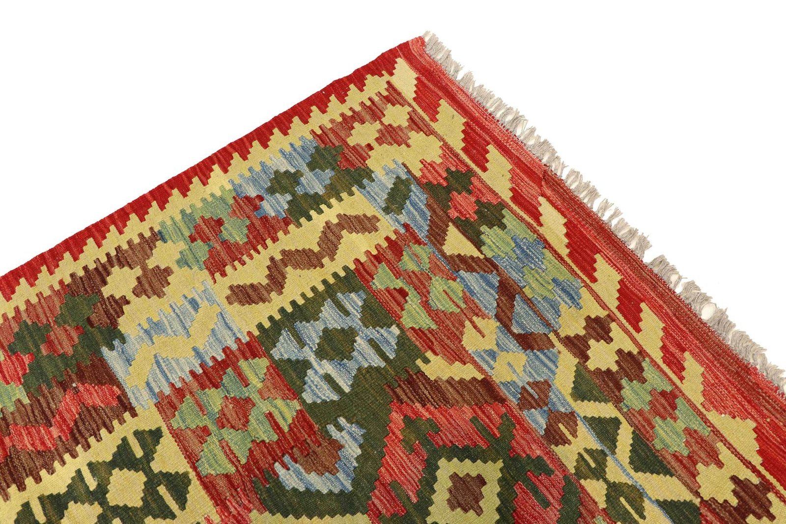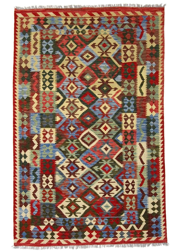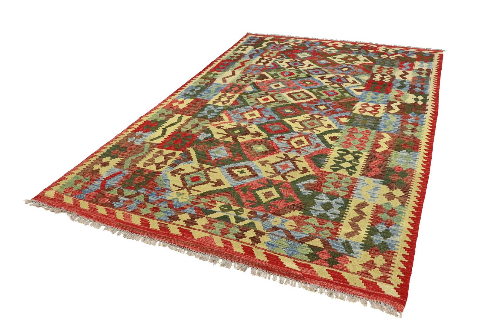 Kilim rugs differ significantly from hand-knotted rugs in that they are woven by hand and do not have a high wool pile, which makes them flatter and rougher. This generally makes them cheaper to produce. Kilim rugs are also lighter and can be used on both sides, which increases their versatility. Originally from Persia, they are now also widely produced in Afghanistan. They are characterised by their simple, linear patterns, which are created by the special weaving technique.
