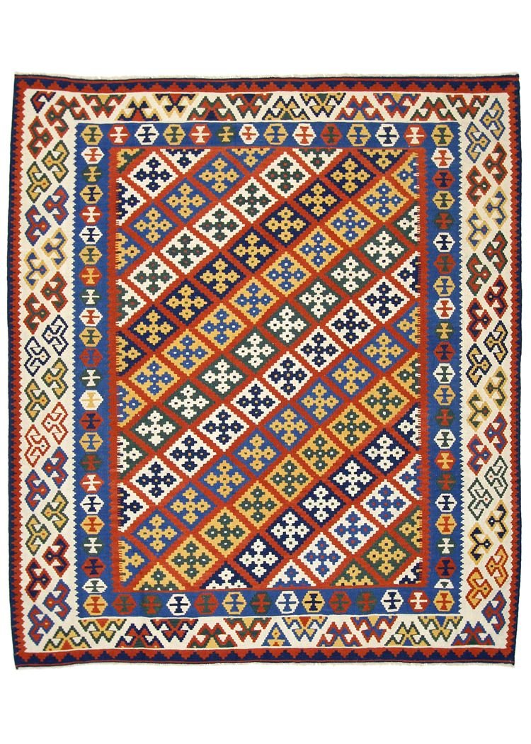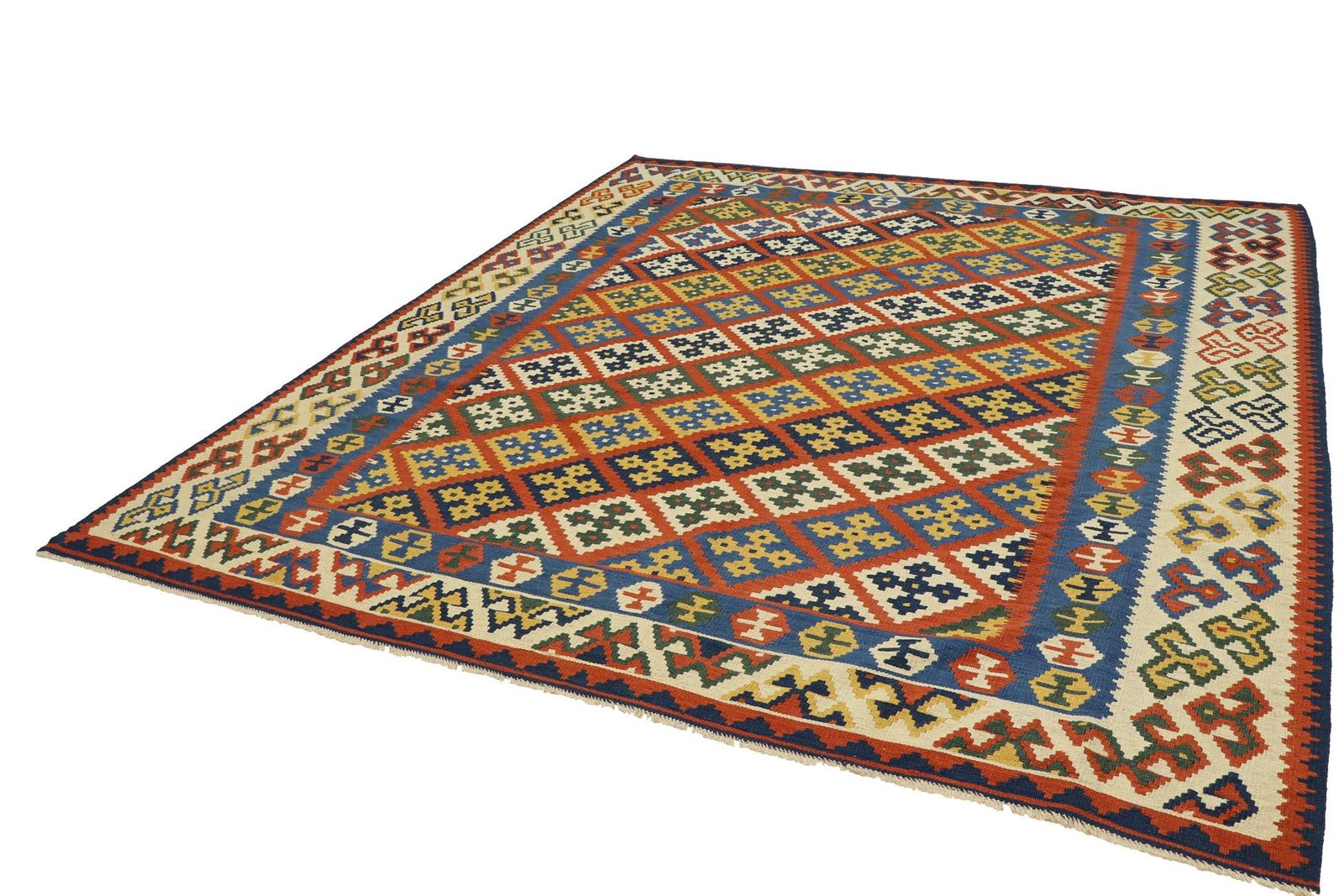 Kilim rugs differ fundamentally from hand-knotted rugs in that they are woven by hand and do not have a high wool pile. This often makes them flatter and rougher, which allows them to be produced more cost-effectively. An additional advantage is their lower weight and the fact that they can be used on both sides. Originally from ancient Persia, kilims are now also widely produced in Afghanistan. They are typically characterised by simple, linear patterns created by a special weaving technique.