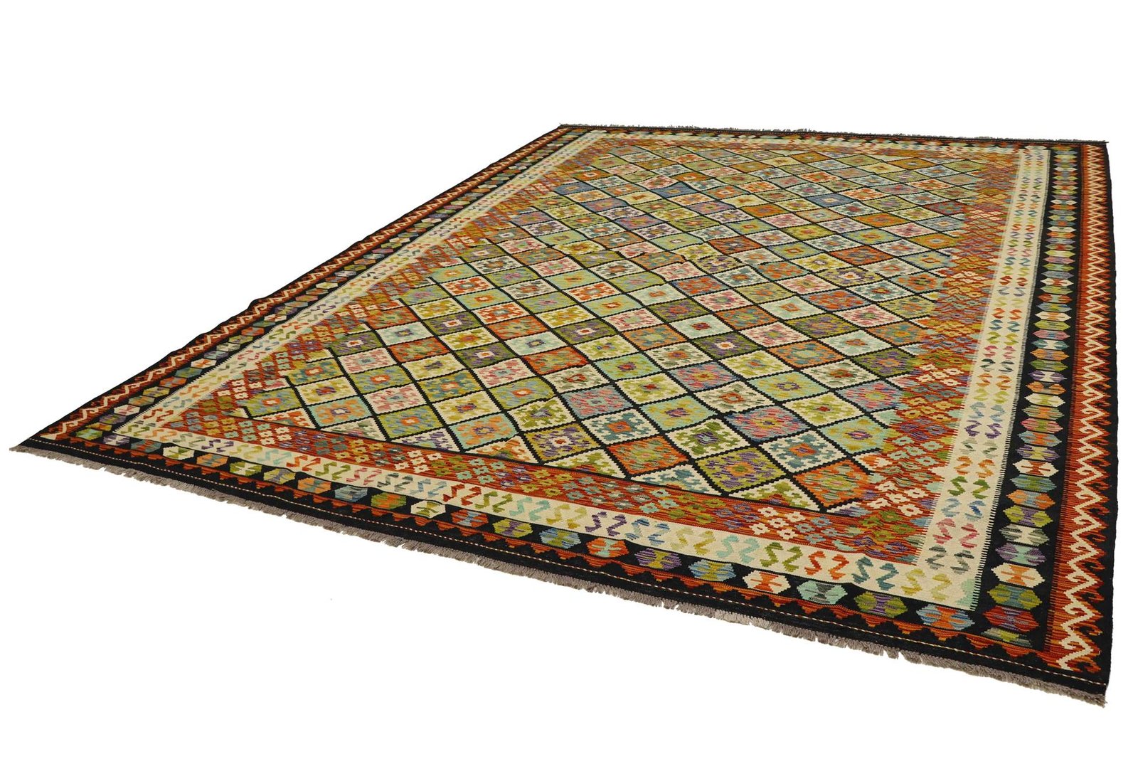 Kilim rugs differ significantly from hand-knotted varieties in their hand-weaving technique, which results in a flat, rough pile without elaborate wool inserts. This not only makes them more affordable, but also lighter and more versatile, as they can be used on both sides. Originally from former Persia, they are now also common in Afghanistan. Their designs are often simple and straightforward, due to the weaving technique that is characteristic of kilims. Unlike traditional carpets, kilims are not knotted but woven, which makes their production less time-consuming. These characteristics make kilim carpets an attractive choice for those who are looking for robust and versatile floor coverings without having to forego traditional craftsmanship.
