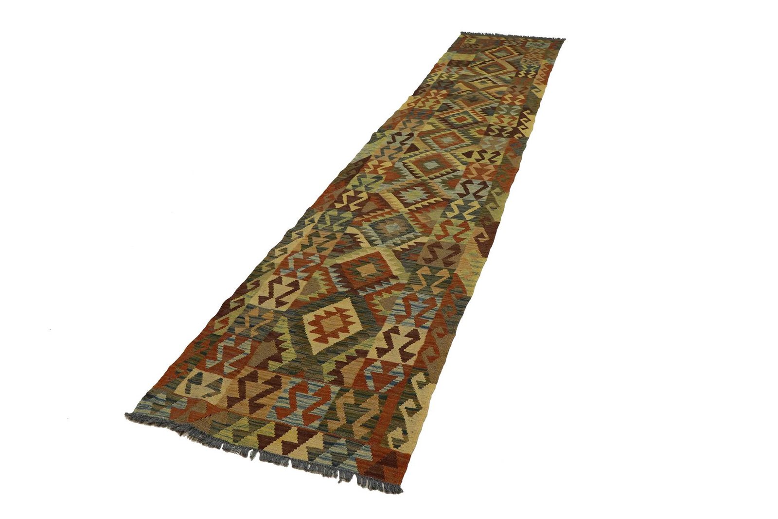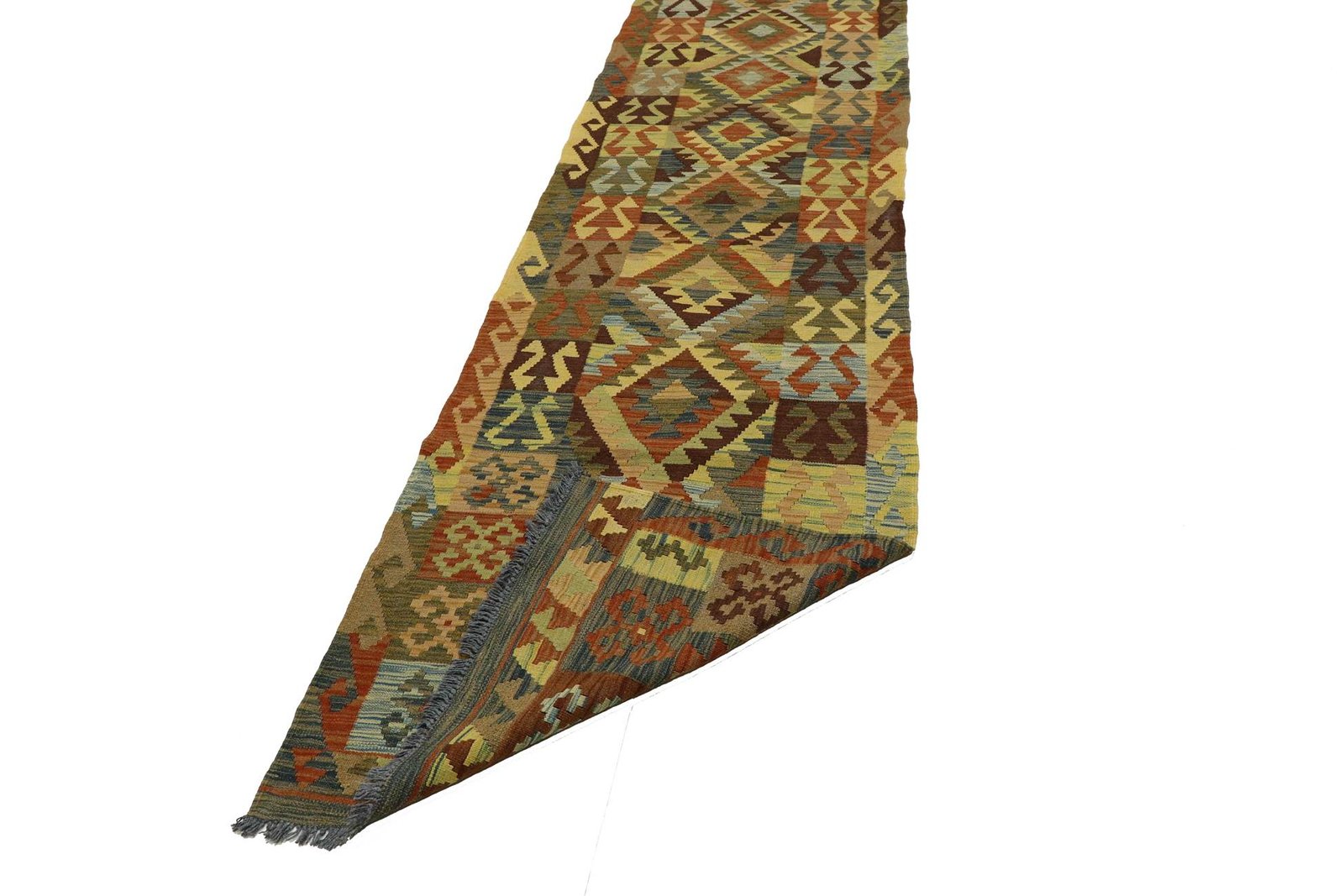 Kilim rugs differ significantly from hand-knotted varieties in that they are hand-woven, which means they do not have a high wool pile and are often flatter and more rustic. These rugs are less complex to manufacture, which generally makes them more affordable. One advantage is their lightness and the fact that they can be used on both sides. Originally from Persia, kilims are now also widely produced in Afghanistan. They are typically characterised by simple, linear patterns created by their weaving technique.