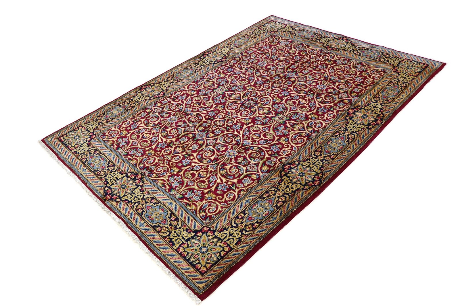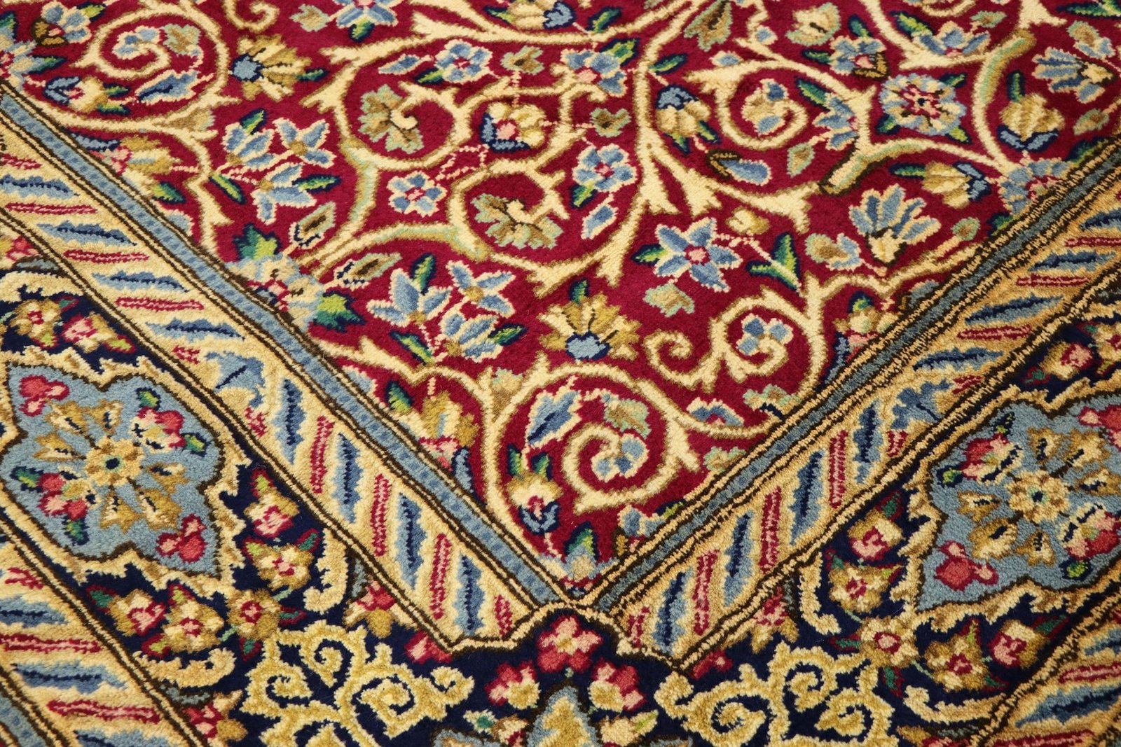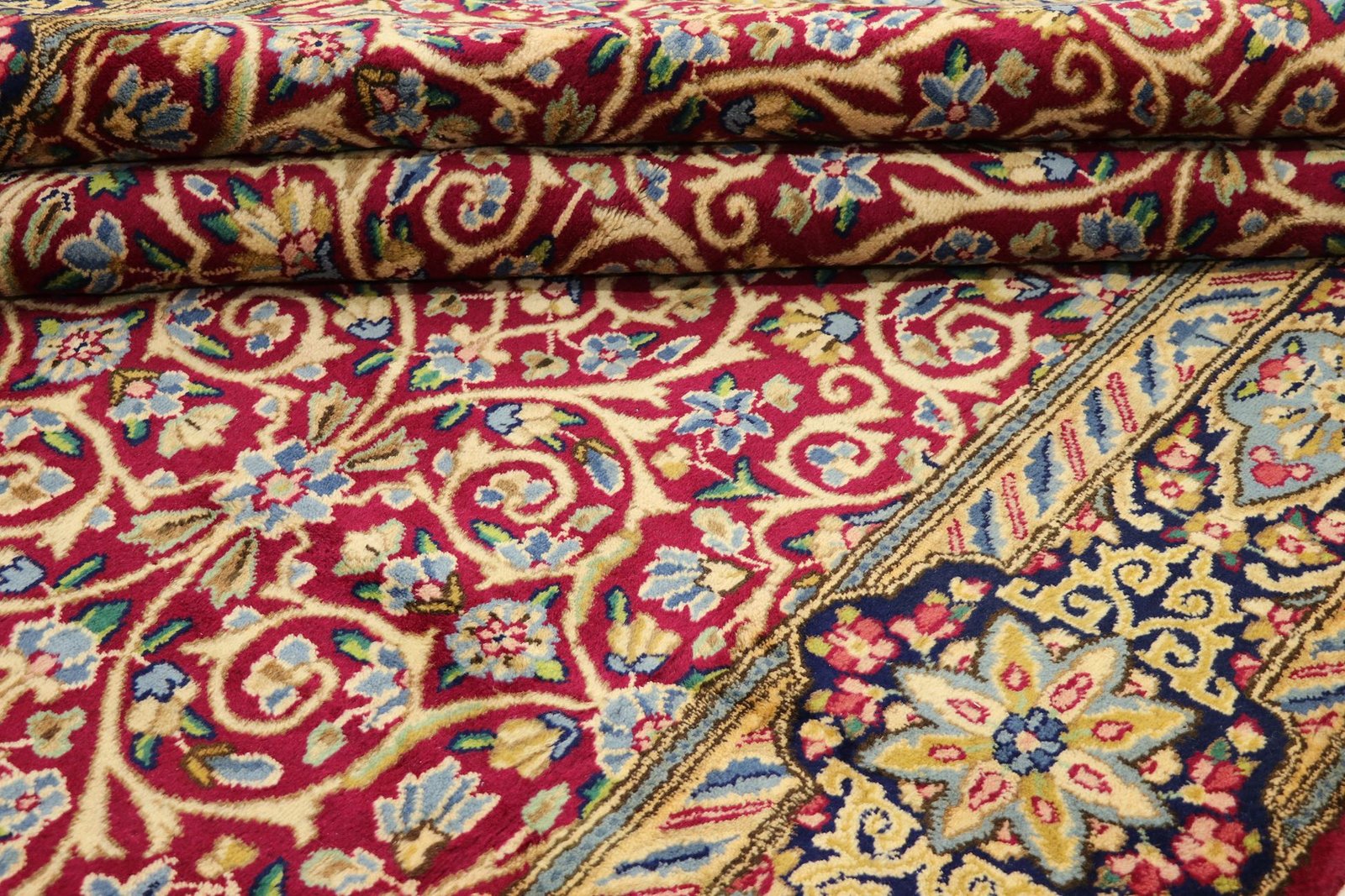 Kerman is one of the most beautiful hand-knotted Oriental carpets. The city in southern Persia, surrounded by picturesque mountains, is one of the oldest in the region. Kerman is famous for its royal palaces and mirror patterns, also known as “king patterns”, which impress with their magnificent colours. Classic Oriental carpets are unique hand-knotted works of art whose typical patterns have been passed down through generations. Their manufacturing methods, materials and motifs are strongly influenced by their region of origin, especially in the case of high-quality Persian carpets, which are named after their city of origin. These carpets are characterised by excellent materials, high knot density, harmonious colours and traditional designs, whether made from precious silk or soft sheep’s wool. An Oriental carpet adds a special touch to any room and is an expression of traditional craftsmanship.