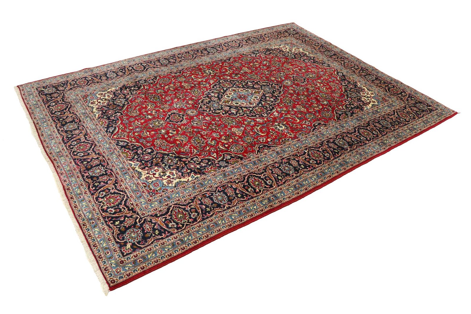Keshan carpets are among the oldest and highest quality Oriental carpets. They are known for their deep red colour and central medallion pattern. Oriental carpets in general are unique works of craftsmanship, whose patterns and techniques have been passed down through generations. They are hand-knotted in various regions of the Orient, with places of origin such as Persia being particularly famous. These carpets are known for their excellent materials such as silk or sheep’s wool, high knot density, harmonious colouring and traditional designs. Every Oriental carpet, be it a precious silk carpet or a cosy wool carpet, contributes to the uniqueness and beauty of a room by conveying cultural and aesthetic depth.