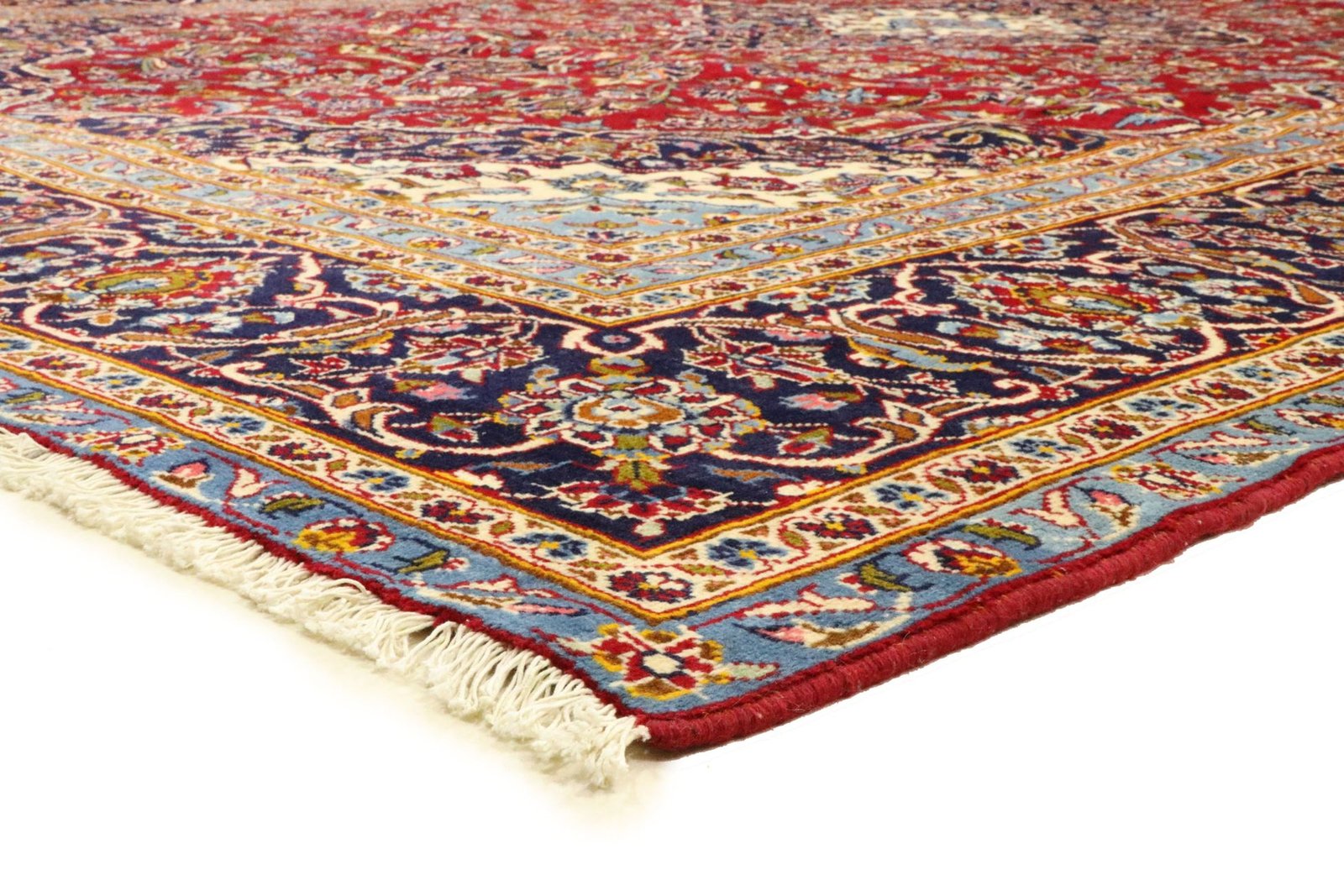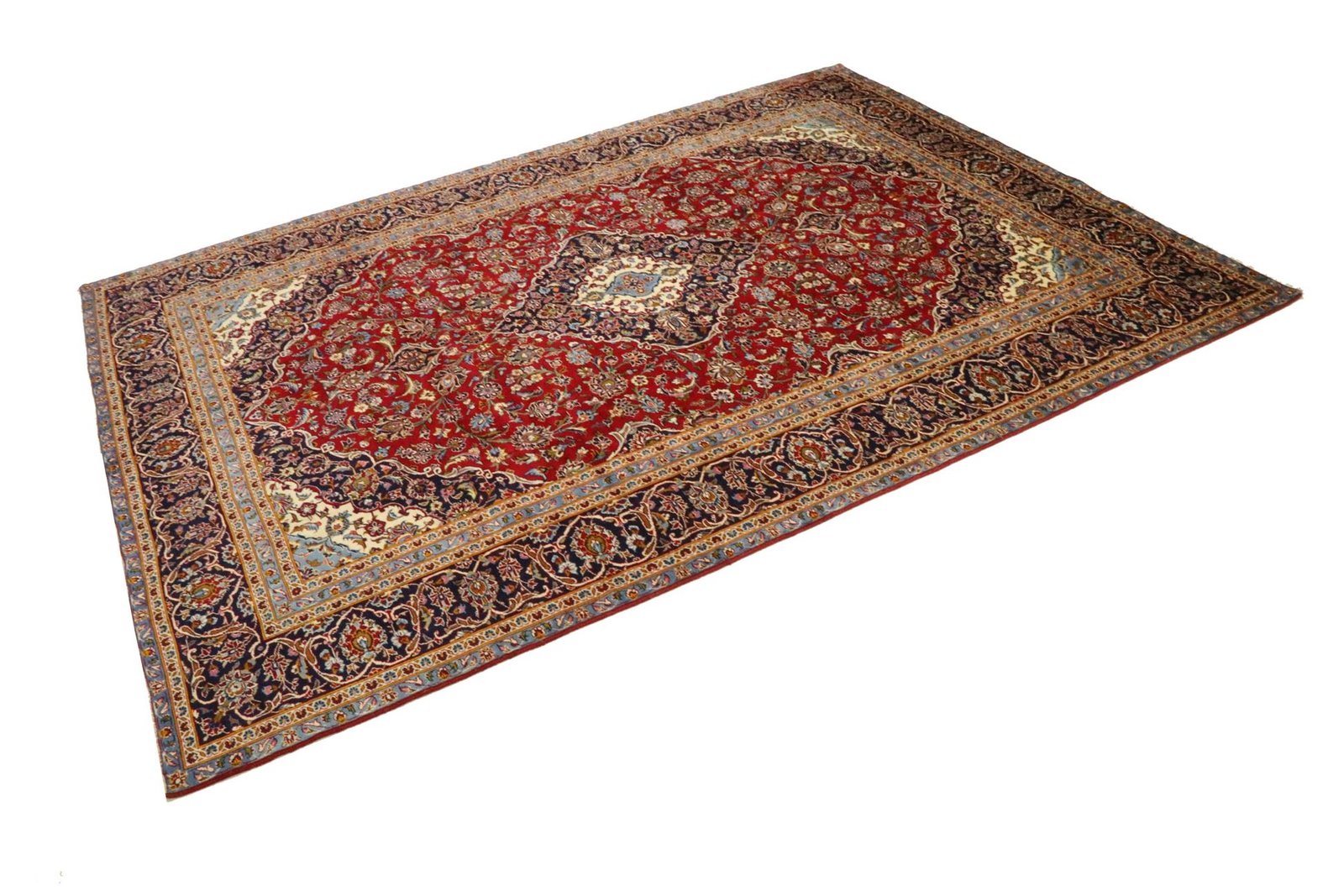 Keshan is one of the oldest and highest quality varieties of Oriental carpets, known for its rich red colour and central medallion pattern. These unique, hand-knotted carpets feature typical patterns that have been passed down through generations. The manufacturing method, choice of materials and motifs are strongly influenced by the region of origin, especially in the case of the highly prized Persian carpets, named after their cities of origin. These carpets are characterised by first-class material quality, high knot density, unique colour harmonies and a traditional design. Whether made of precious silk or soft sheep’s wool, an oriental carpet adds a unique touch to any living space and exudes craftsmanship and cultural significance.