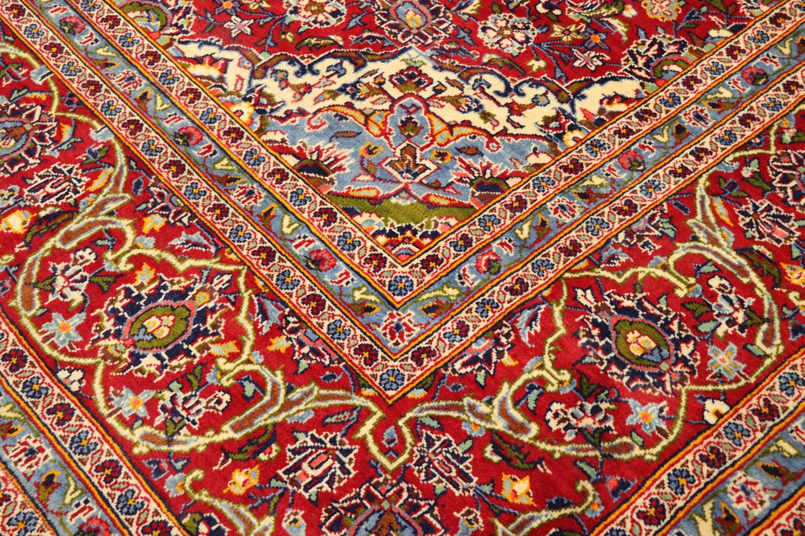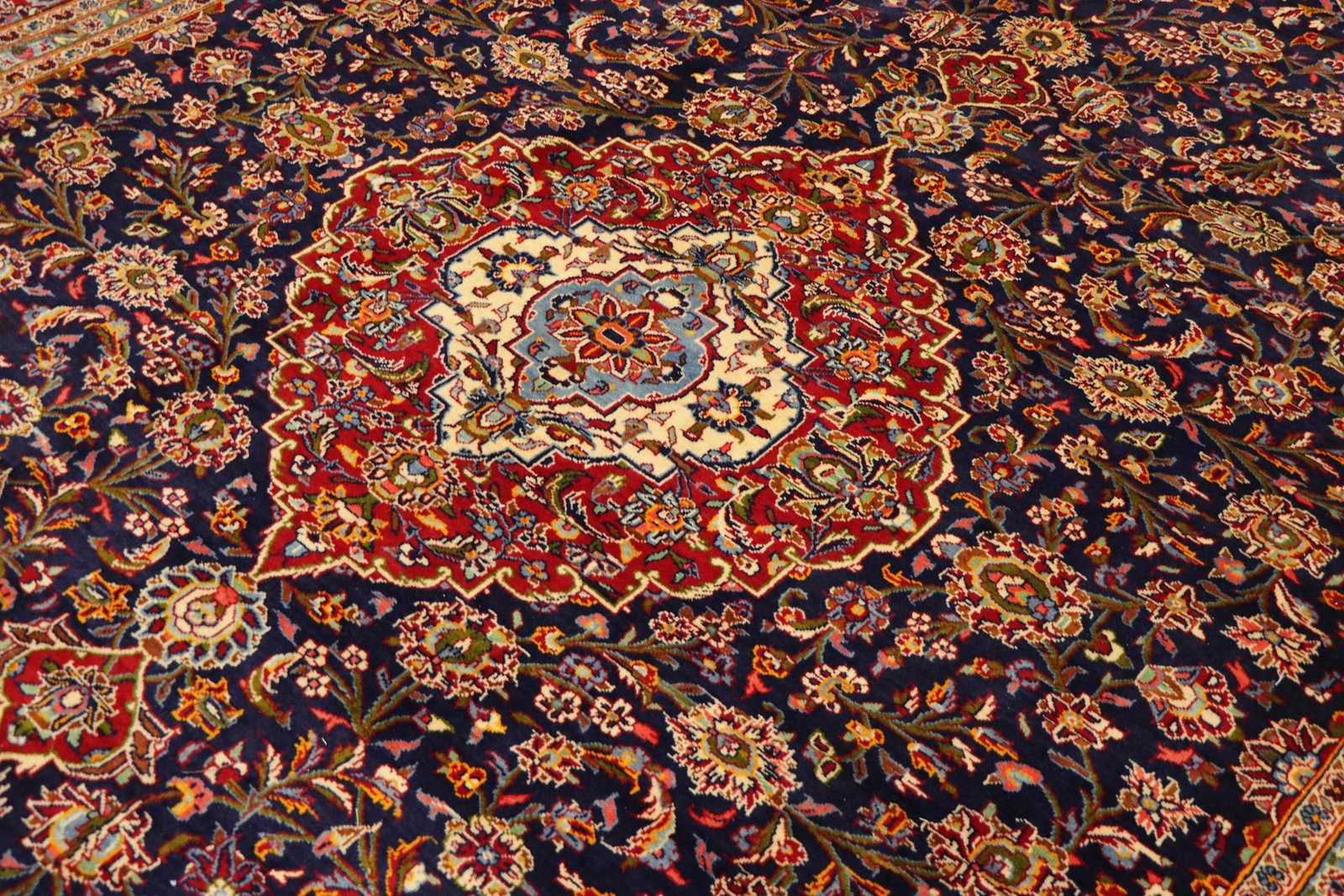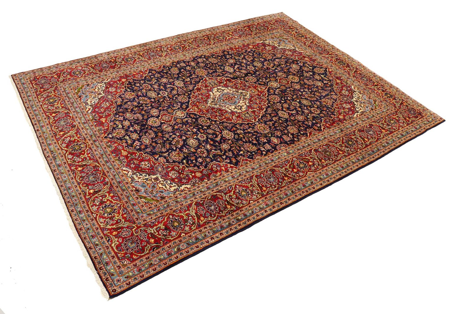 Keshan represents one of the oldest and highest quality varieties of oriental carpets, characterised by a rich red colour and a central medallion pattern. These hand-knotted, one-of-a-kind pieces feature typical patterns that have been passed down from generation to generation. The region of origin has a significant influence on the manufacturing method, choice of materials and motifs of these carpets, especially in the case of the renowned Persian carpets, named after their cities of origin. They impress with their high-quality materials, high knot density, unique colour harmonies and traditional design. Whether made of precious silk or soft sheep’s wool, an Oriental carpet gives every room a unique atmosphere. These carpets are not only decorative works of art, but also symbols of craftsmanship and cultural depth that enrich the room and create a connection to the rich tradition of the Orient.