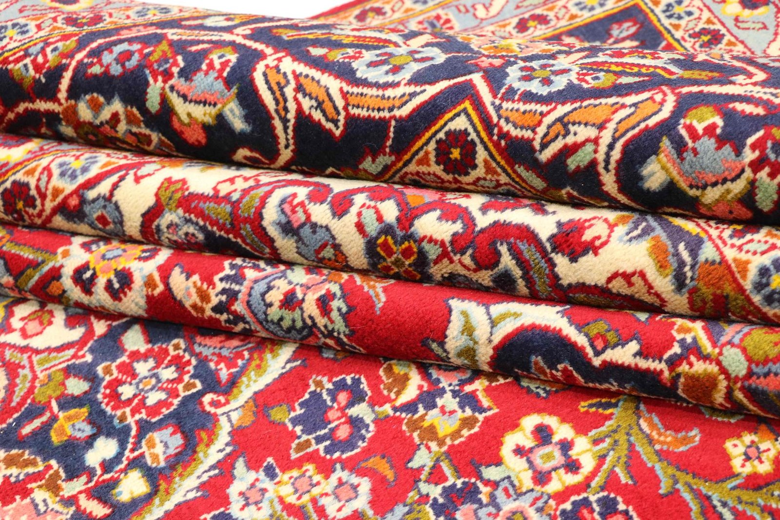 Keshan is one of the oldest and highest quality varieties of Oriental carpets, known for its distinctive red medallion pattern. These unique, hand-knotted carpets are characterised by their typical patterns, which have been passed down from generation to generation. The region of origin has a strong influence on the manufacturing methods, materials used and motifs of these carpets, especially in the case of the famous Persian carpets, named after their cities of origin. These works of art are characterised by high-quality materials, high knot density, unique colour harmonies and traditional designs. Whether made of precious silk or soft sheep’s wool, an Oriental carpet lends every room a special atmosphere and cultural depth. They are not only decorative elements, but also an expression of craftsmanship and tradition that enrich the living space and create a connection to the rich cultural history of the Orient.