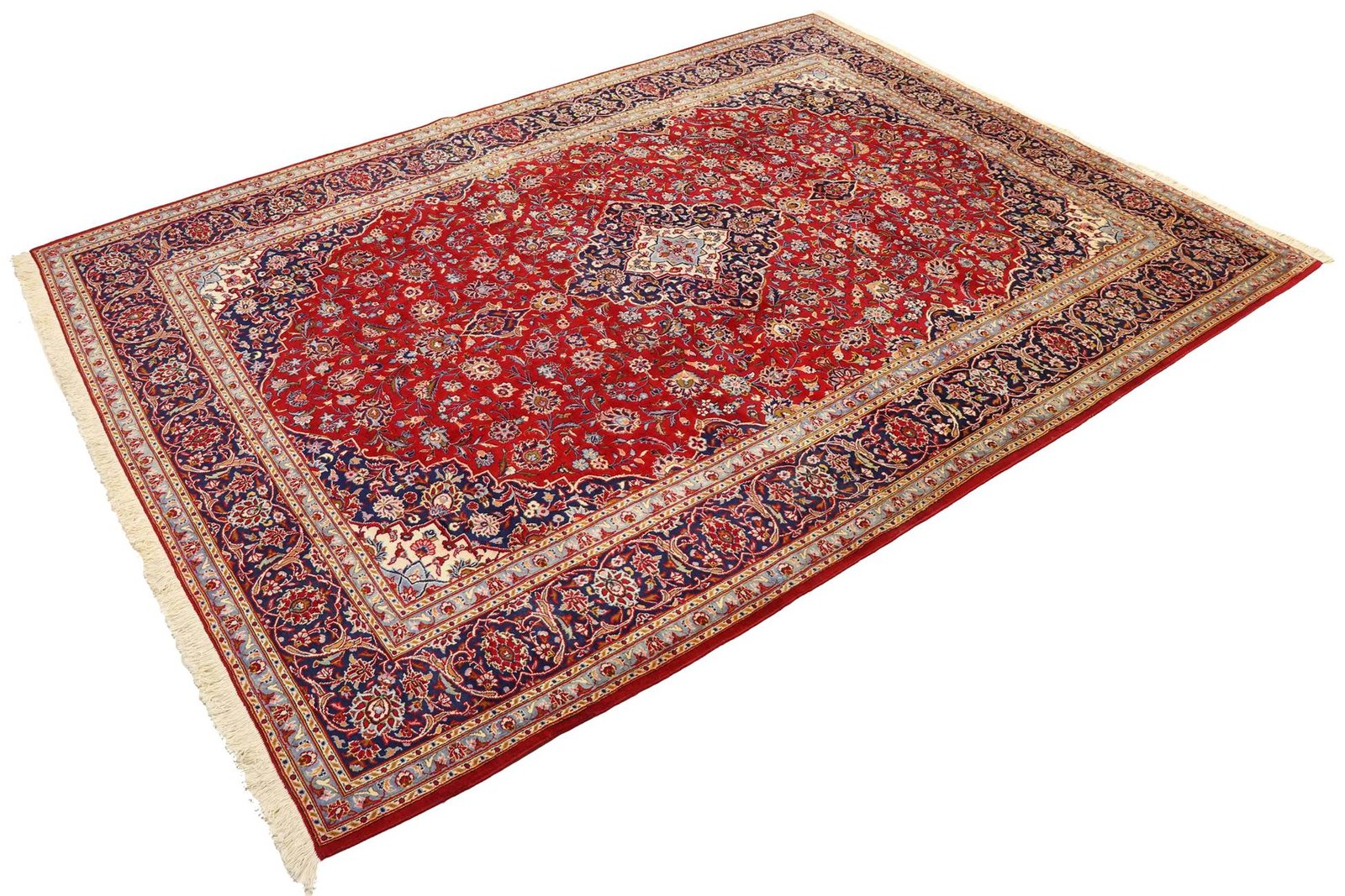 Keshan is one of the oldest and highest quality varieties of Oriental carpets, known for its rich red colour and distinctive medallion pattern. These classic carpets are unique, hand-knotted pieces whose typical patterns are passed down from generation to generation. The manufacturing method, materials used and motifs are strongly influenced by the region of origin. The high-quality Persian carpets, named after their cities of origin, are particularly renowned for their first-class materials, high knot density, unique colour harmonies and traditional designs. Whether made of precious silk or soft sheep’s wool, an Oriental carpet adds a special touch and cultural depth to any room. These carpets are not only decorative elements, but also an expression of craftsmanship and cultural tradition that connect to the rich history of the Orient.