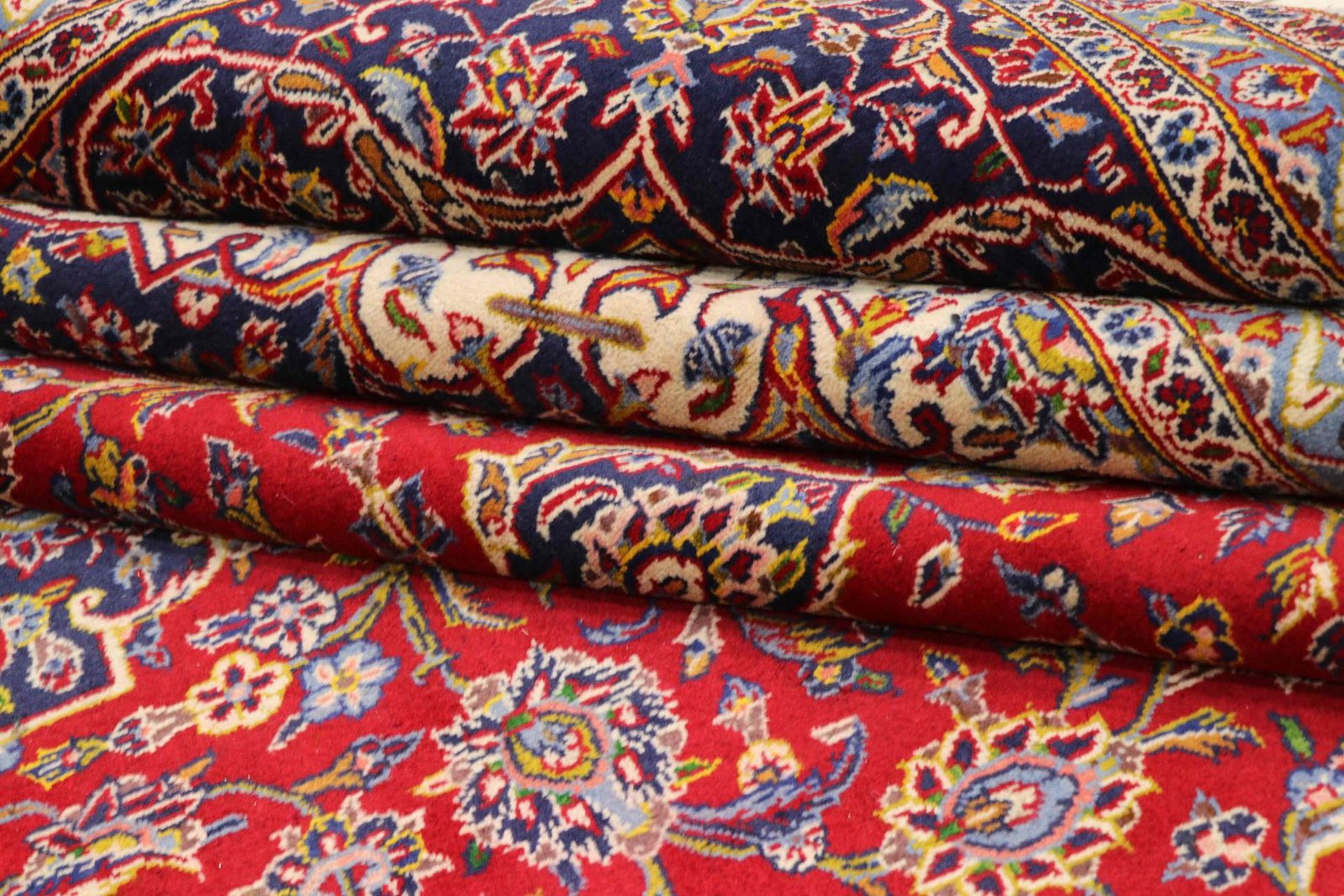 Keshan is one of the oldest and highest quality varieties of Oriental carpets, known for its strong red colour and distinctive medallion pattern. These unique, hand-knotted carpets are cultural treasures whose typical patterns are passed down from generation to generation. The manufacturing methods, materials used and motifs are strongly influenced by the region of origin, especially in the case of the highly prized Persian carpets, which are named after their cities of origin. These works of art are characterised by first-class material quality, high knot density, unique colour harmonies and a traditional design. Whether made of precious silk or soft sheep’s wool, an Oriental carpet lends every living space a special atmosphere and symbolises craftsmanship and cultural values. These carpets are not only decorative elements, but also cultural heirlooms that enrich a room and create a connection to the rich history of the Orient.