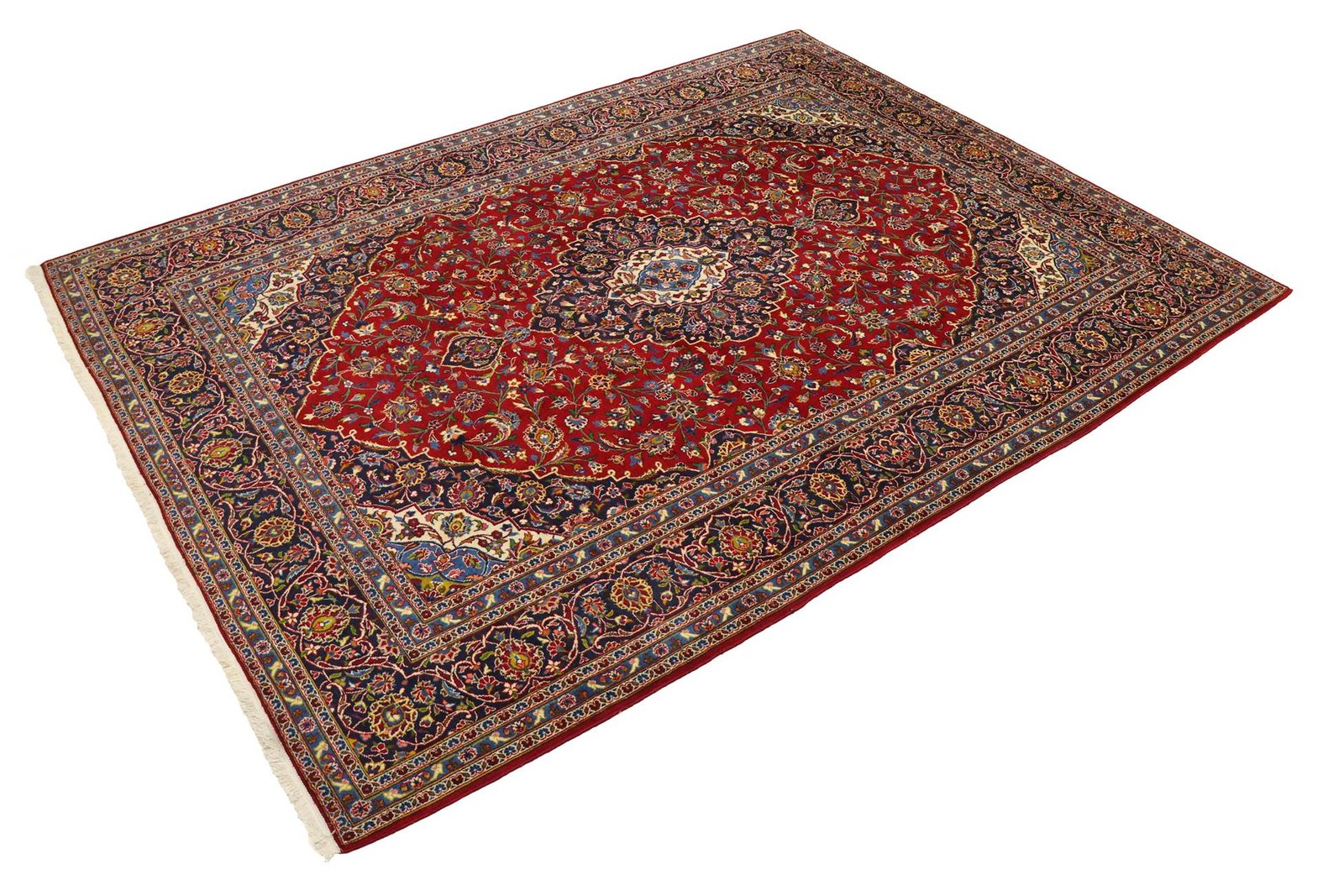 Keshan carpets represent one of the oldest and highest quality traditions in Oriental carpet art. They are known for their rich red tones and characteristic medallion pattern, which is often placed in the centre. These classic Oriental carpets are unique, hand-knotted pieces that are passed down through generations. Their manufacturing process, the materials used and the motifs are strongly influenced by their region of origin. The high-quality Persian carpets, named after their cities of origin, are particularly well known for this. These works of art captivate with their first-class materials, high knot density, unique colour harmonies and traditional design. Whether made from precious silk or soft sheep’s wool, an Oriental carpet gives every room a unique and culturally enriching atmosphere. They are not only decorative, but also a symbol of craftsmanship and cultural tradition, reflecting the history and artistry of their makers.