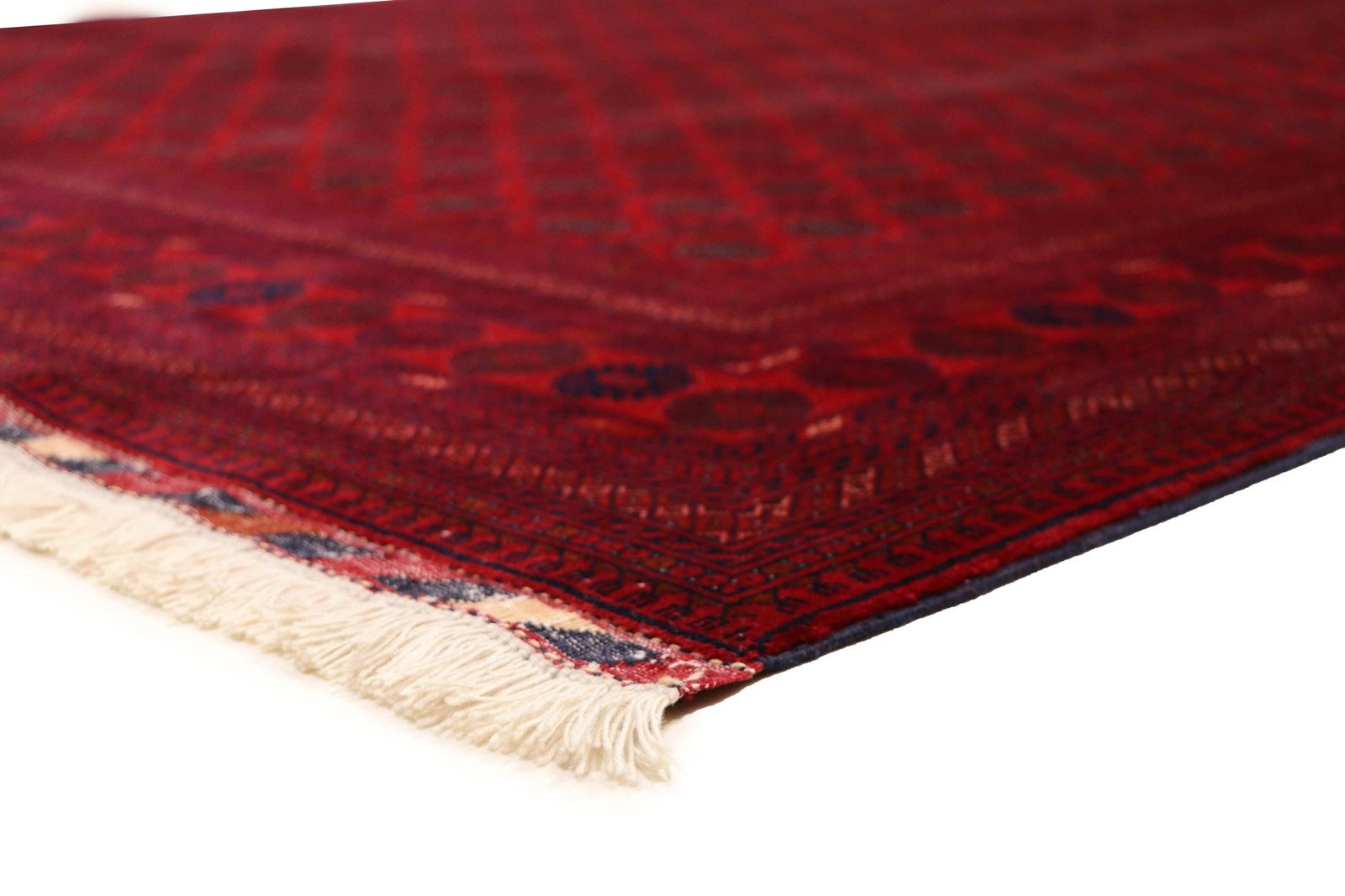 Khal Mohammadi carpets are known for their dark red colours and characteristic patterns, and are usually made from pure wool. As classic oriental carpets, they are hand-knotted unique pieces whose patterns and techniques have been passed down through generations. The region of origin, particularly in Afghanistan, influences the manufacturing method, choice of materials and motifs of these works of art. These carpets are characterised by high-quality materials, high knot density, harmonious colour compositions and traditional designs. Whether made from precious silk or soft sheep’s wool, a Khal Mohammadi carpet gives every room a unique atmosphere and is a testament to cultural connection and craftsmanship.