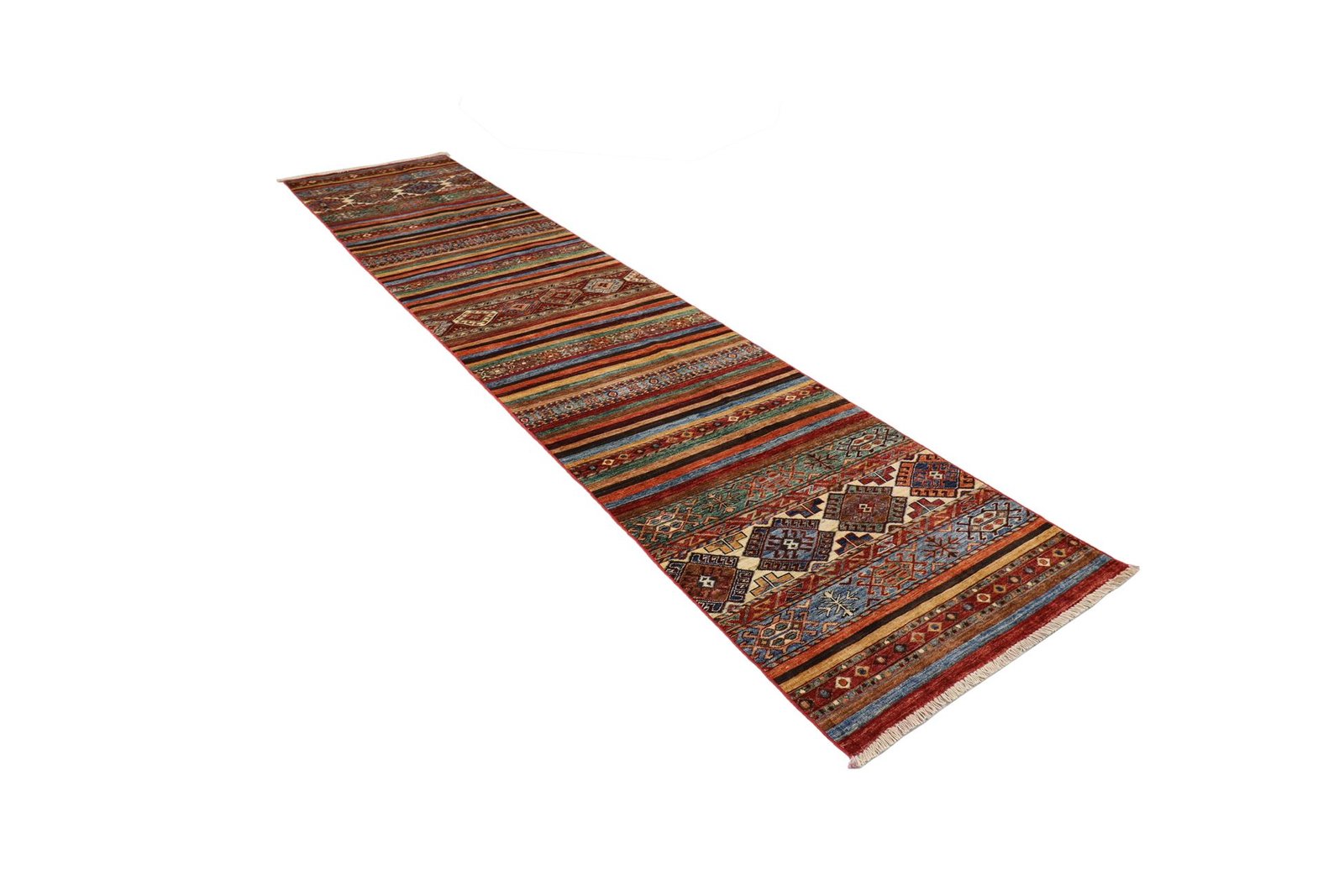 The Khorjin carpet, which originates mainly from Iran, Afghanistan and Pakistan, is made from high-quality, hand-spun sheep’s wool. The wool, known for its durability, dirt repellency and thermal insulation, is traditionally spun by hand before the carpet is knotted. These properties make wool a preferred material for carpets, which has been proven for centuries. The Khorjin carpet combines precision craftsmanship with the advantages of a functional and aesthetically appealing material. It represents both the traditional craftsmanship and cultural significance of the region and offers a special beauty thanks to its natural softness and characteristic sheen.