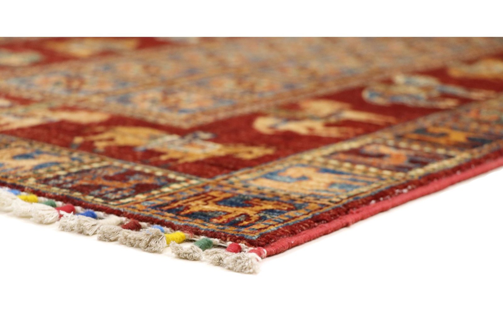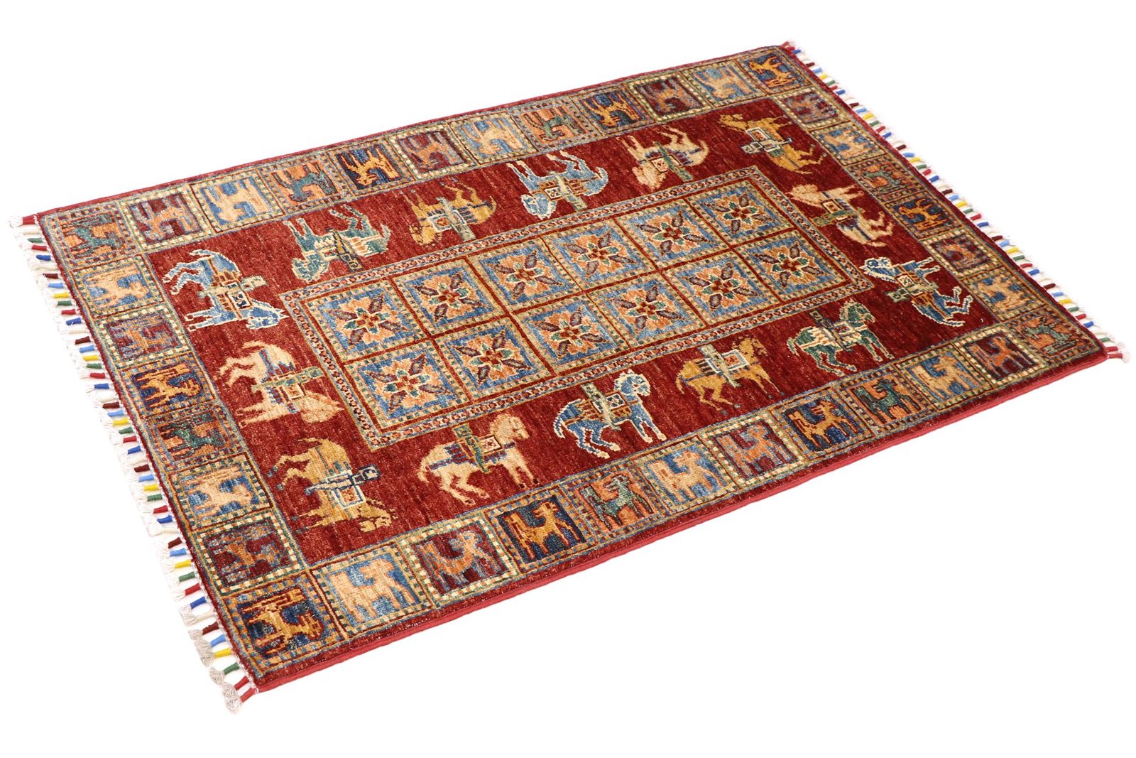 Khorjin carpets are made from the highest quality hand-spun sheep’s wool, particularly in Iran, Afghanistan and Pakistan. The wool is traditionally spun by hand before the knotting work begins. Wool is known for its natural durability, dirt repellency and thermal insulation, properties that have proven themselves over centuries. In addition, wool is exceptionally soft and gives the carpet a natural sheen. The Khorjin carpet thus embodies craftsmanship and the advantages of a long-valued material that is both functional and aesthetically appealing.
