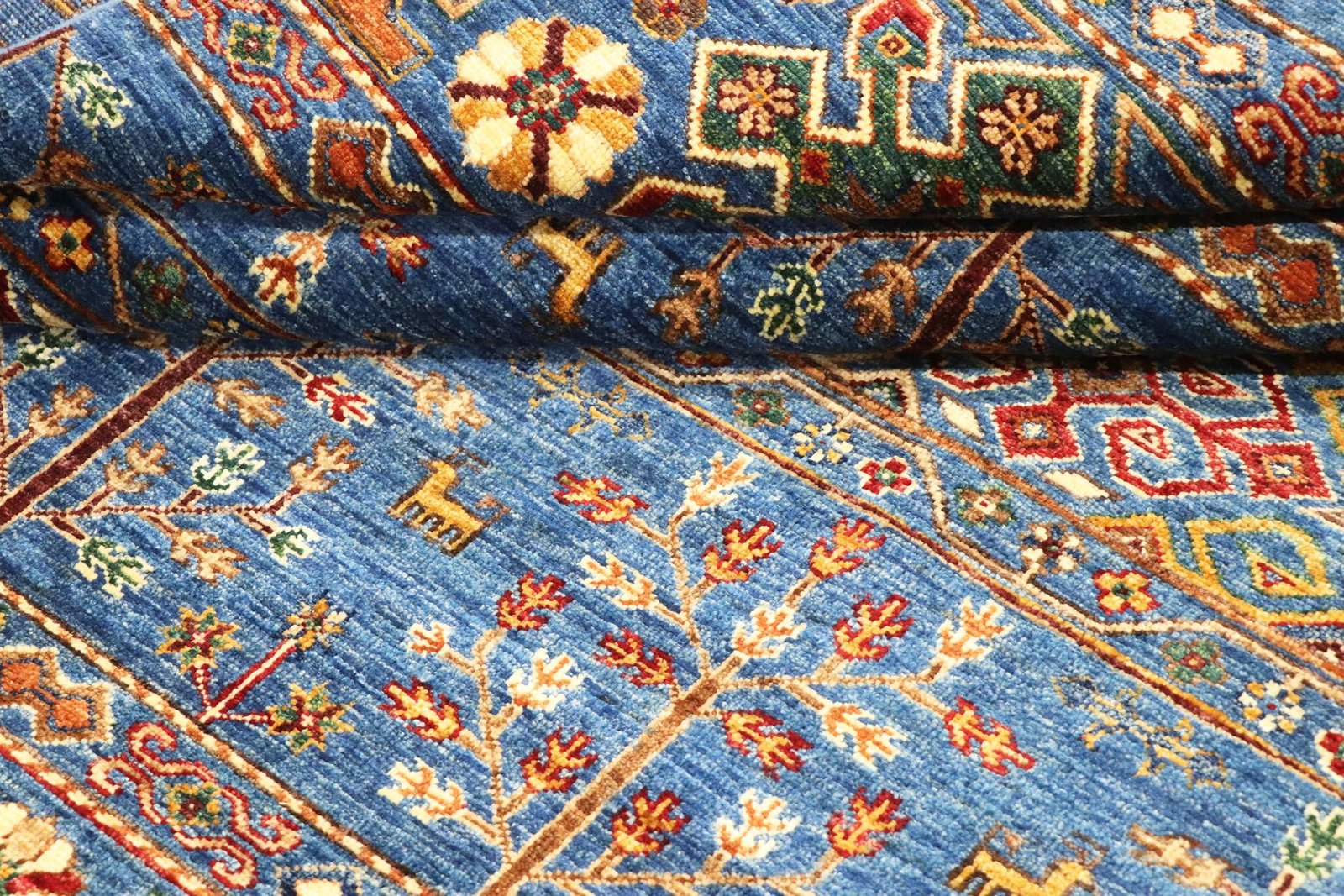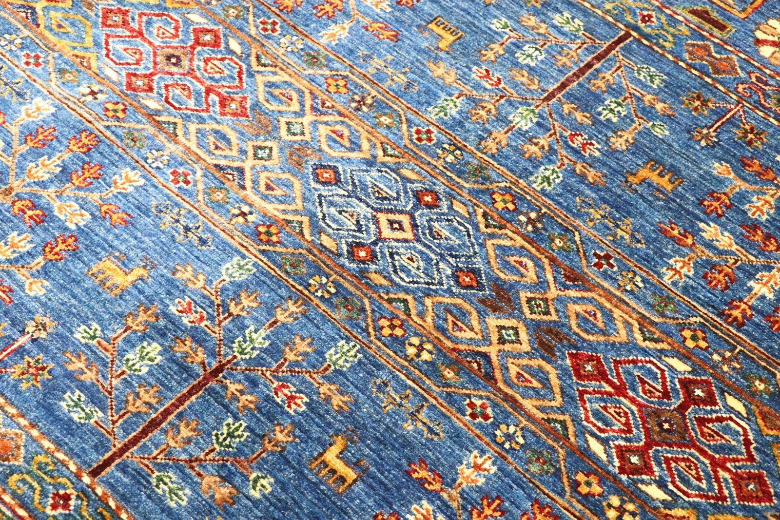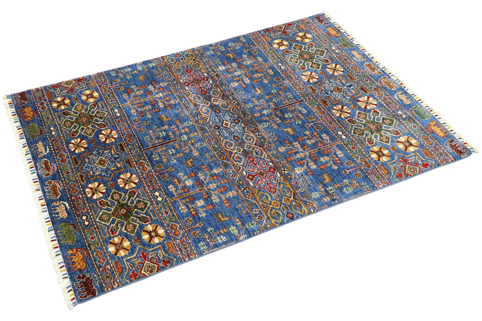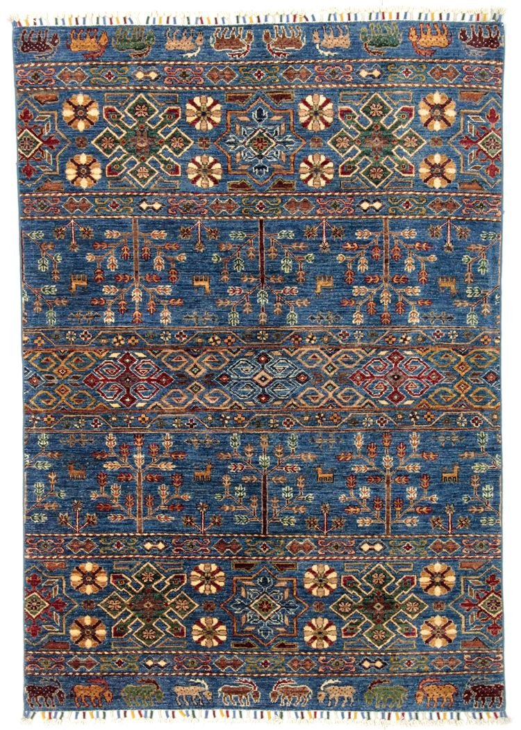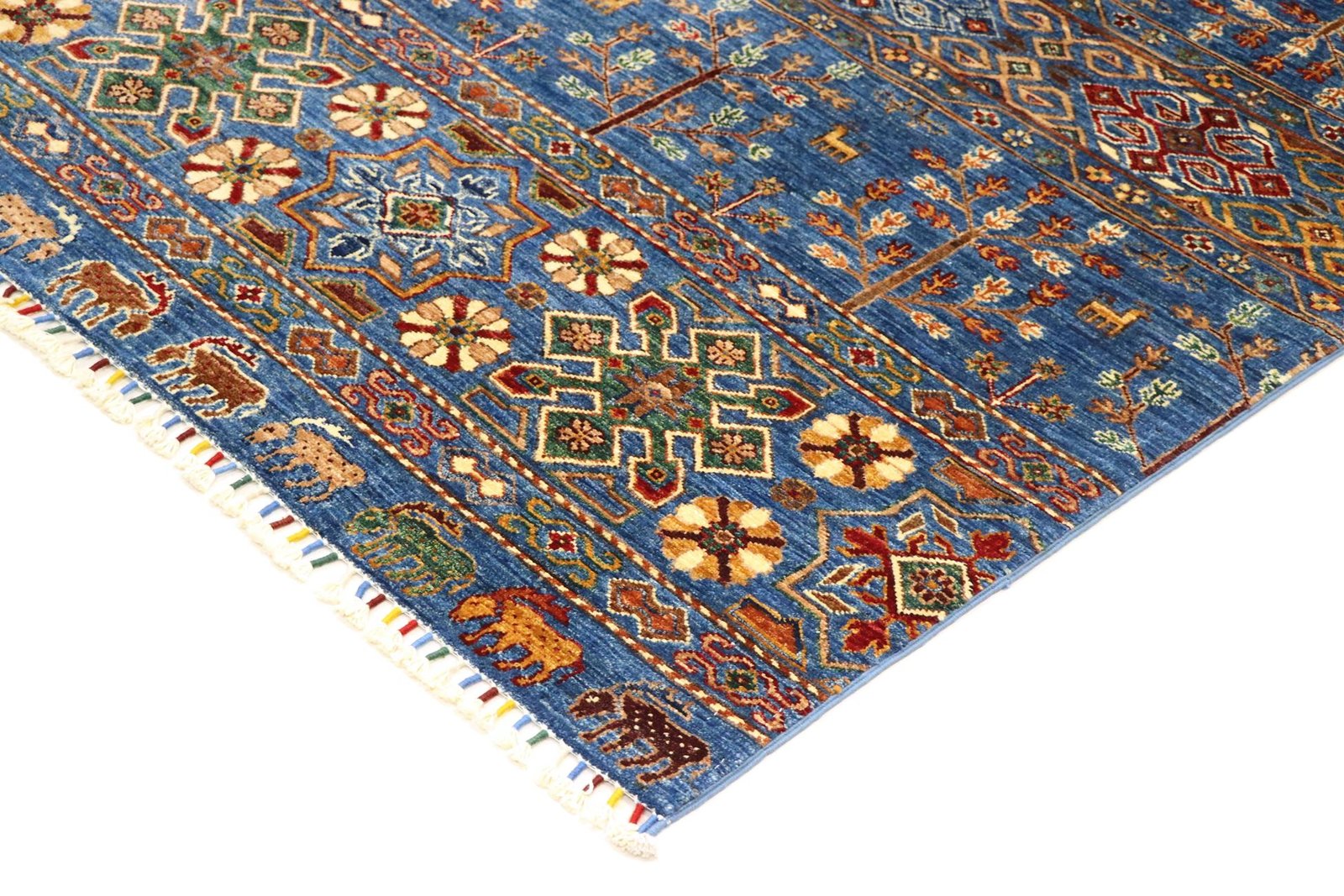Khorjin carpets are made from the highest quality hand-spun sheep’s wool, particularly in Iran, Afghanistan and Pakistan. Before the carpet is actually knotted, the wool is traditionally spun by hand. Wool is known for its natural and extremely durable properties, such as dirt repellency and thermal insulation. It is also exceptionally soft and gives the carpet a natural sheen. This centuries-old tradition of hand spinning and knotting combines craftsmanship with the advantages of a material that meets the highest functional and aesthetic standards. The Khorjin carpet thus stands for quality, tradition and the timeless beauty of natural materials.