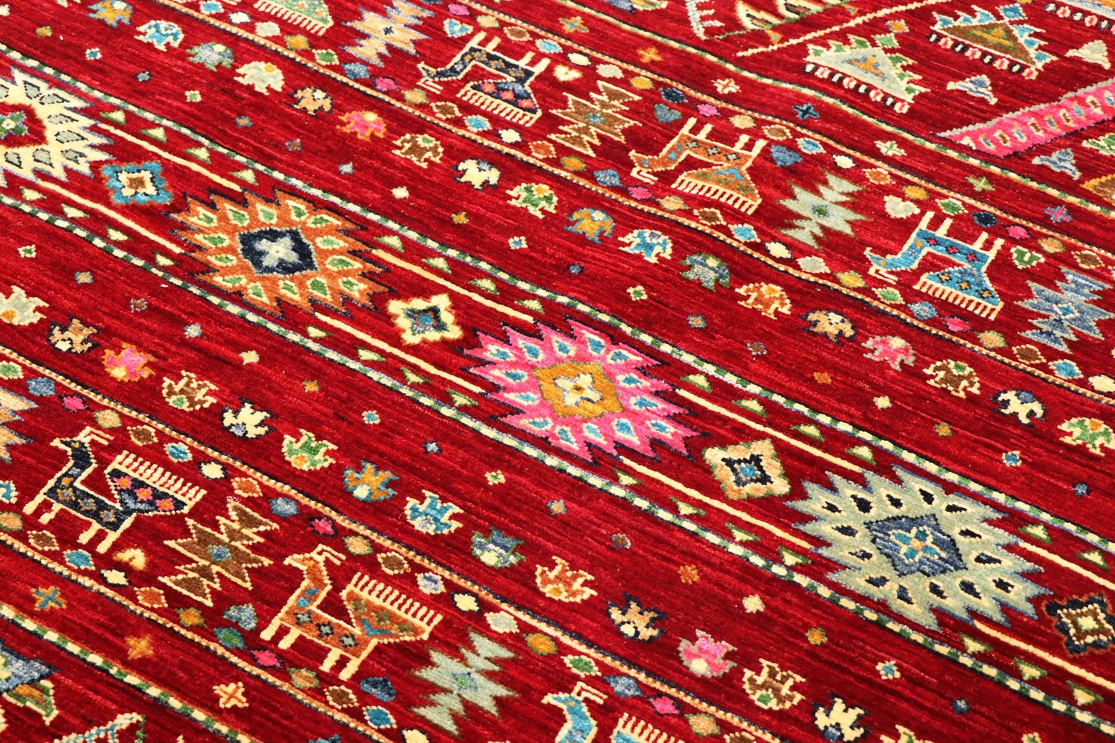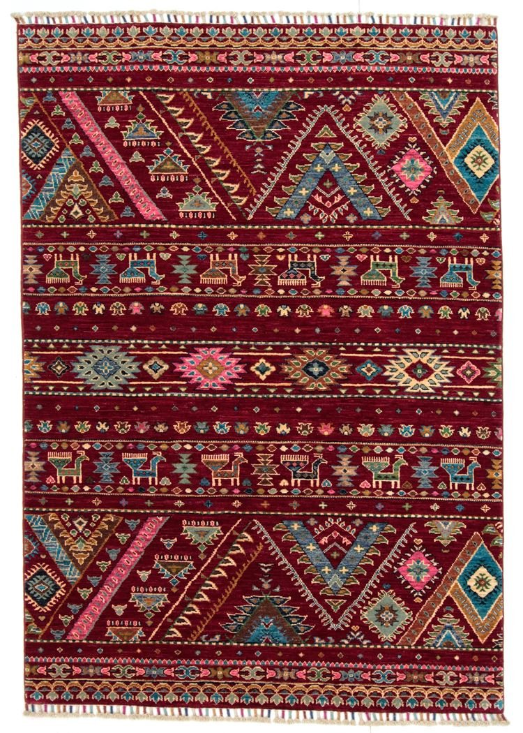 Khorjin carpets are made from the highest quality hand-spun sheep’s wool, particularly in Iran, Afghanistan and Pakistan. The wool is spun by hand before the carpet is knotted, ensuring its exceptional quality and durability. Wool is known for its natural properties such as dirt repellency and thermal insulation. It is also incredibly soft and gives the carpet a natural sheen. This traditional manufacturing method combines craftsmanship with the advantages of a material that has proven itself over centuries, both functionally and aesthetically. The Khorjin carpet thus stands for craftsmanship excellence and the timeless beauty of natural materials.