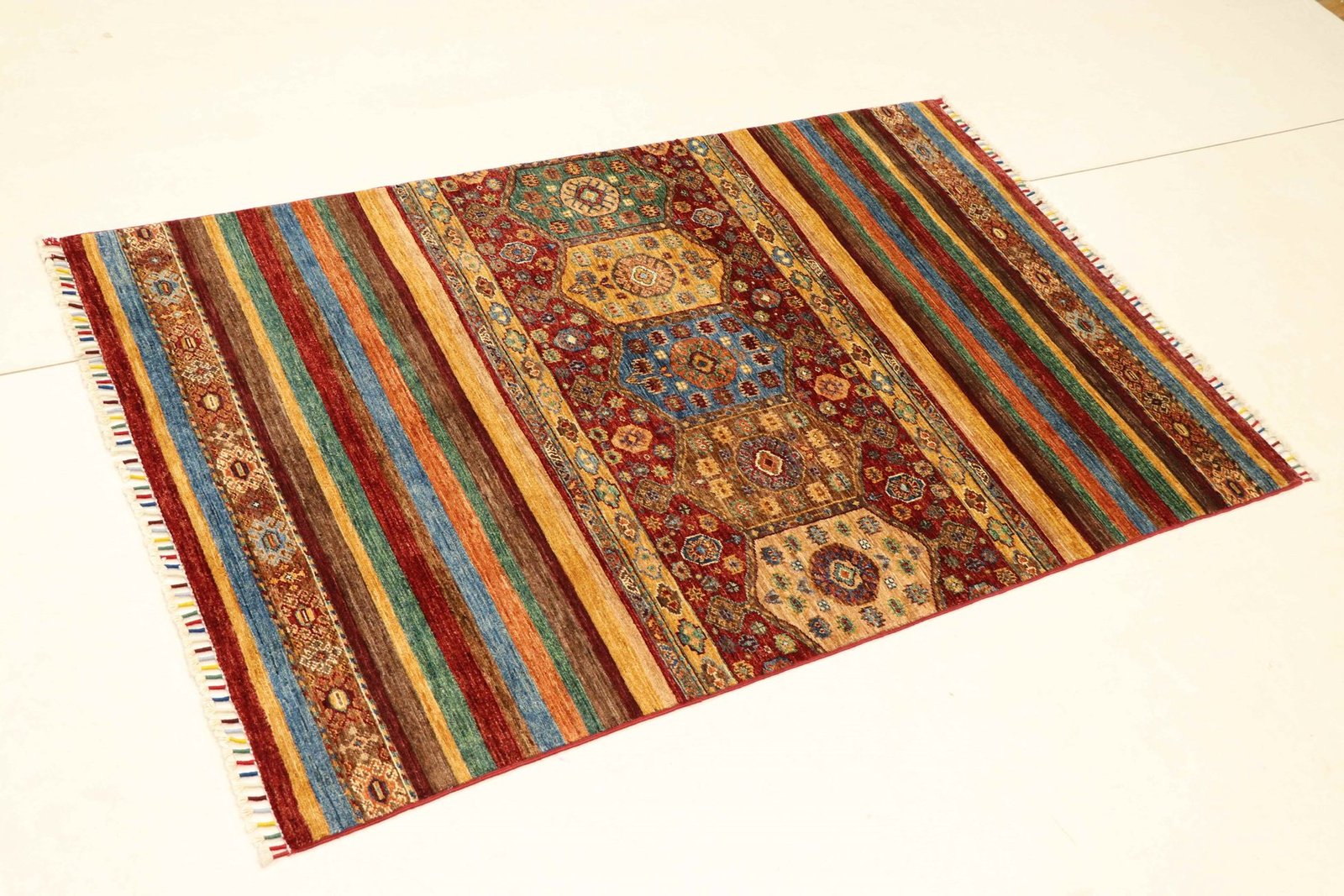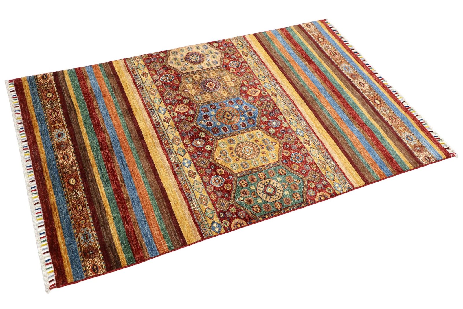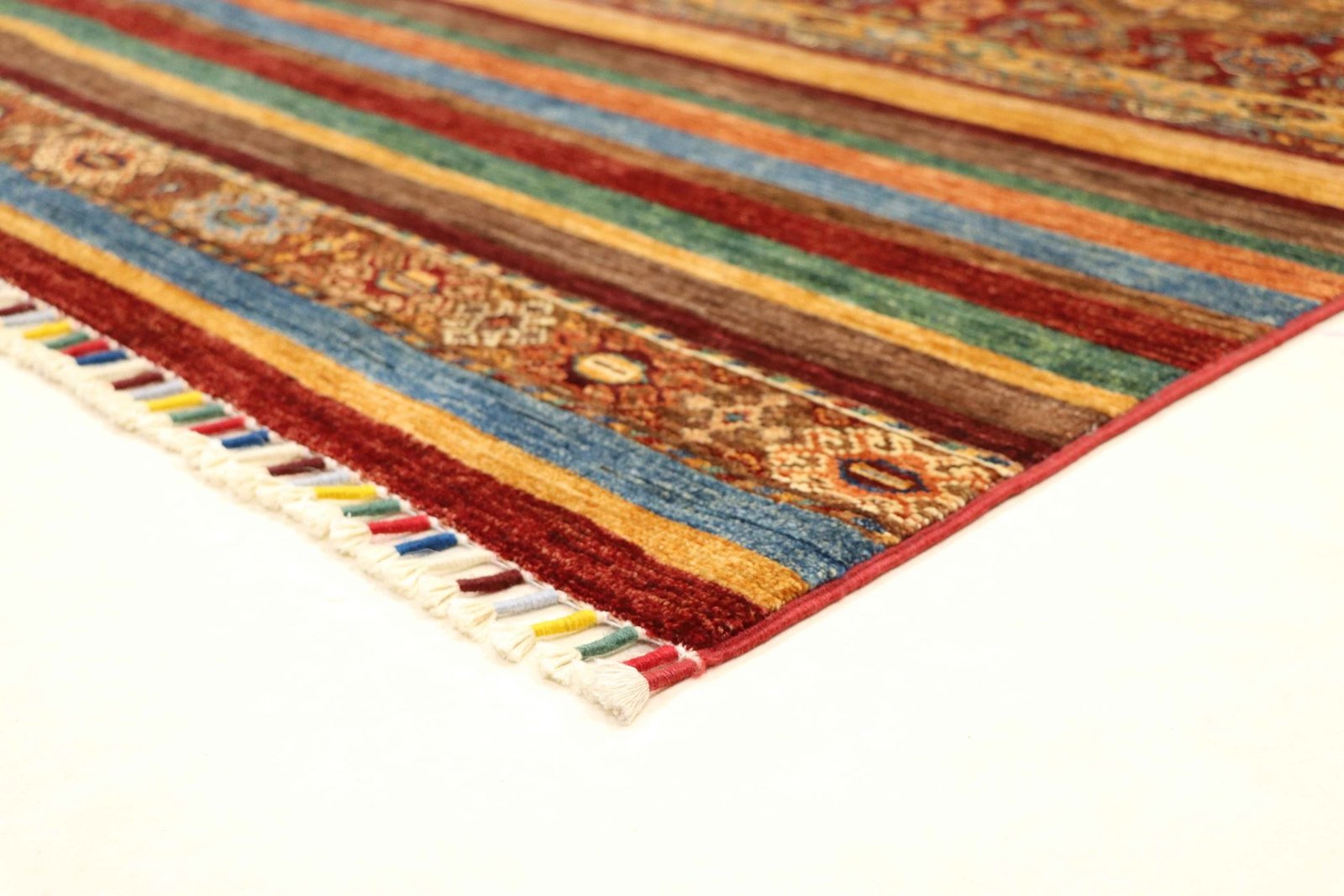 The Khorjin carpet, a masterpiece made from hand-spun sheep’s wool of the highest quality, is mainly produced in Iran, Afghanistan and Pakistan. The wool is spun by hand before the knotting begins, which gives the carpet its unique texture. Wool is known for its natural and extremely durable properties, which have proven themselves over centuries. It is dirt-repellent and heat-insulating, ideal for a wide range of climates. In addition, wool is exceptionally soft and has a natural sheen that gives the Khorjin carpet a special elegance. These carpets are not only works of art in terms of craftsmanship, but also functional works of art that bring comfort and beauty to any room.
