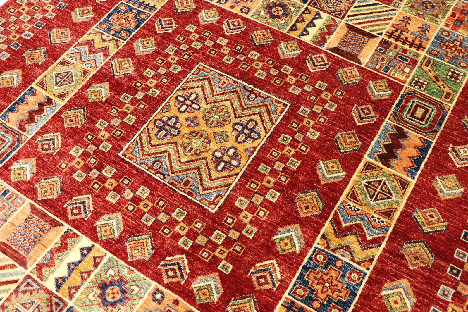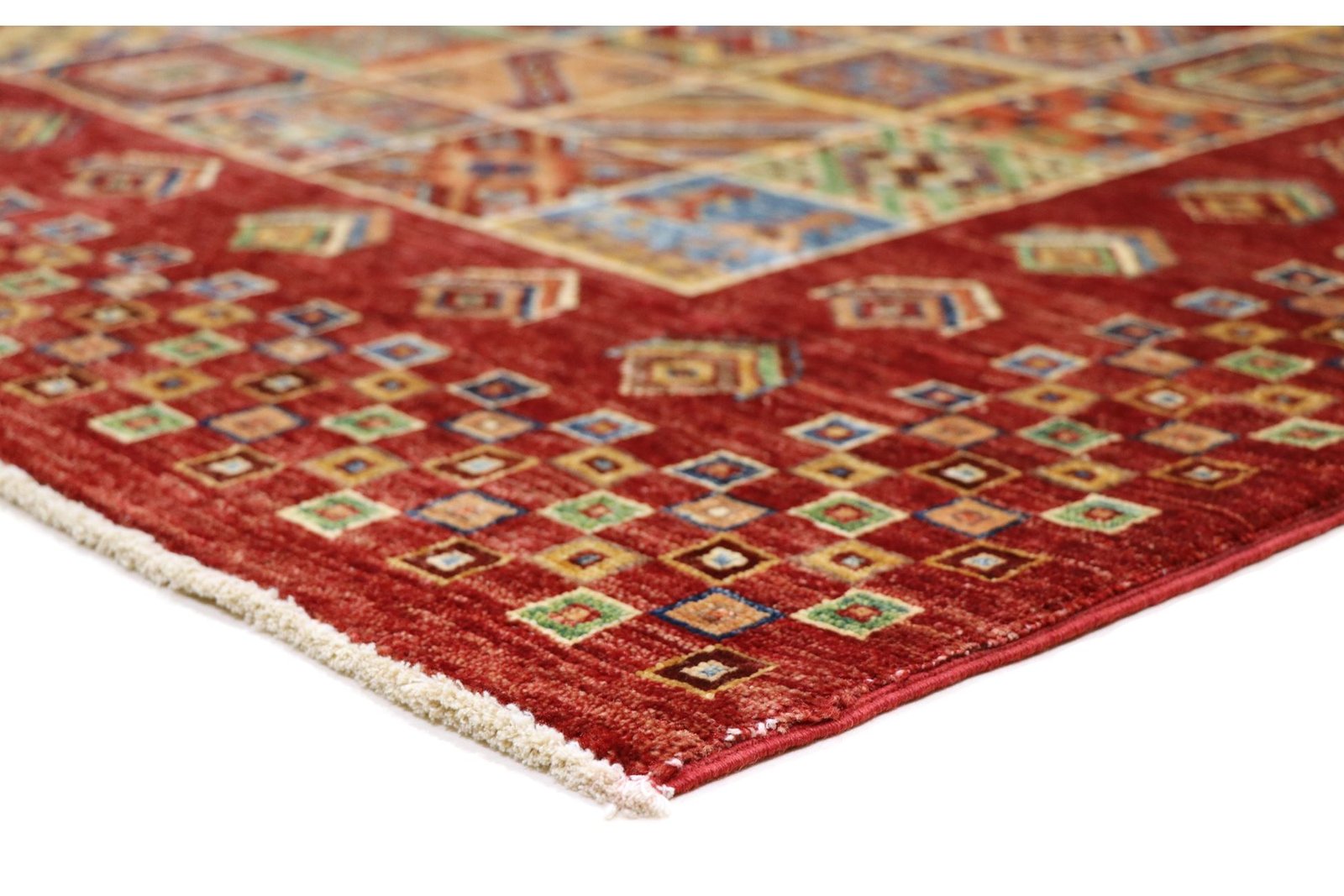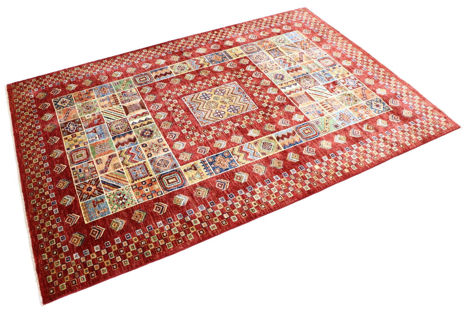The Khorjin carpet is made from hand-spun sheep’s wool of the highest quality. In Iran, Afghanistan and Pakistan in particular, the wool is still spun by hand using traditional methods before being knotted. This natural material has proven itself to be extremely durable over centuries. Sheep’s wool is characterised by its dirt-repellent and heat-insulating properties, making it an ideal raw material for carpets. It also offers unparalleled softness and a natural sheen. The combination of these properties gives the Khorjin carpet its special quality and durability, making it not only practical but also aesthetically appealing.