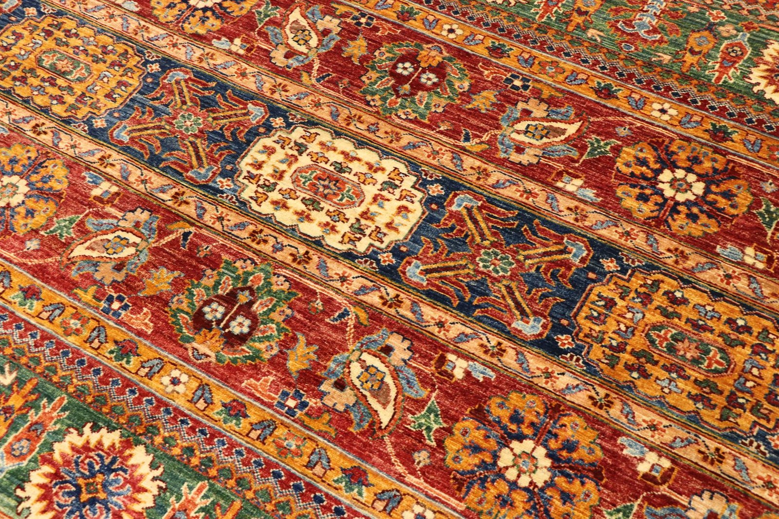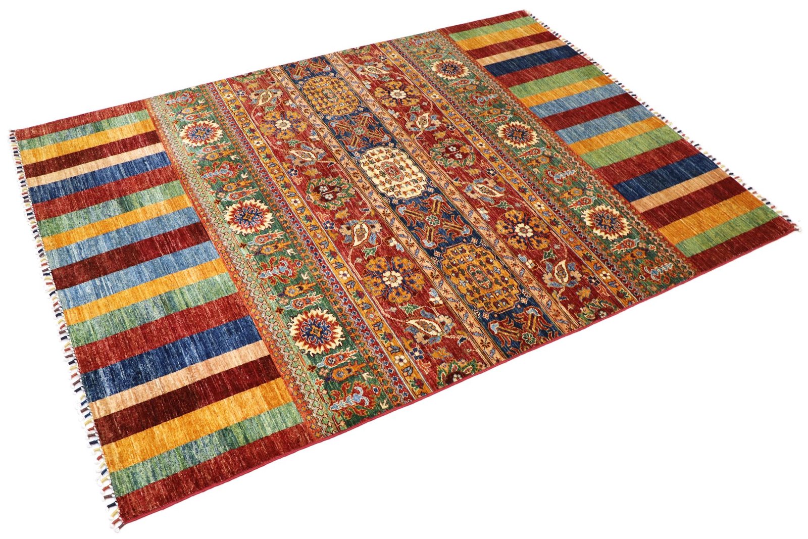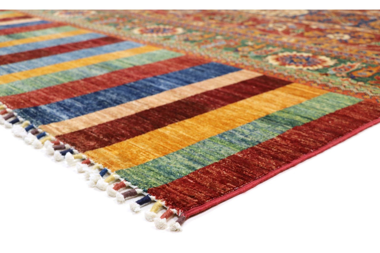 A Khorjin carpet is made from hand-spun sheep’s wool of the highest quality, mainly in Iran, Afghanistan and Pakistan. Before the carpet weaving begins, the wool is prepared in a laborious manual process. This natural material has proven to be extremely durable over centuries. Wool offers numerous advantages: it is dirt-repellent, heat-insulating and incomparably soft. It also gives the carpet a natural sheen that emphasises its beauty. Traditional craftsmanship and the excellent properties of wool make Khorjin carpets durable and aesthetically appealing works of art that create a warm and inviting atmosphere in any room.